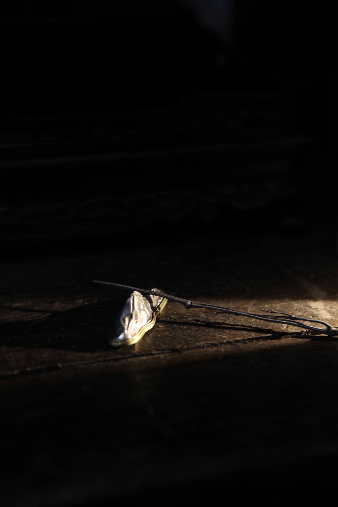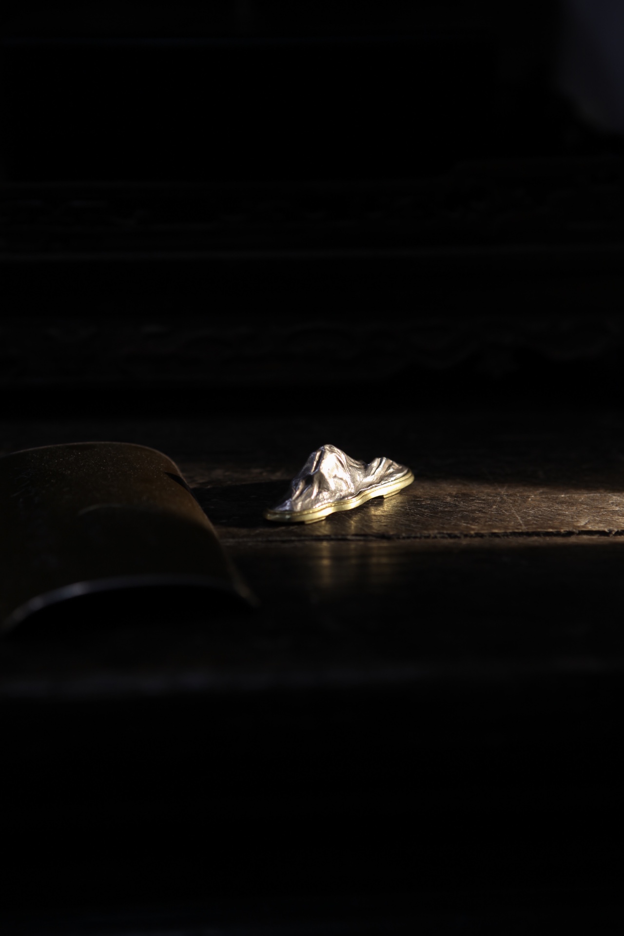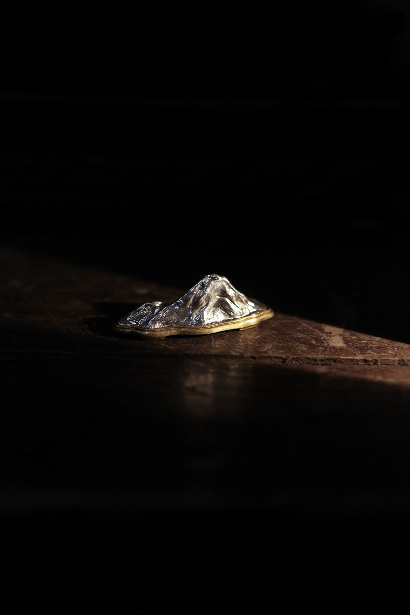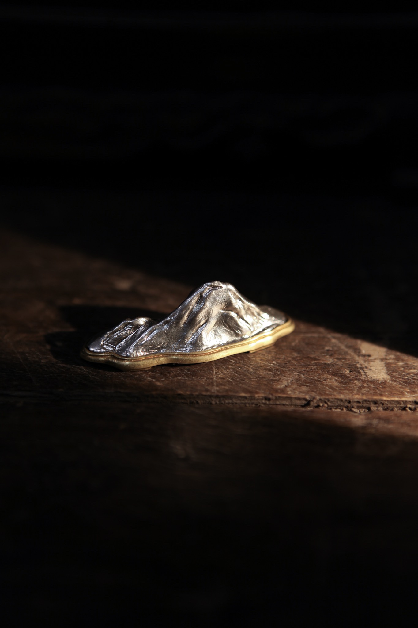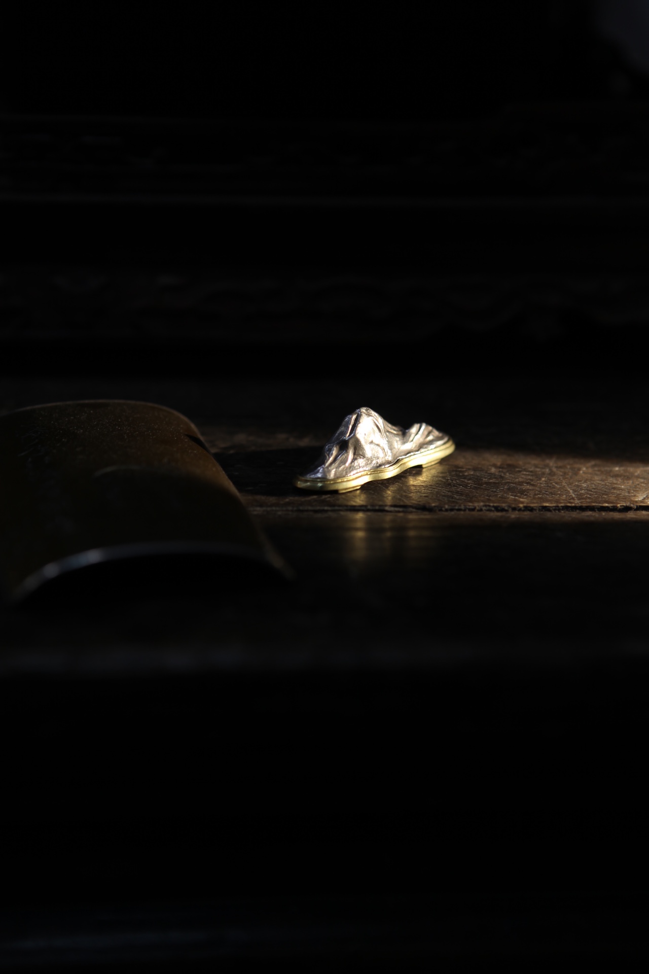 乾茂号/纯银山石 银山铜底搁架 摆件茶道配件 长约5.3cm