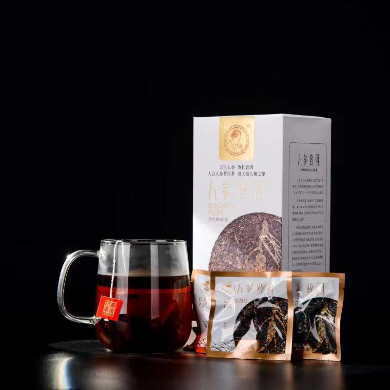 澜沧古茶茶妈妈人参普洱茶熟茶叶三角茶包花茶组合袋泡茶80g/盒