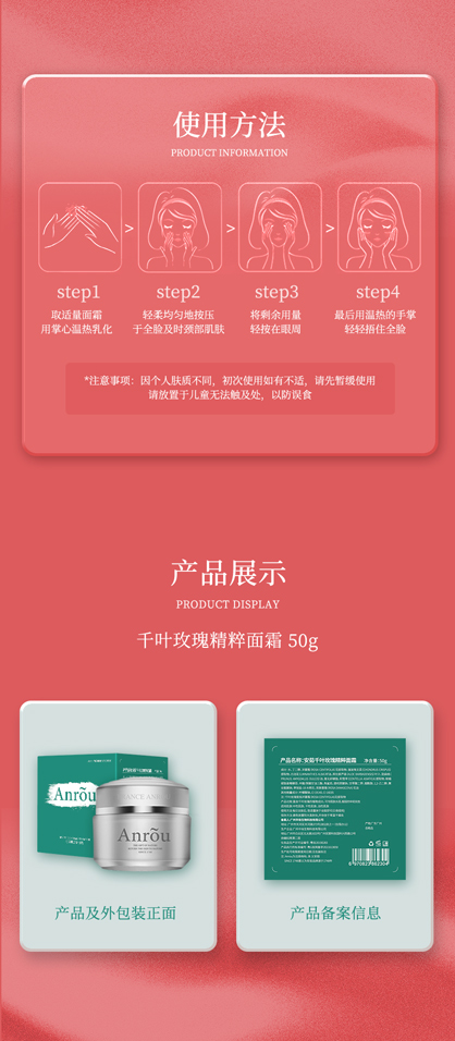 【全新升级版拍二发三】安茹千叶玫瑰精粹面霜/50g 水润细腻丝滑,抵御氧化!