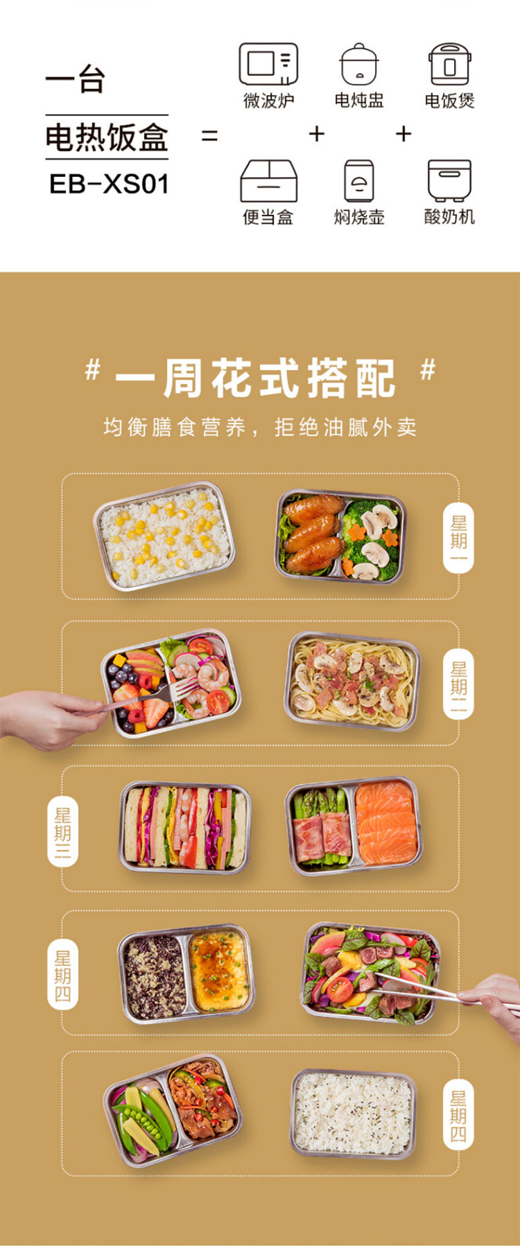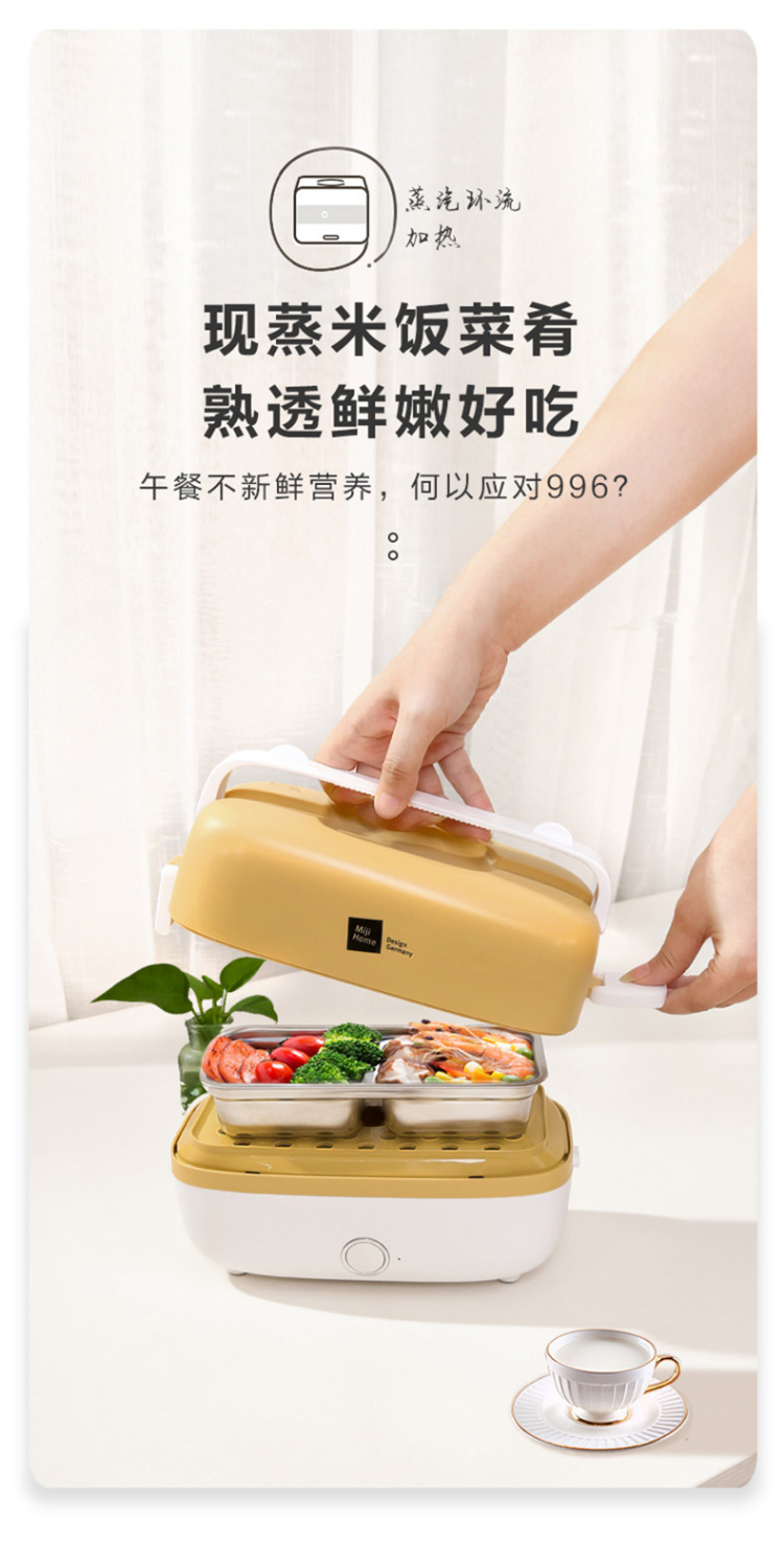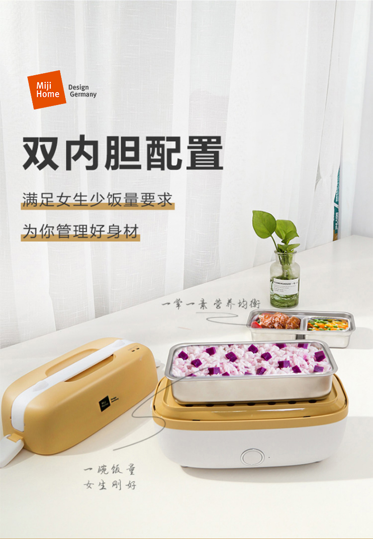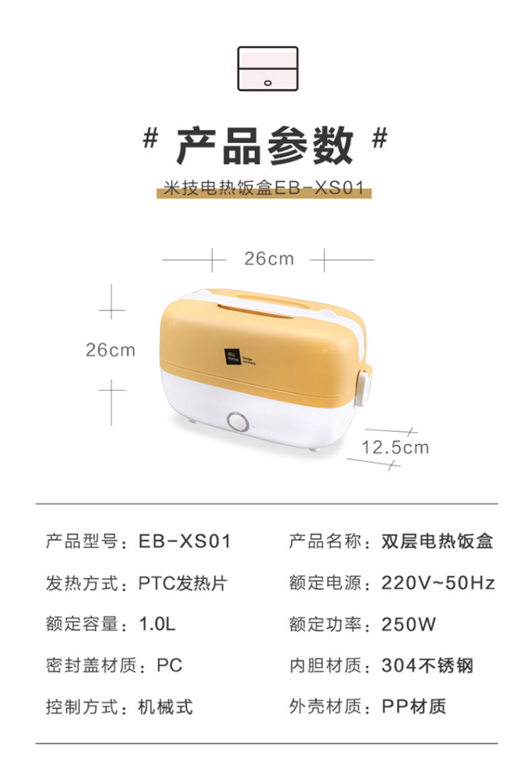 米技生活Miji Home电热饭盒上班族双层大容量不锈钢煮蒸热饭神器加热保温饭盒便携学生便当盒电热饭盒EB-XS01