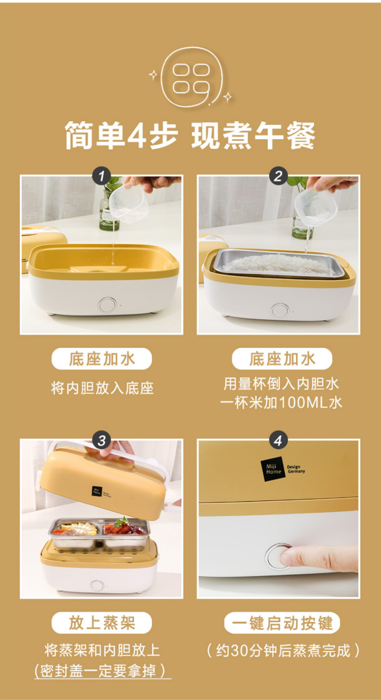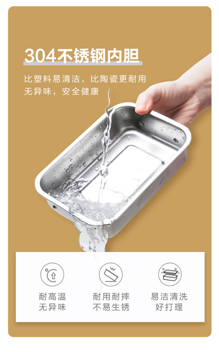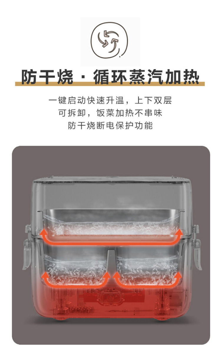米技生活Miji Home电热饭盒上班族双层大容量不锈钢煮蒸热饭神器加热保温饭盒便携学生便当盒电热饭盒EB-XS01