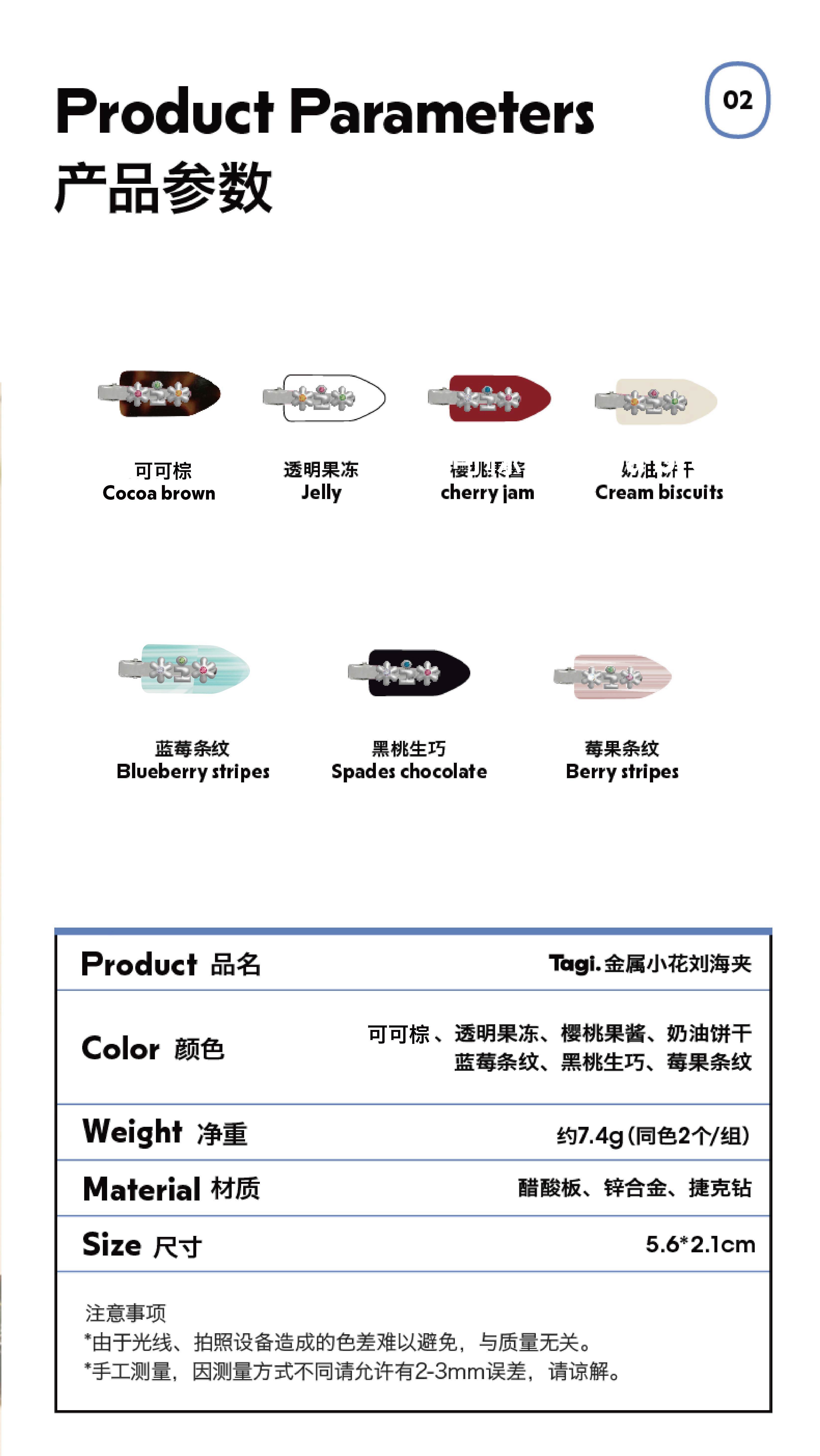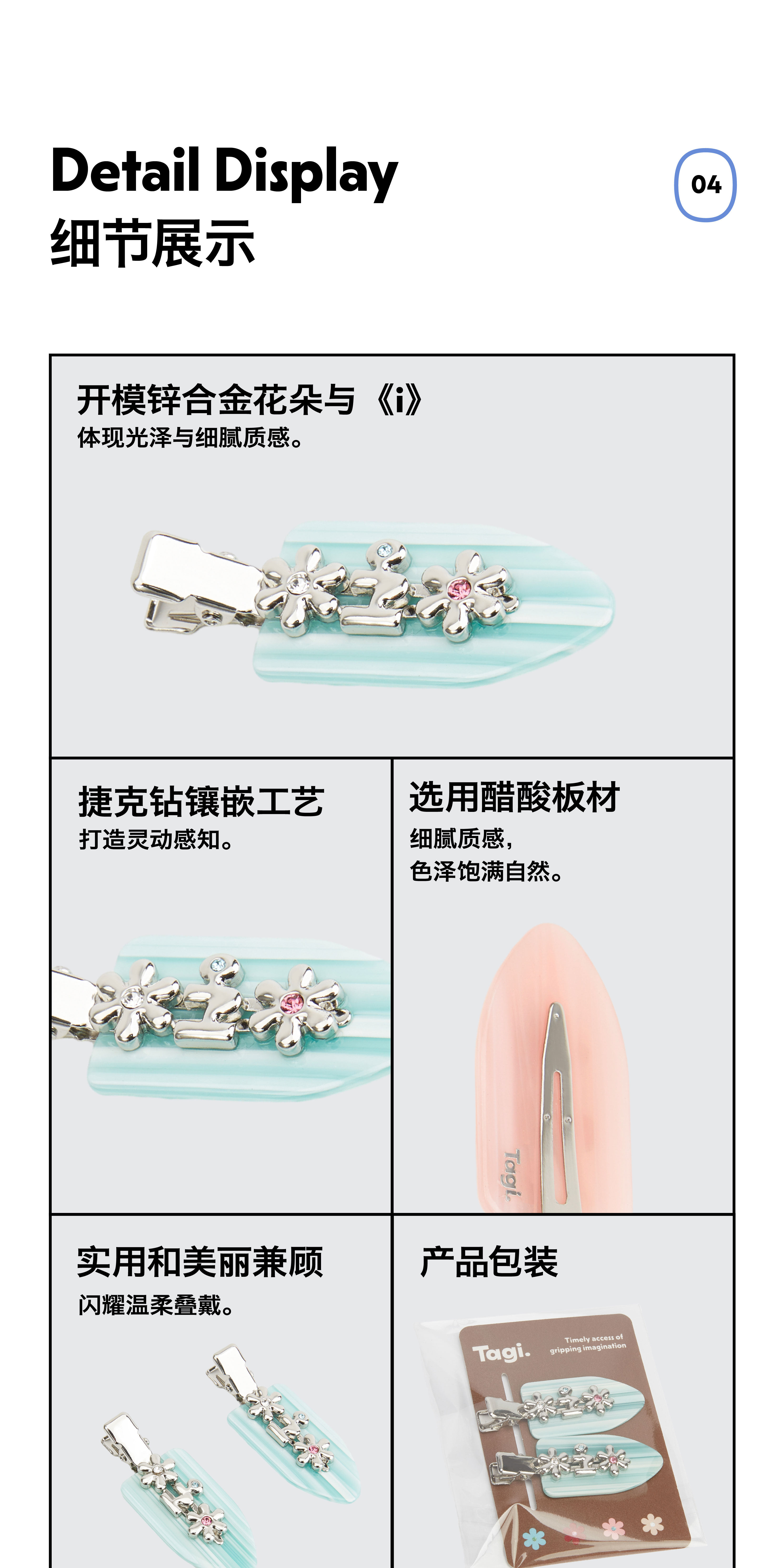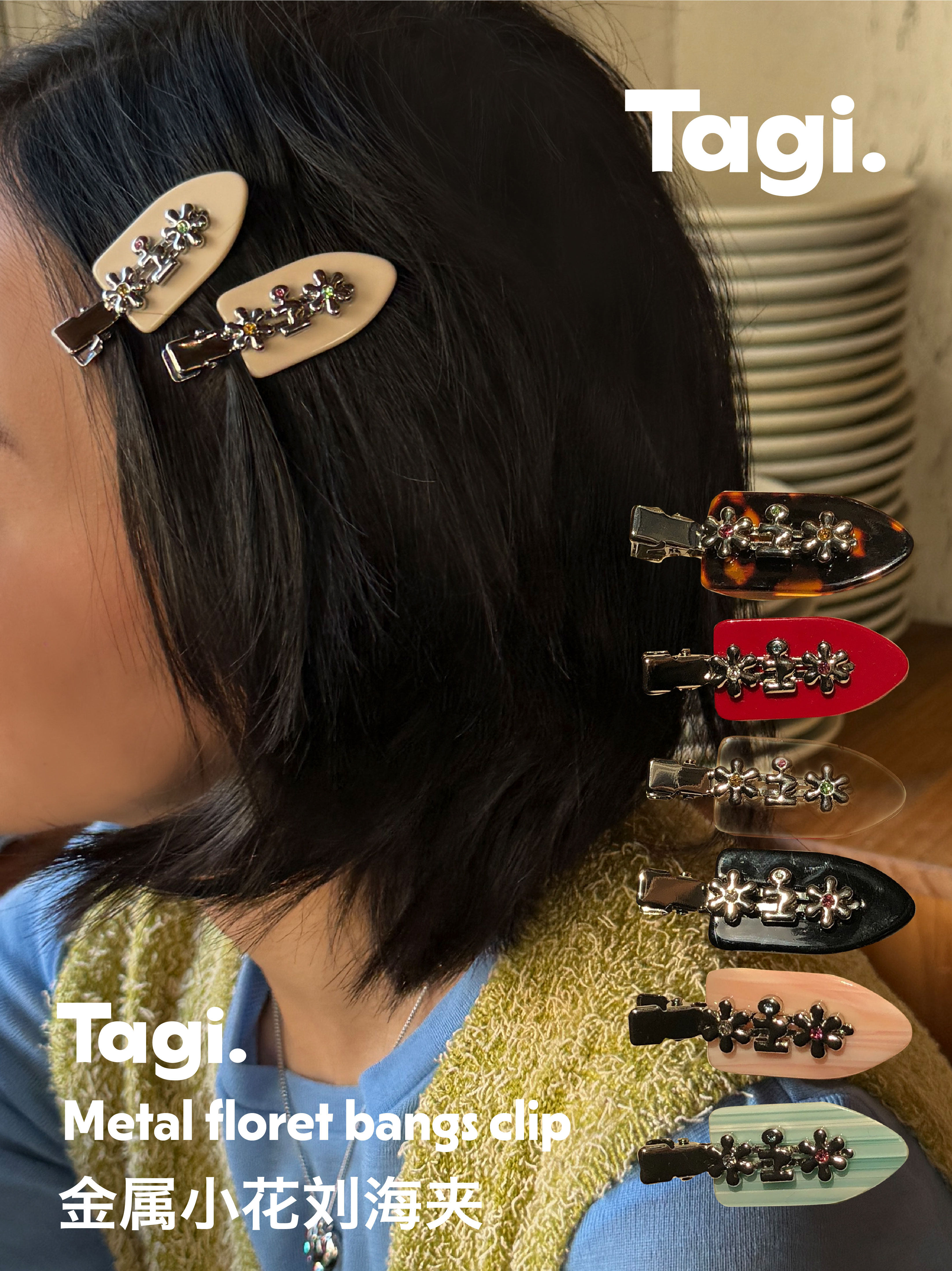 Tagi 金属鼓鼓小花刘海夹 小花边夹无痕鸭嘴夹刘海夹发卡