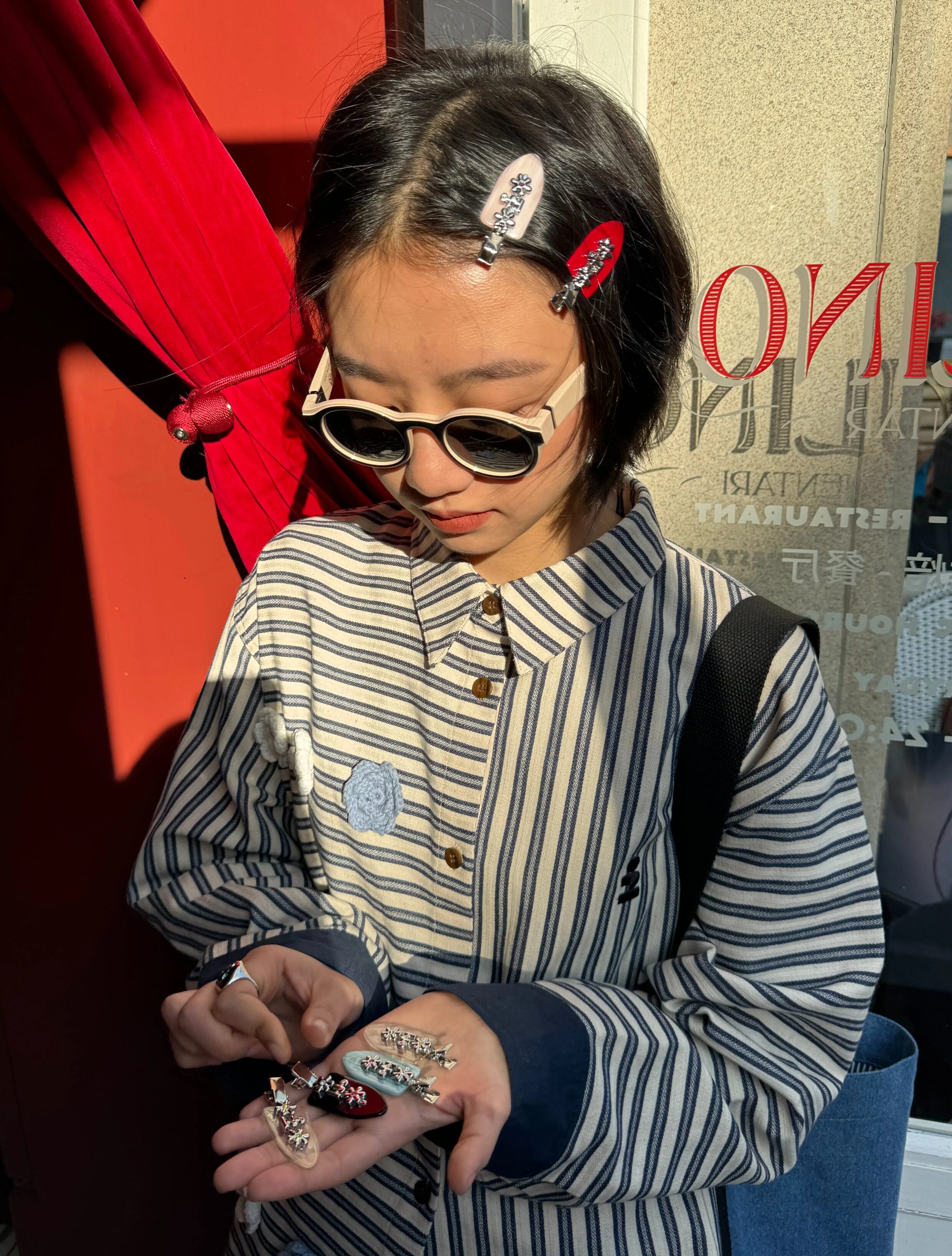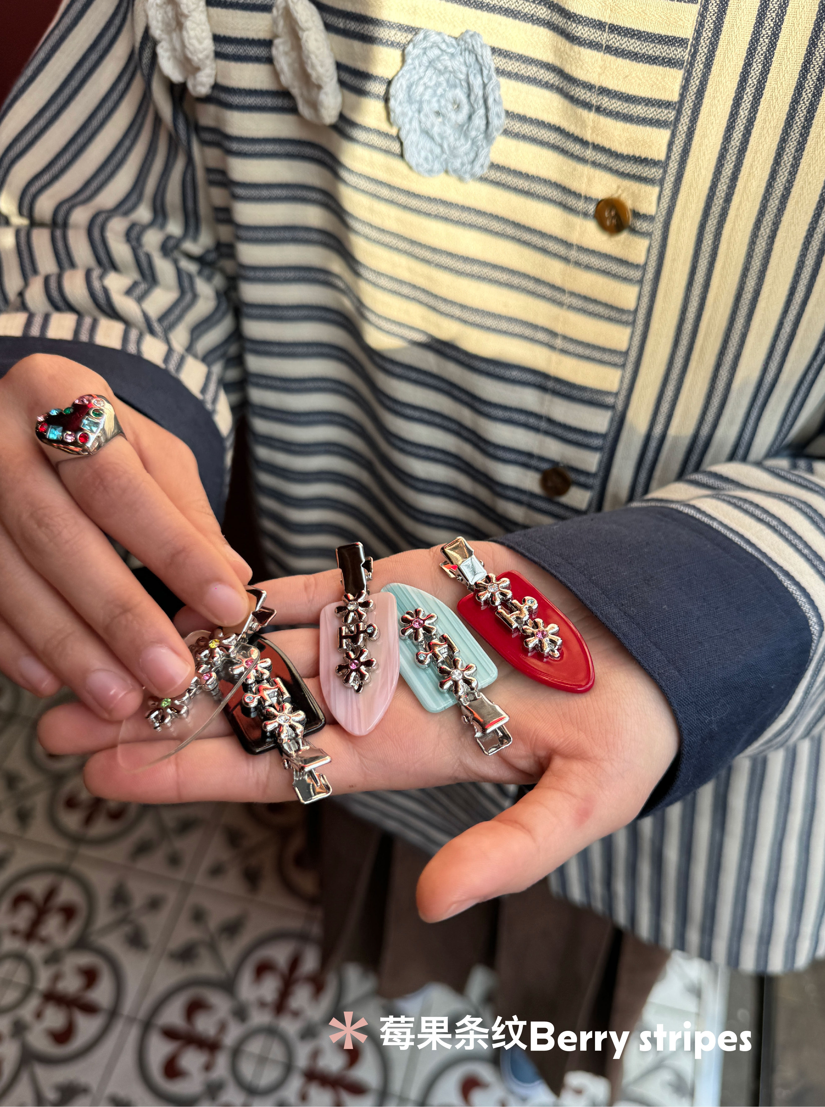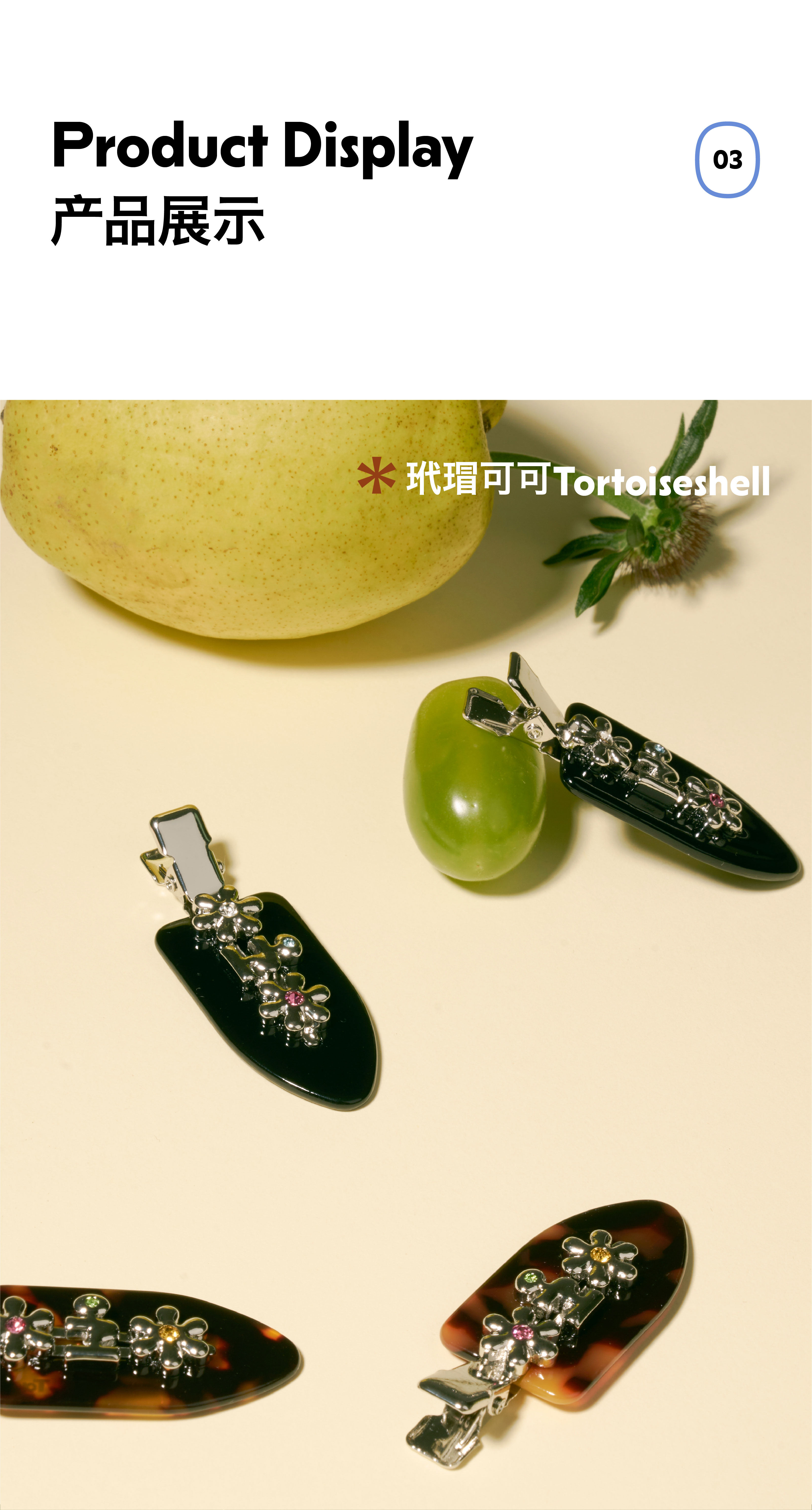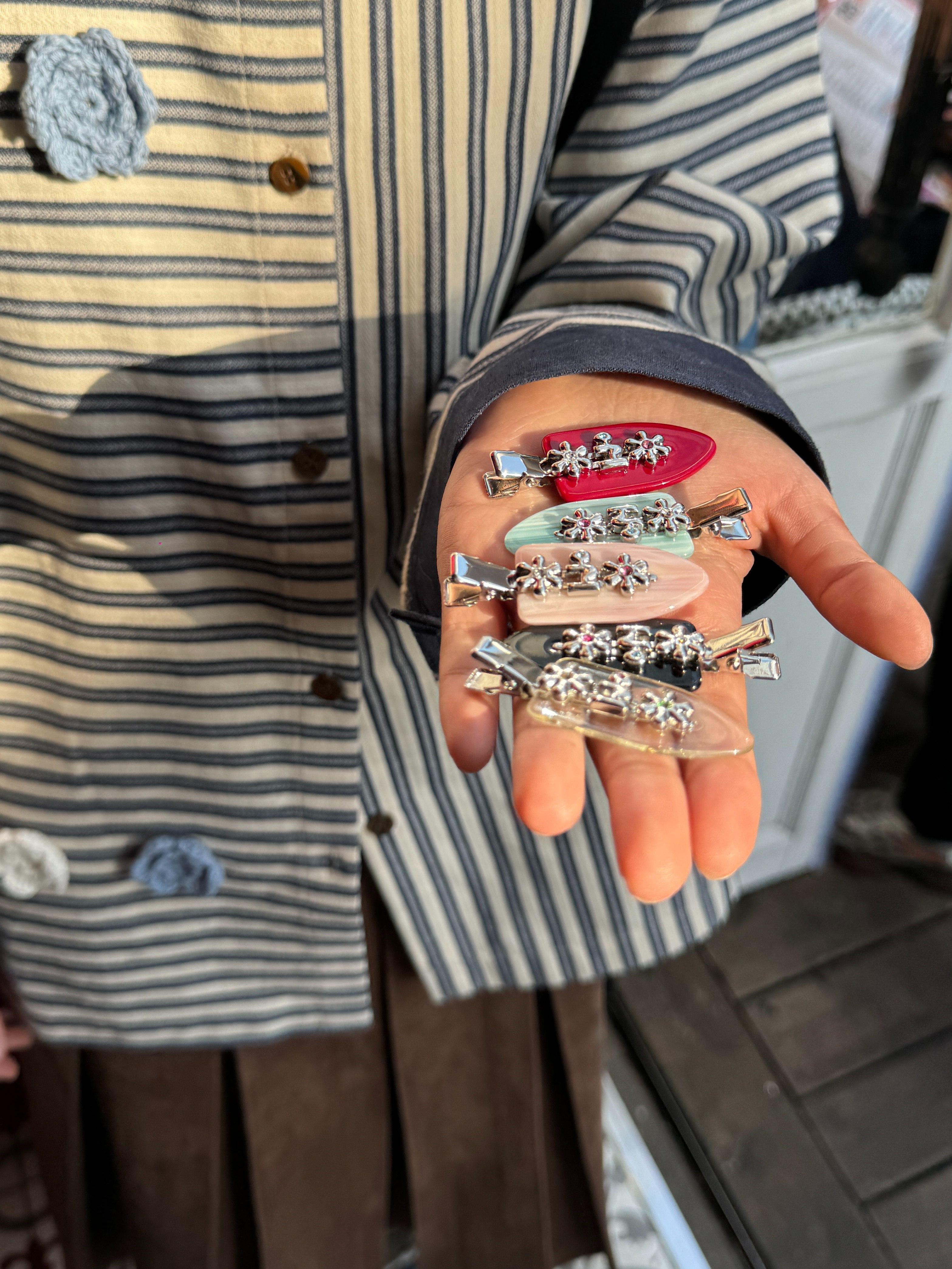 Tagi 金属鼓鼓小花刘海夹 小花边夹无痕鸭嘴夹刘海夹发卡