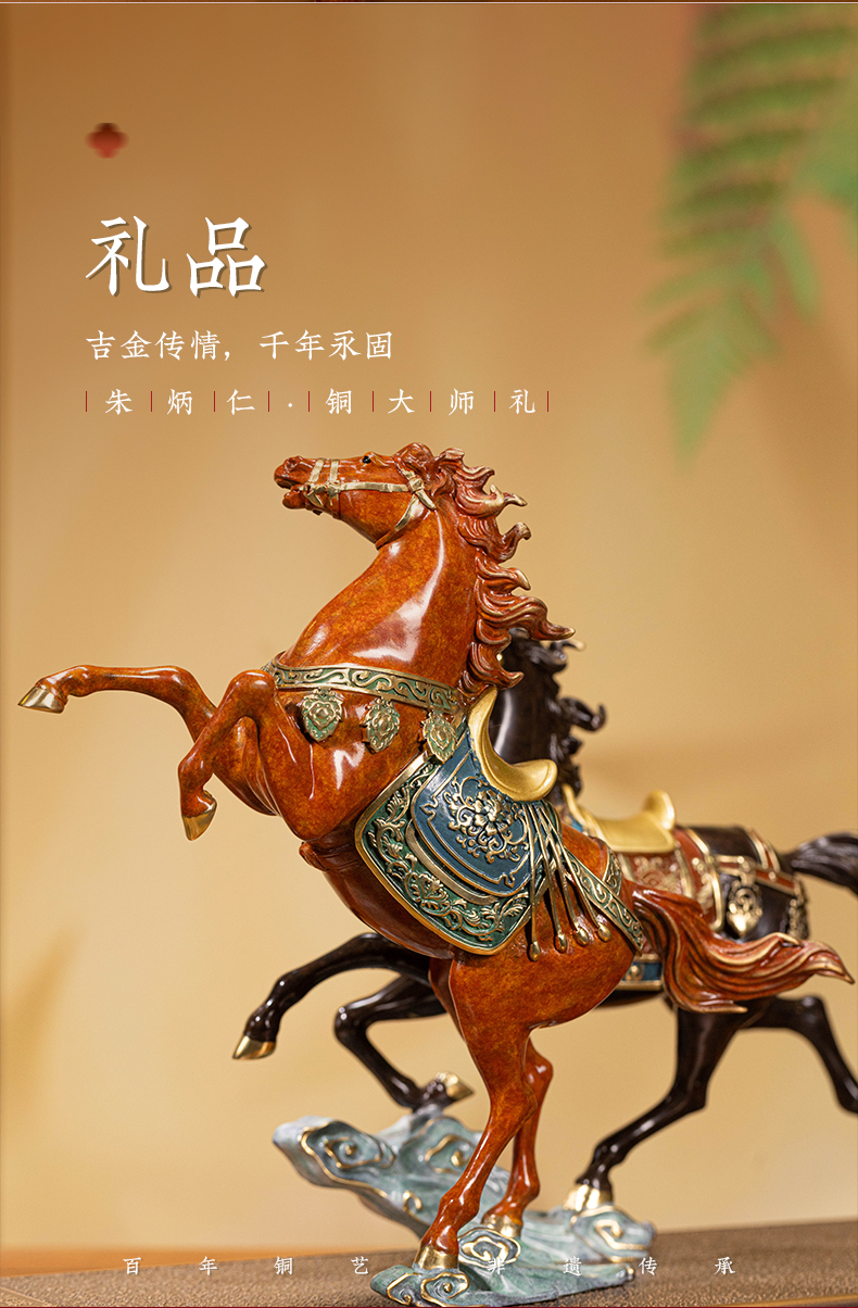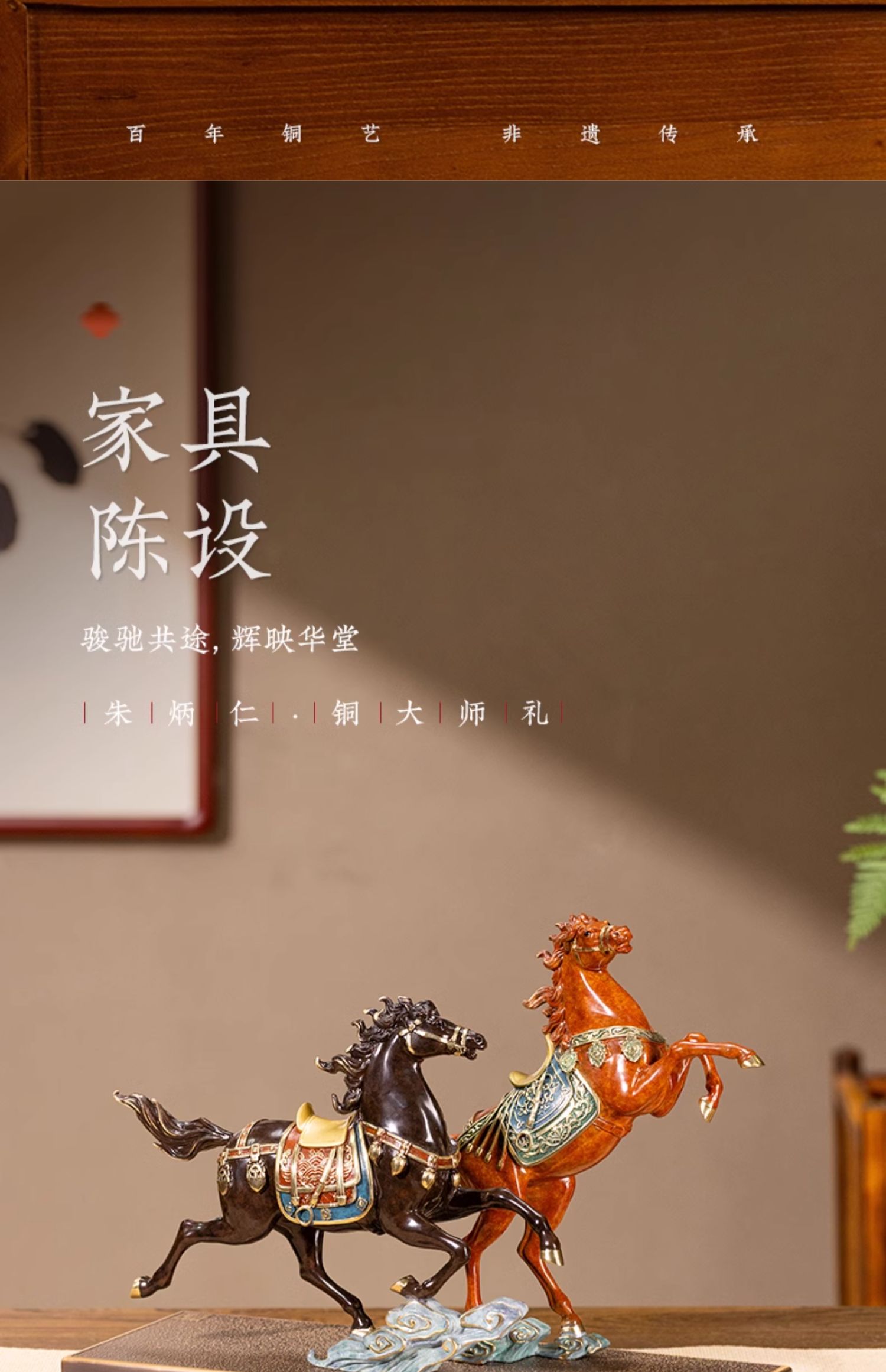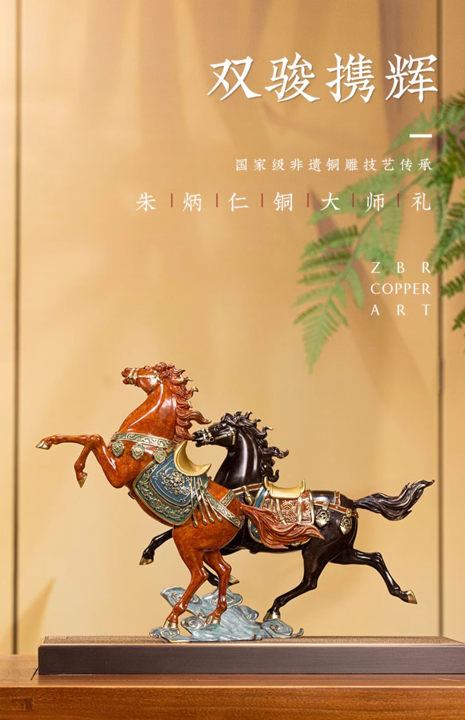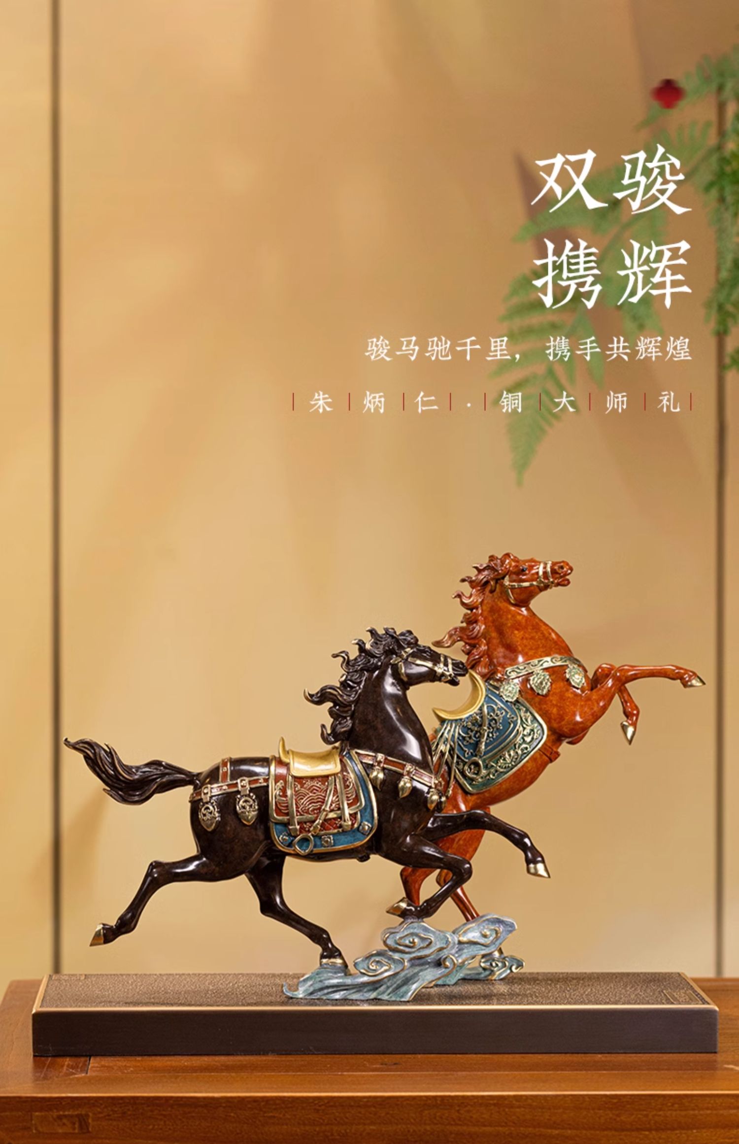 朱炳仁铜 双骏携辉 马摆件玄关电视柜桌面书房装饰企业乔迁送礼