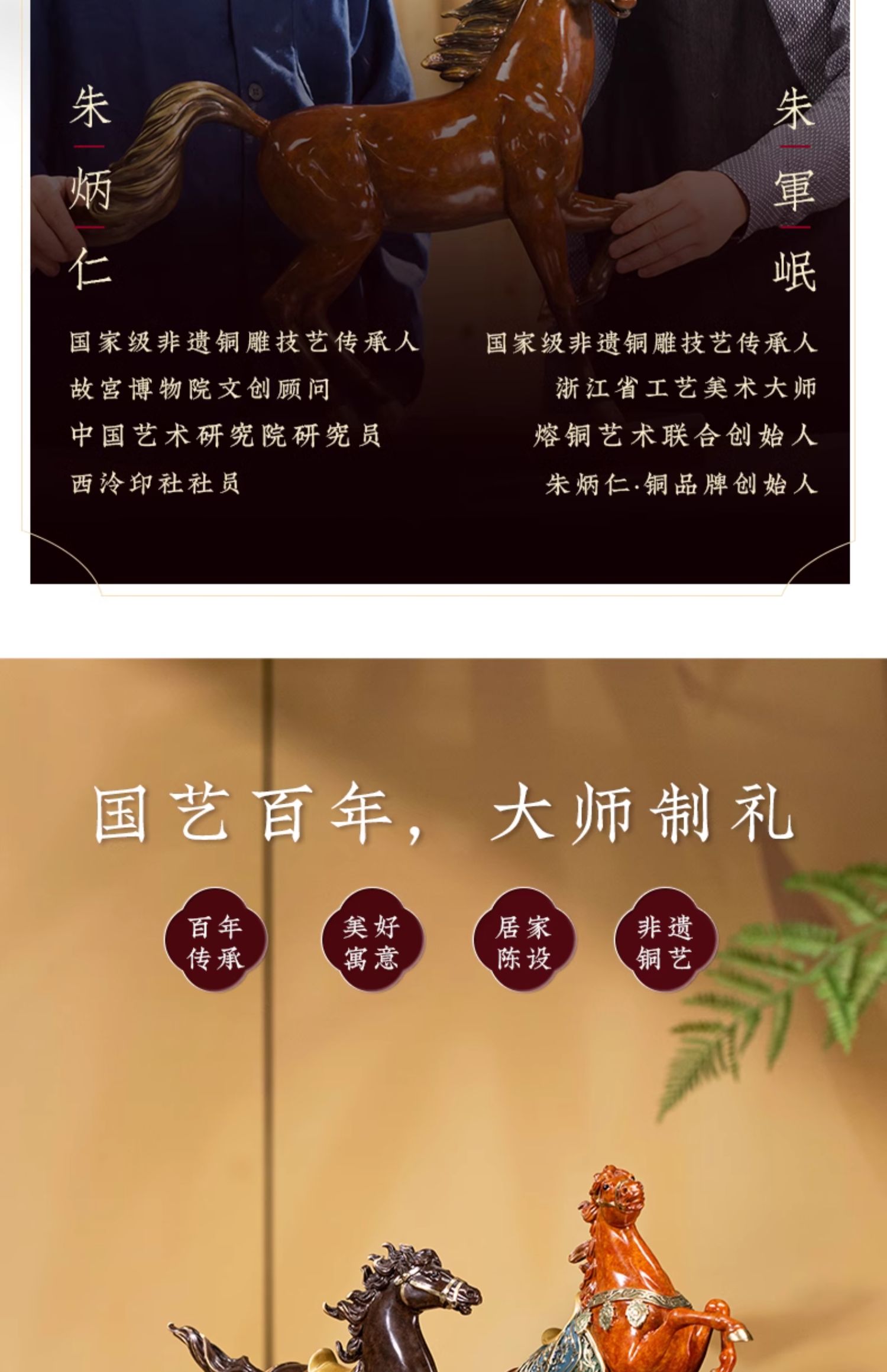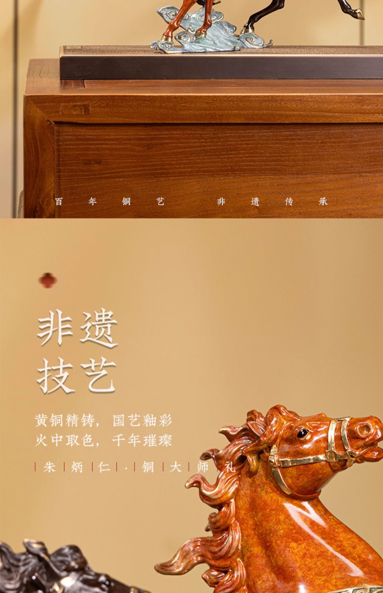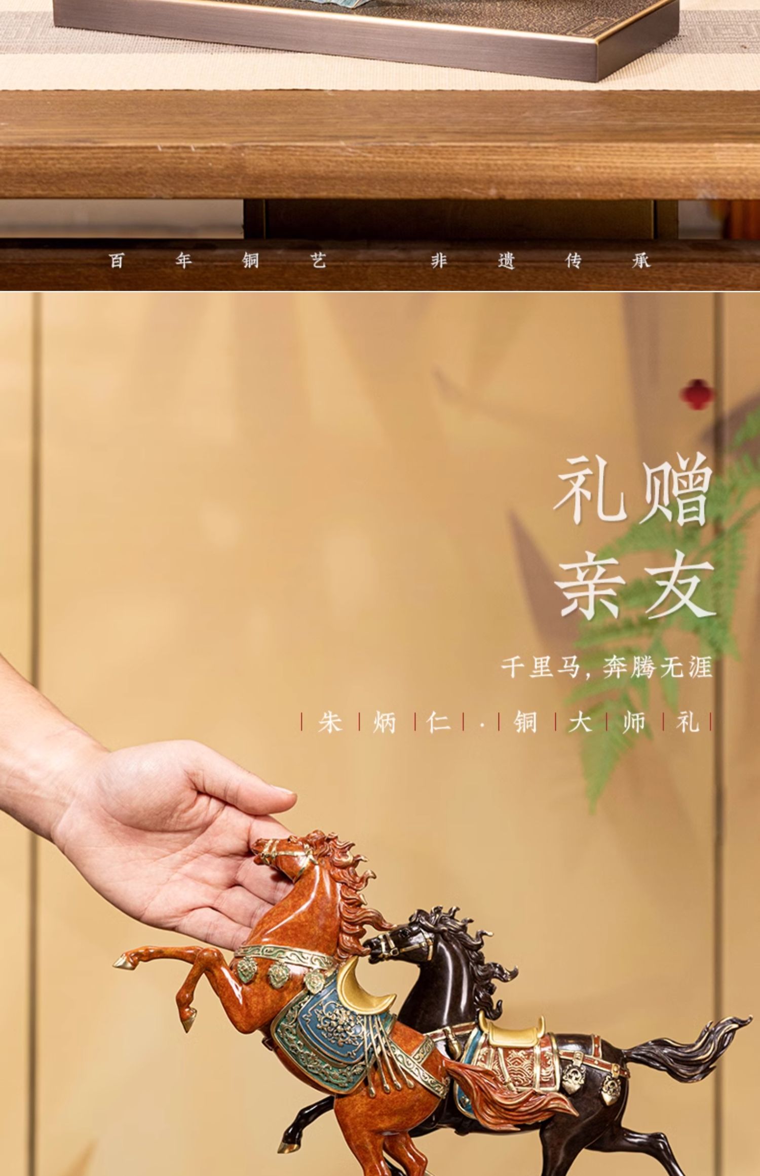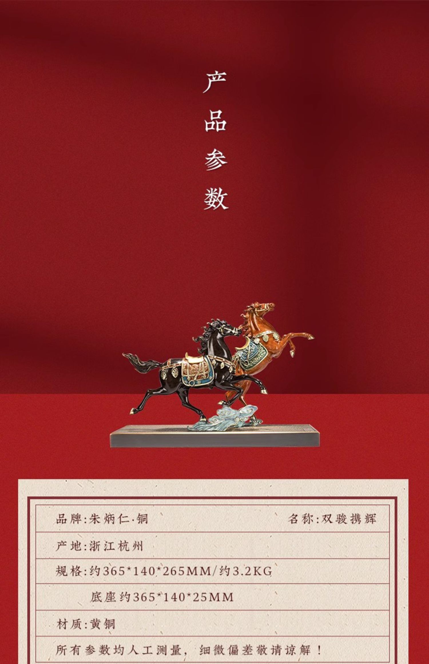 朱炳仁铜 双骏携辉 马摆件玄关电视柜桌面书房装饰企业乔迁送礼