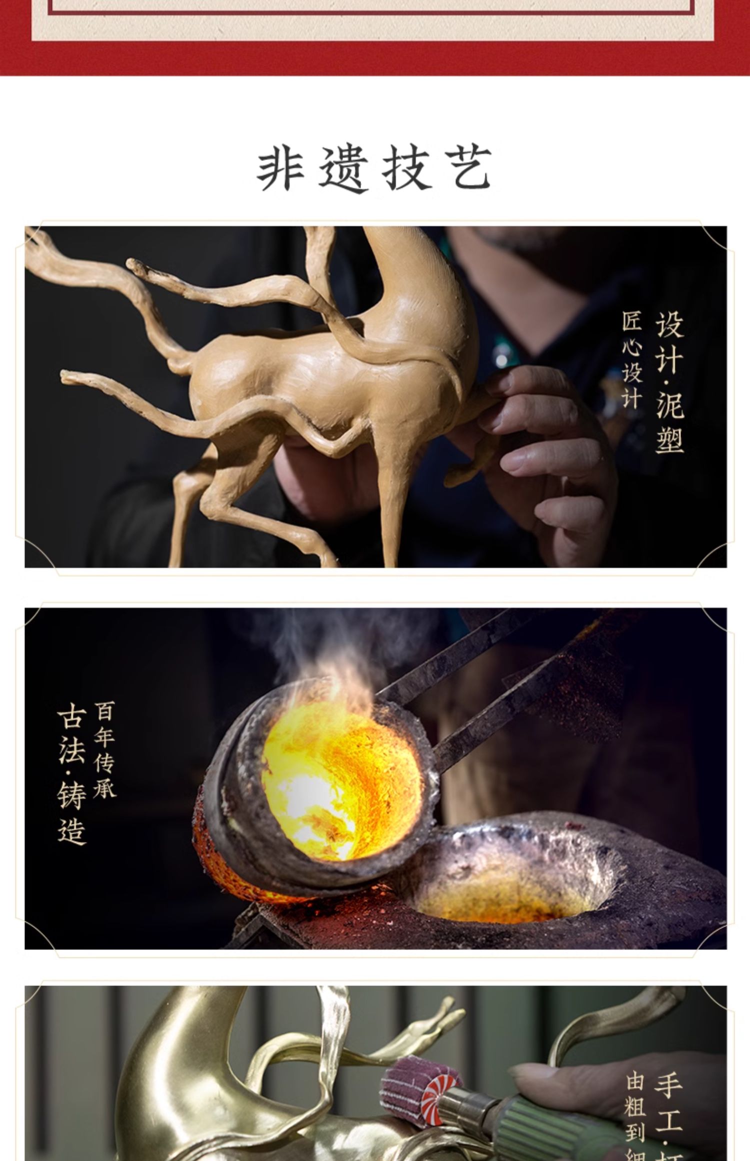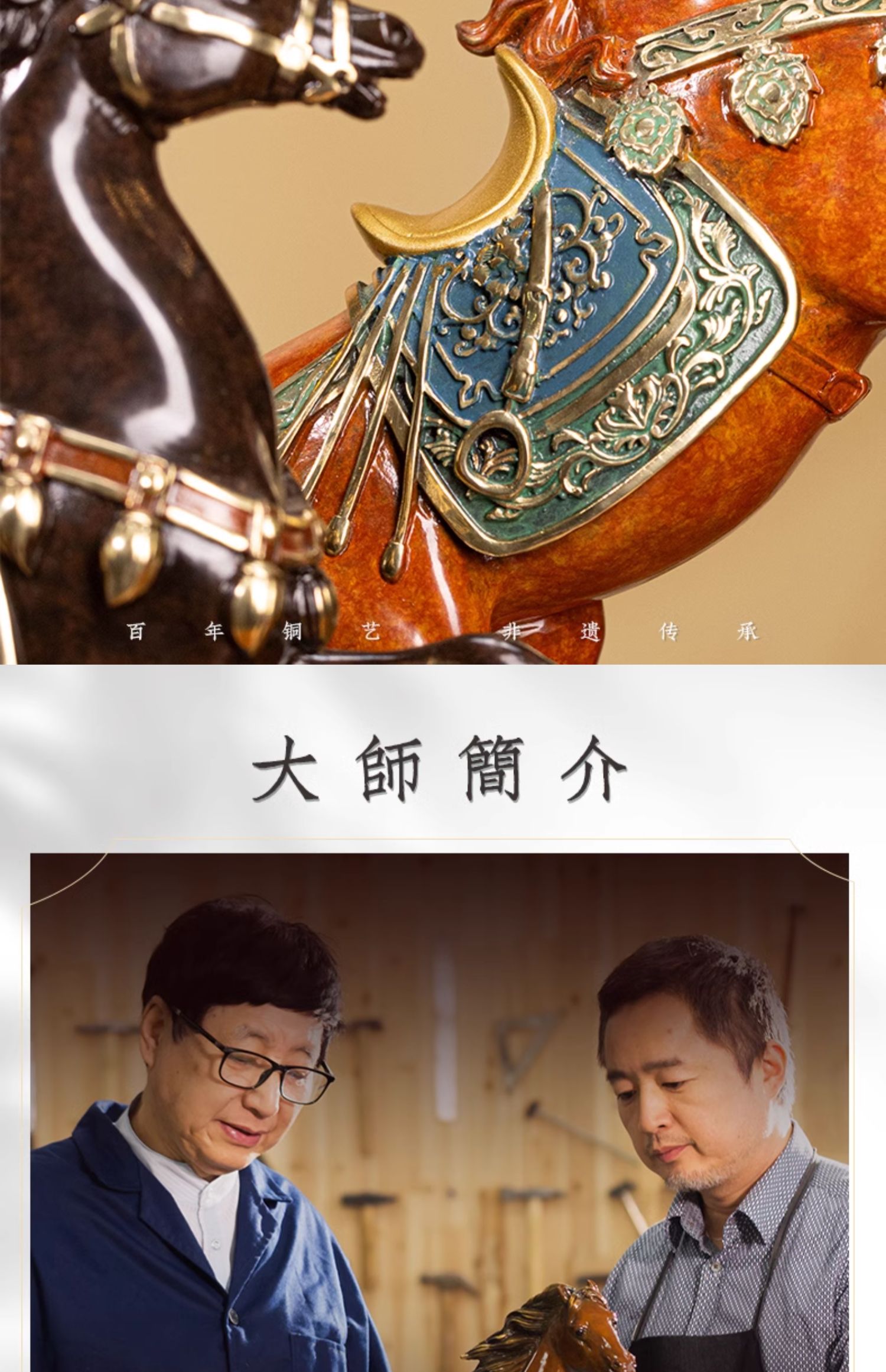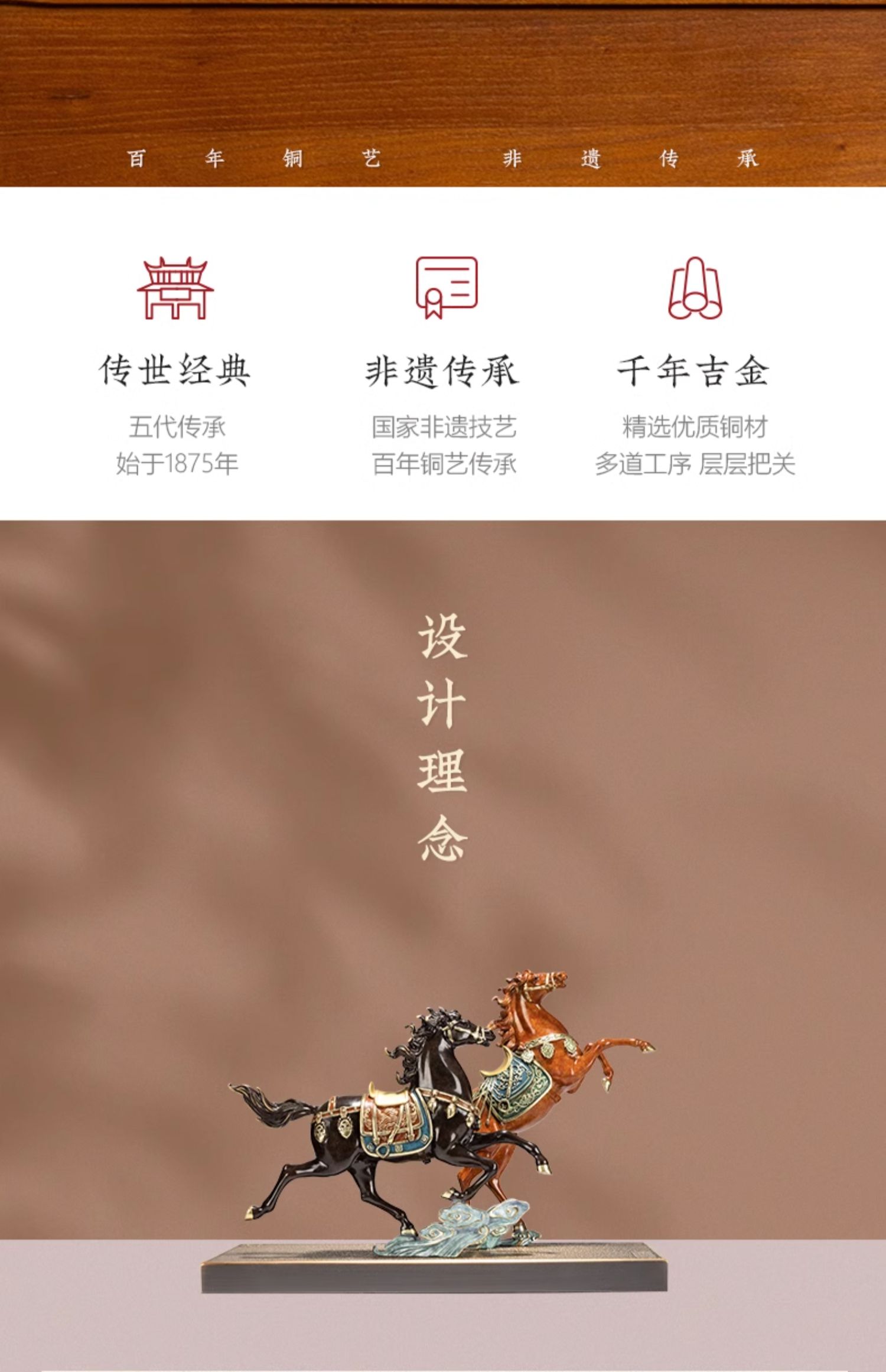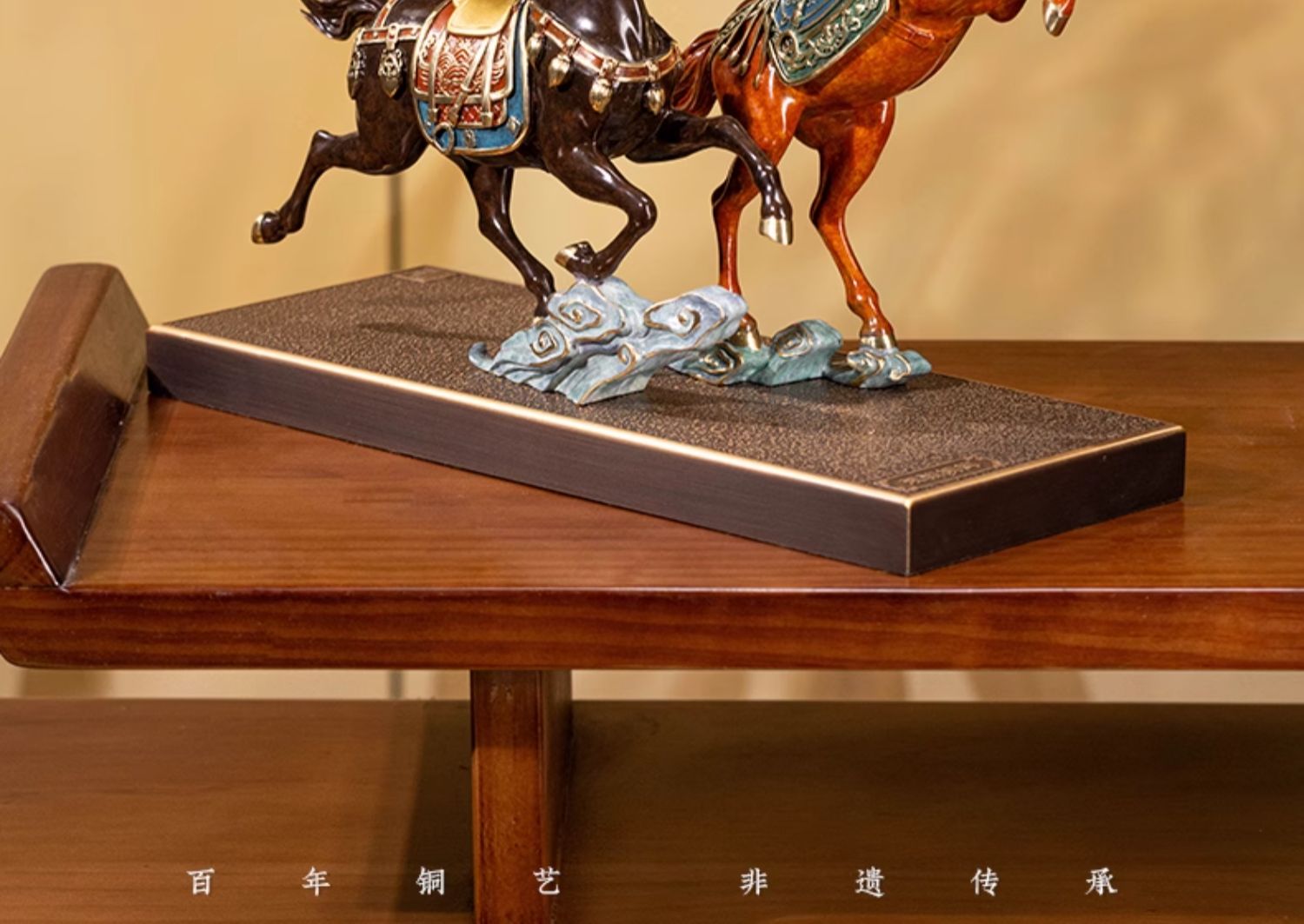 朱炳仁铜 双骏携辉 马摆件玄关电视柜桌面书房装饰企业乔迁送礼