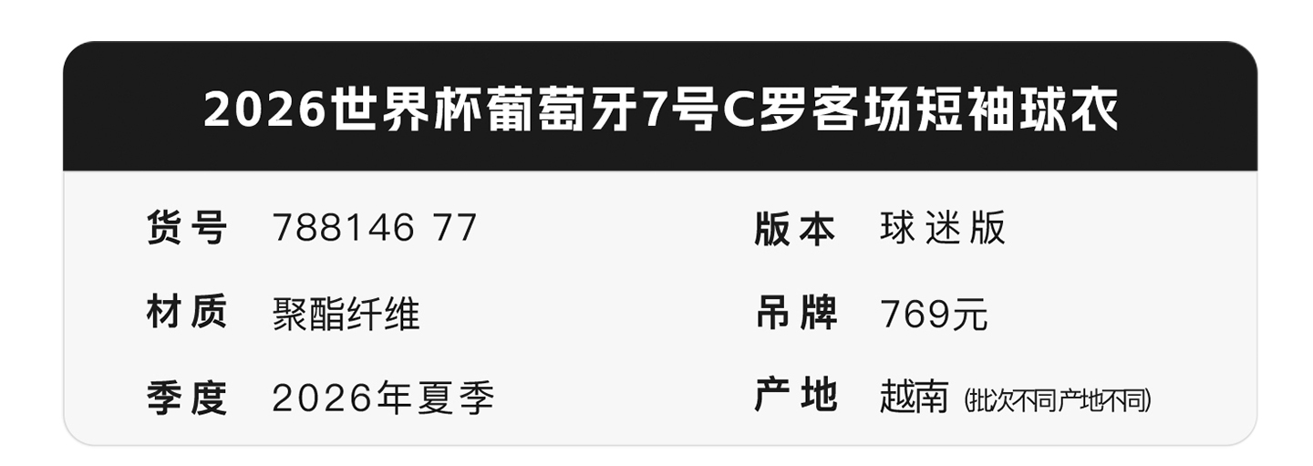 小李子PUMA彪马2026世界杯葡萄牙7号C罗客场球员版球衣788145 77