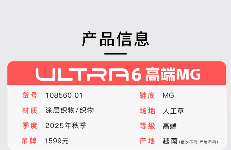 小李子PUMA彪马 ULTRA 6 高端MG短钉成人足球鞋男108560 01