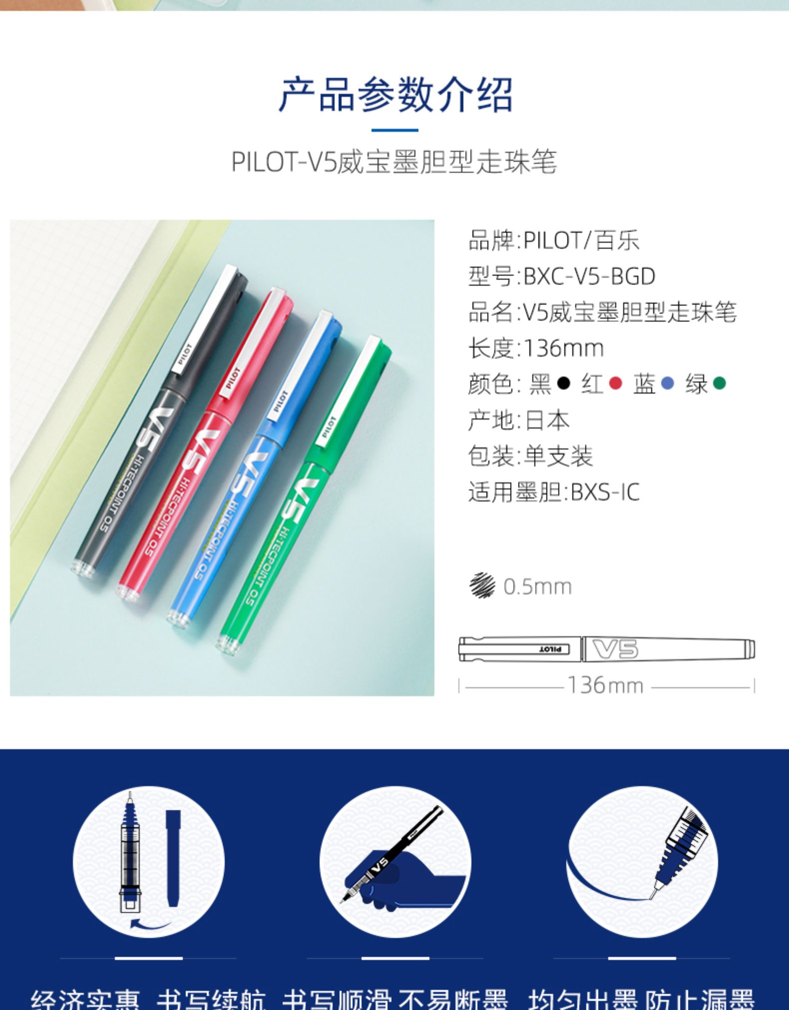 百乐威宝墨胆型走珠笔/黑BXC-V5-B-BGD/黑