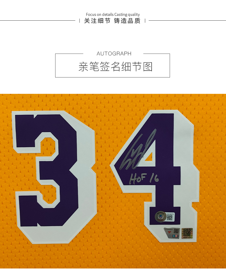 收藏系列 奥尼尔 湖人队34号 铭文版 亲 笔签名球衣
