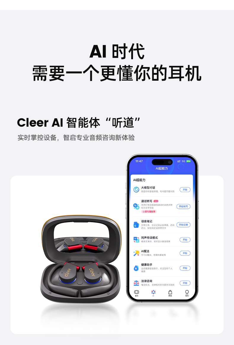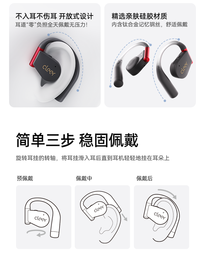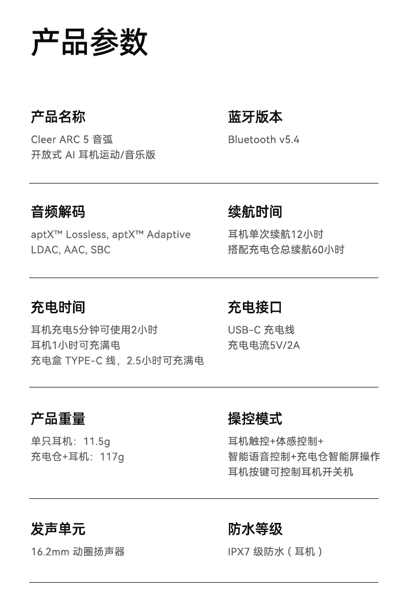 Cleer ARC 5 运动版 无线运动蓝牙耳机 开放式AI智能体耳机蓝牙新款运动跑步