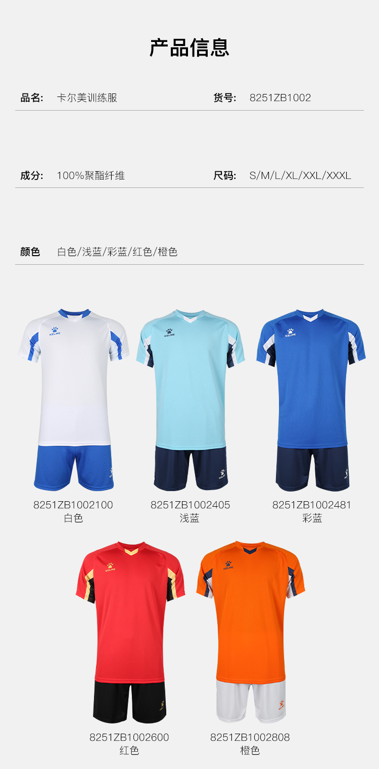 小李子KELME卡尔美足球运动训练足球服套装组队定制球衣比赛服男