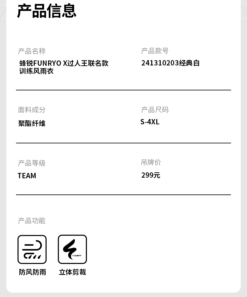 小李子:蜂锐过人王联名款风雨衣防风防御运动外套连帽足球训练服