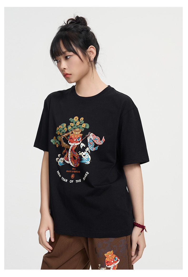 ONIARAI/鬼洗25春夏棒系列蛇年金钱树短袖T男女情侣款 N840265