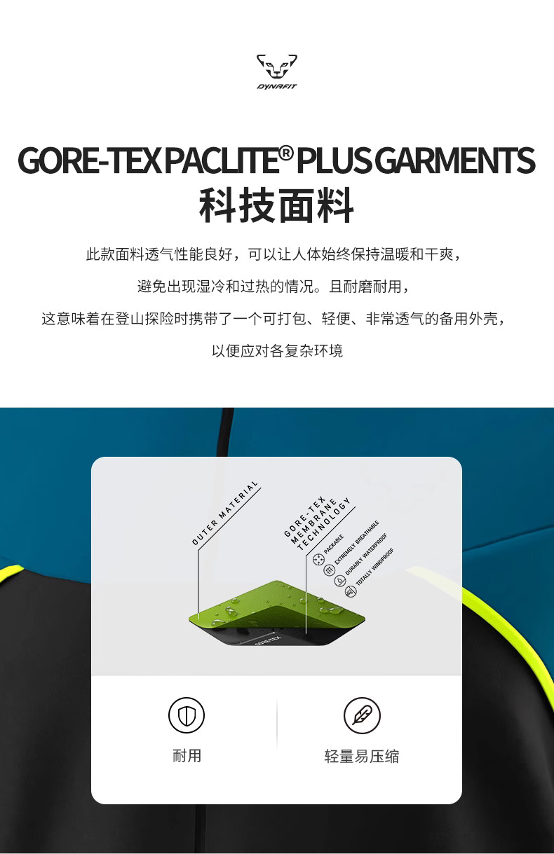 DYNAFIT 雪豹 男款 轻量防风透气 GORE-TEX 越野跑冲锋衣 71468