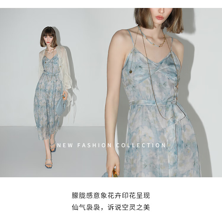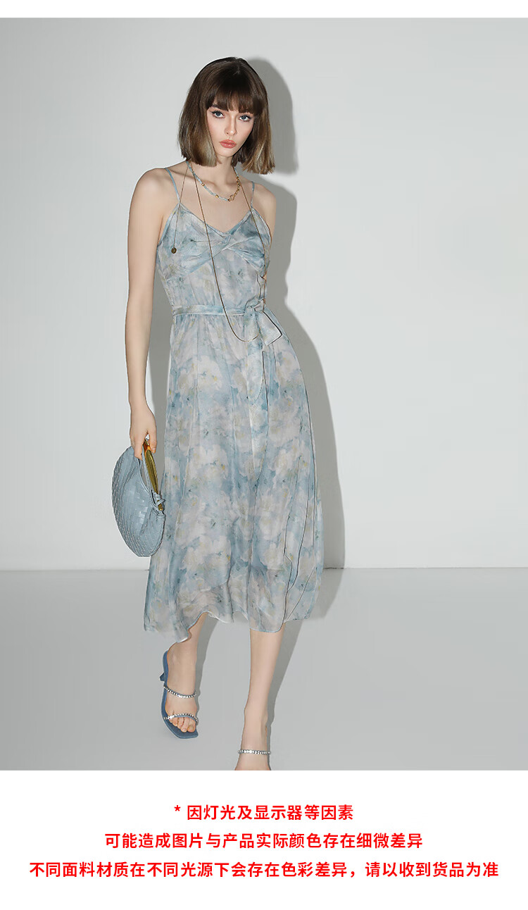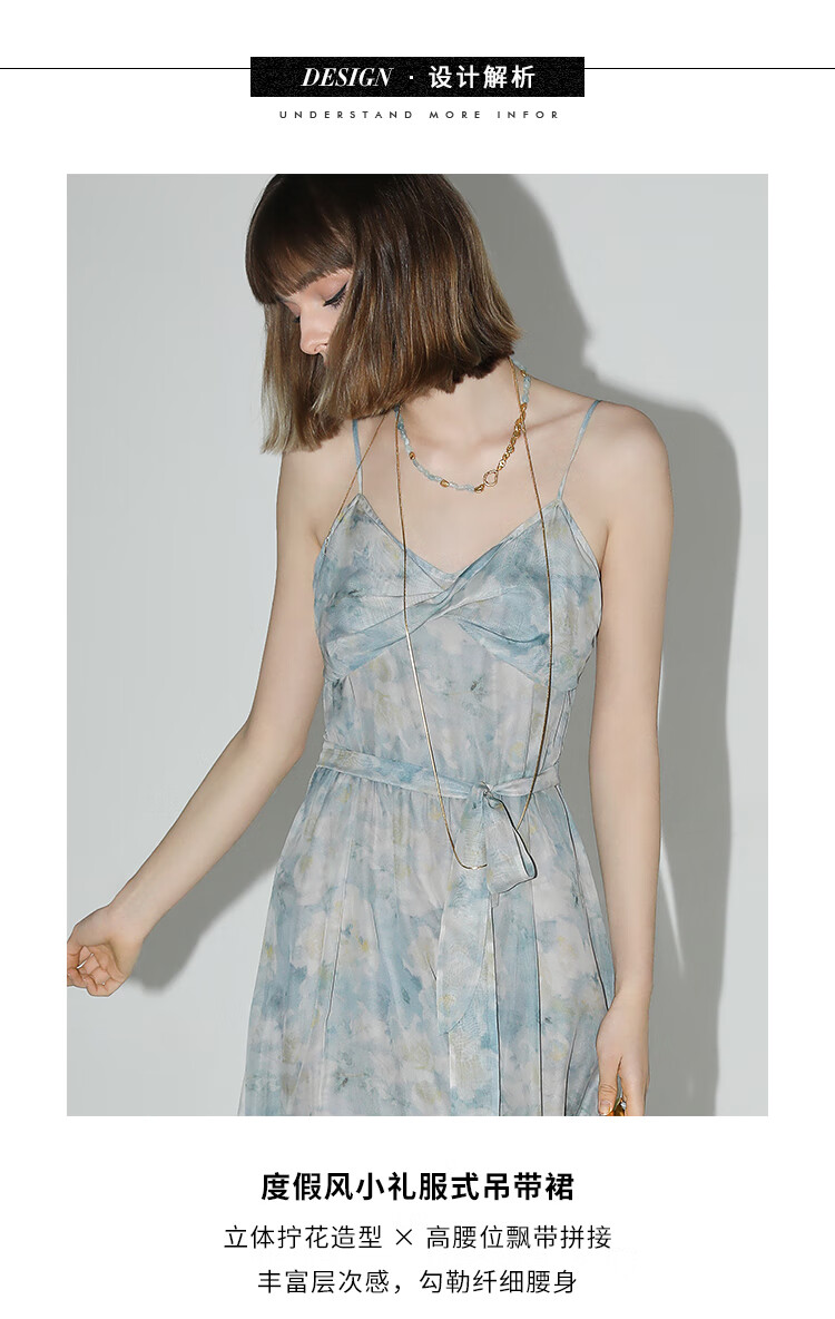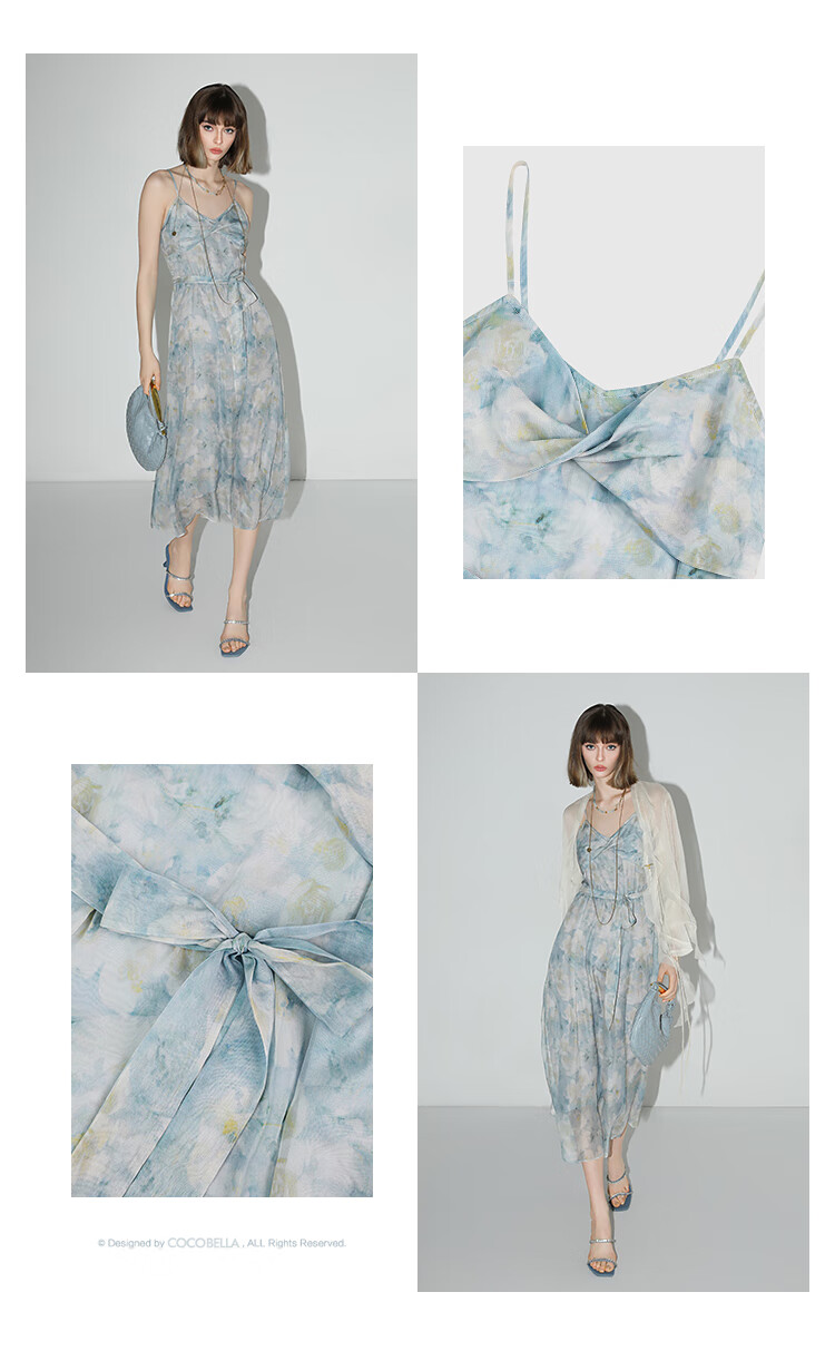 【秒杀】COCOBELLA设计感拧花吊带裙夏雪纺印花清新度假风连衣裙FR188