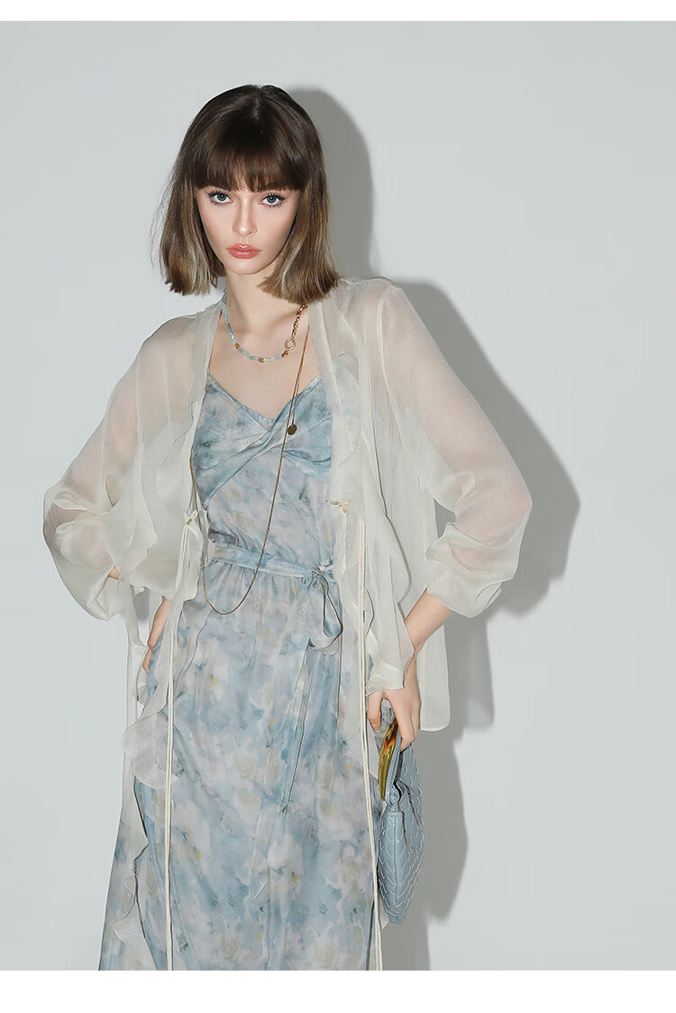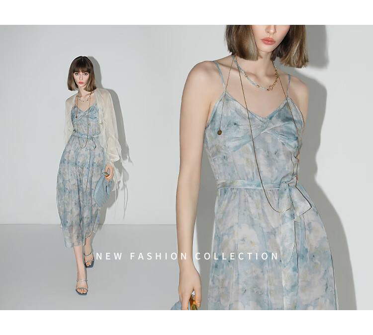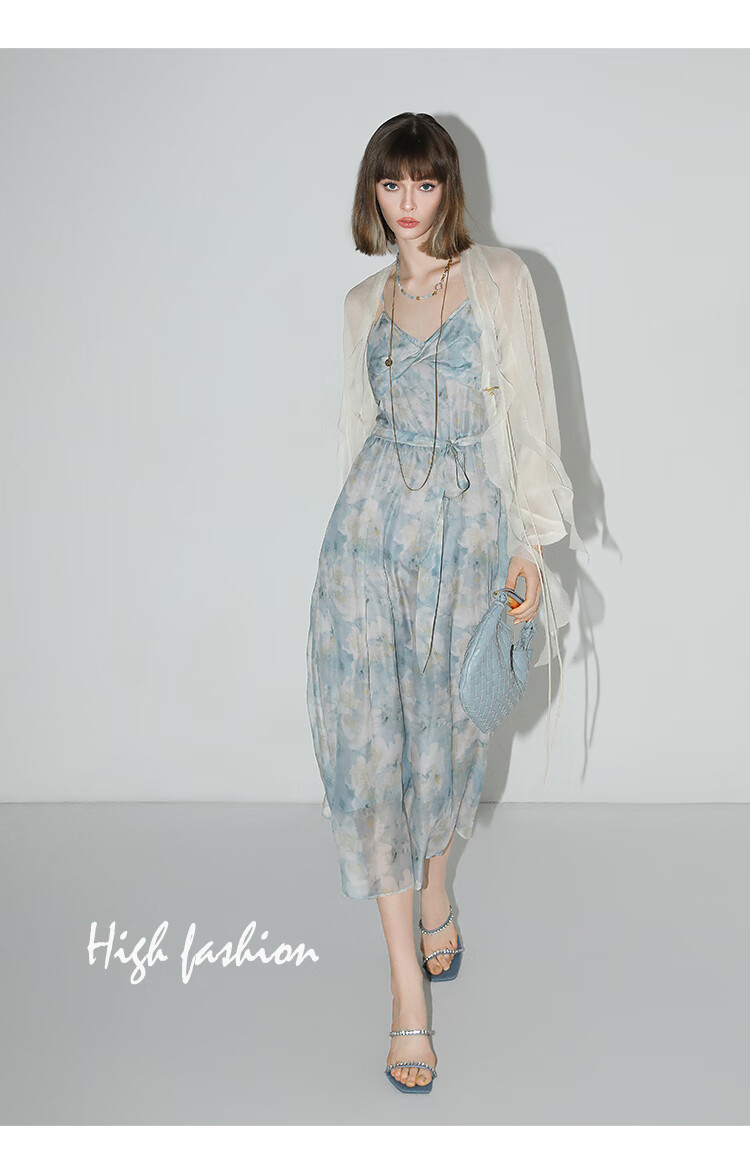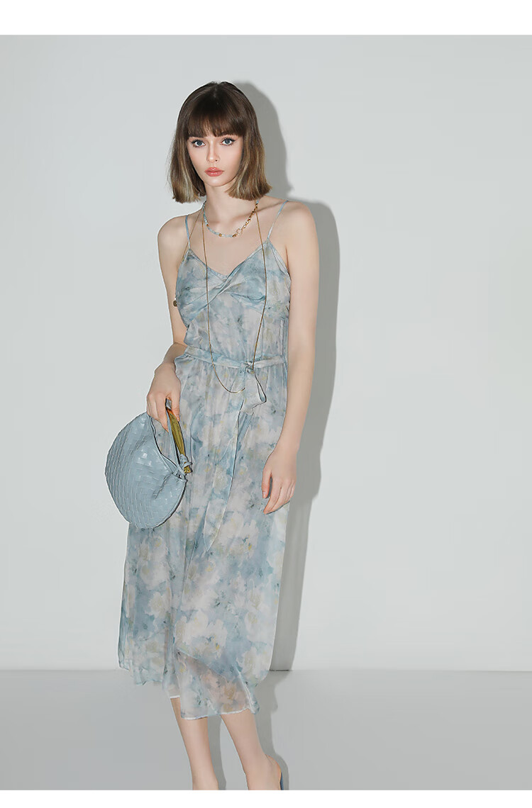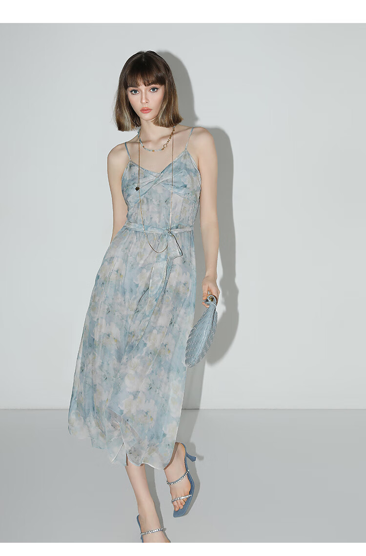 【秒杀】COCOBELLA设计感拧花吊带裙夏雪纺印花清新度假风连衣裙FR188