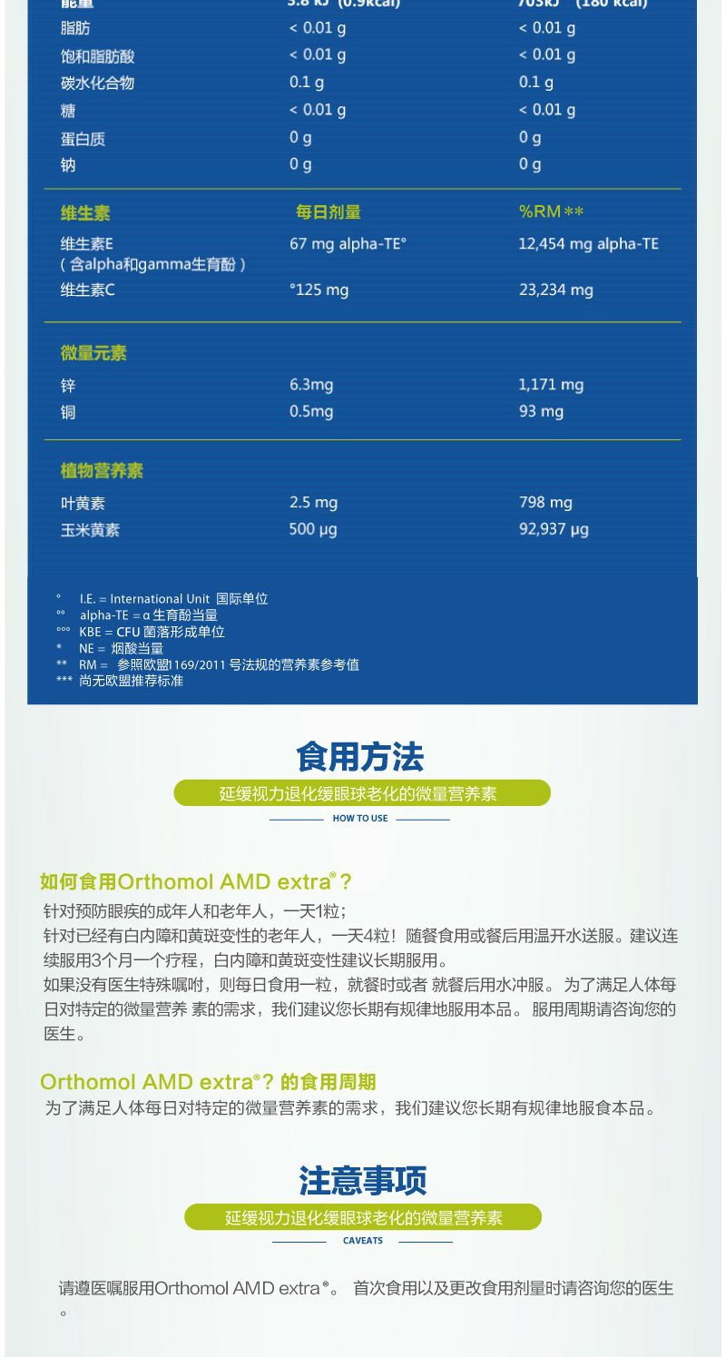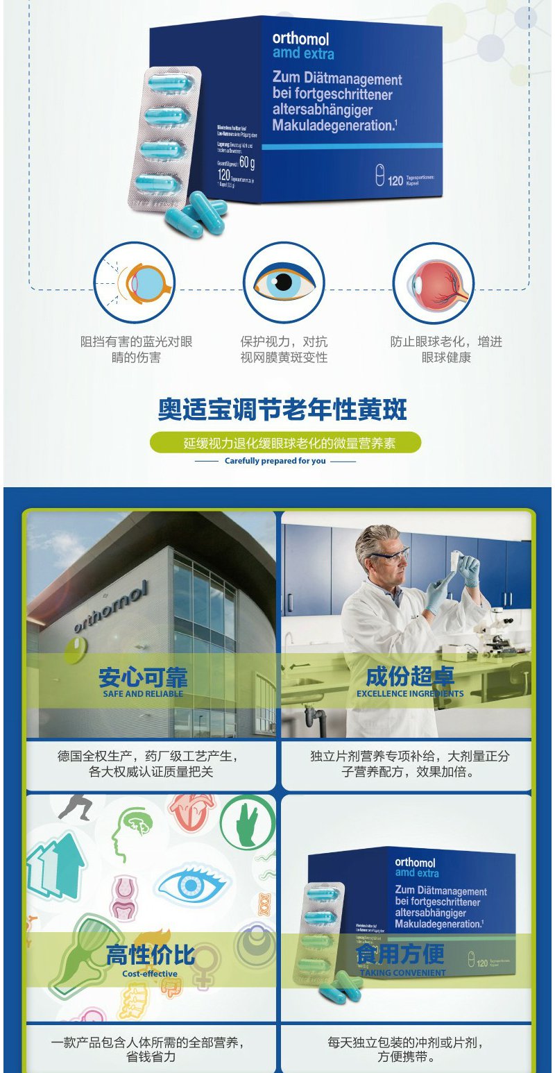 【Orthomol奥适宝】AMDextra老年眼部营养素叶黄素120粒/盒【德国直邮时效一个月】