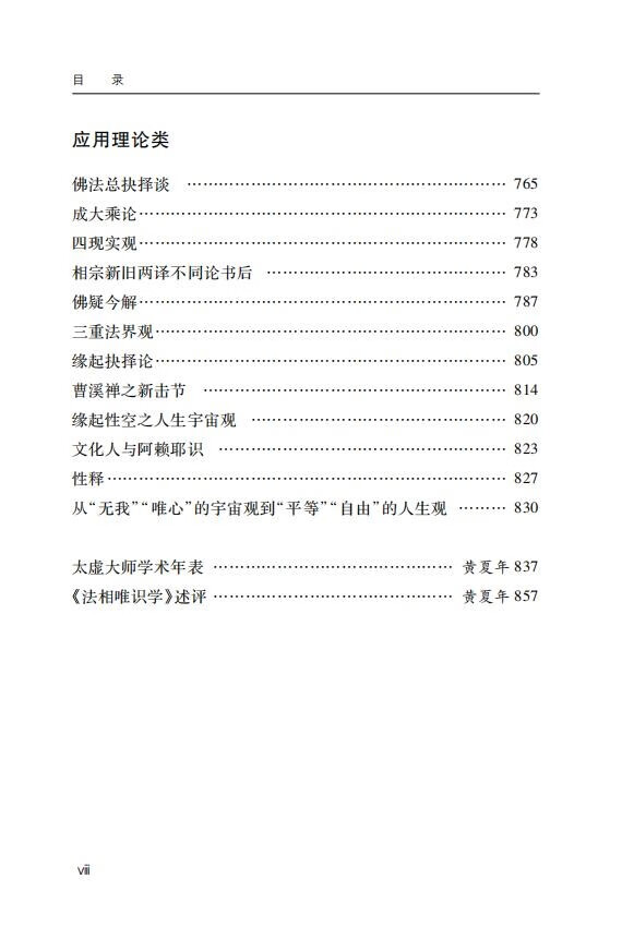 本书收入太虚法师阐述法相唯识学的重要讲演和文章 57篇,书前有王恩洋、张化声等人为其中《法相唯识学概论》所作的10篇序。全书内容包括唯识理论类、唯识答辩类、唯识学通疏释类等。 本书内容全面,条理清晰,结构严谨,具有较高的科学性、系统性、理论性及学术价值。