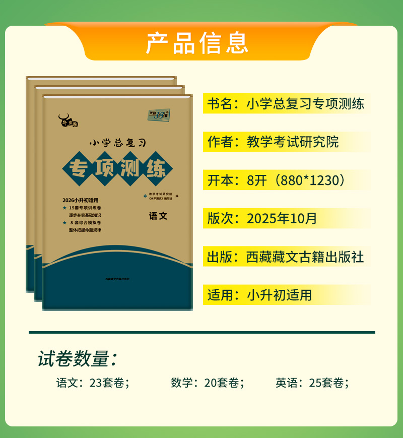 【天利38套】2026适用小学总复习专项训练语文数学英语牛皮卷专项突破练习试卷巩固基础知识模拟试题小升初真题2026全套六年级升初中书