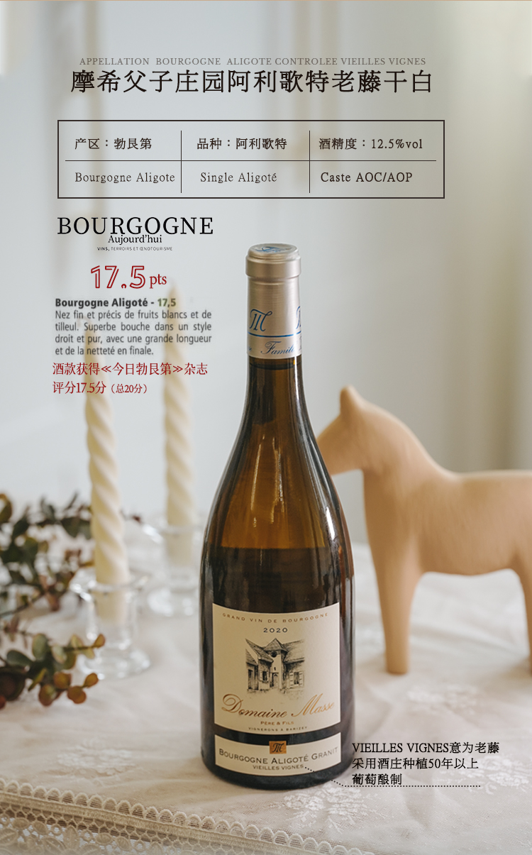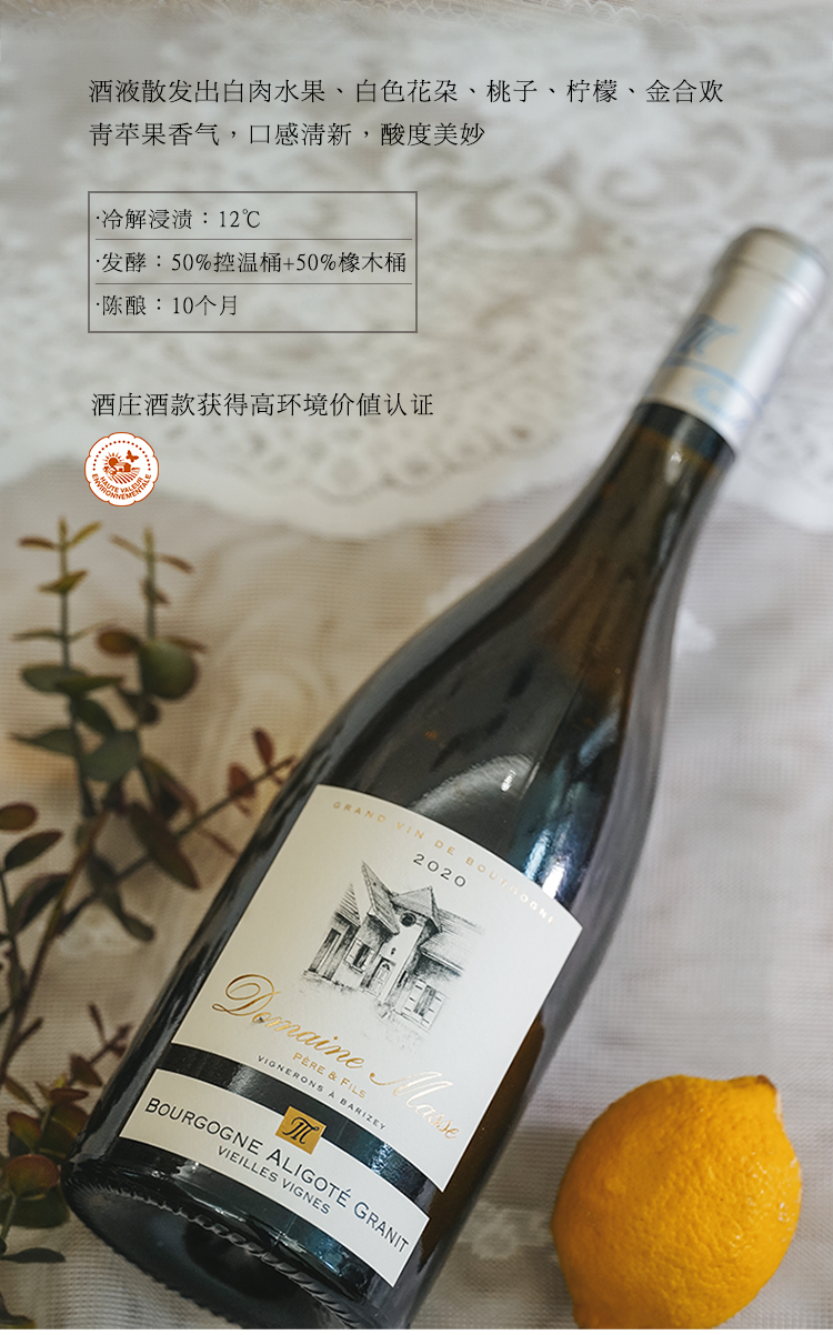 【高环境价值HVE认证款】摩希父子庄园老藤阿利歌特干白葡萄酒 AOP等级 12.5%vol