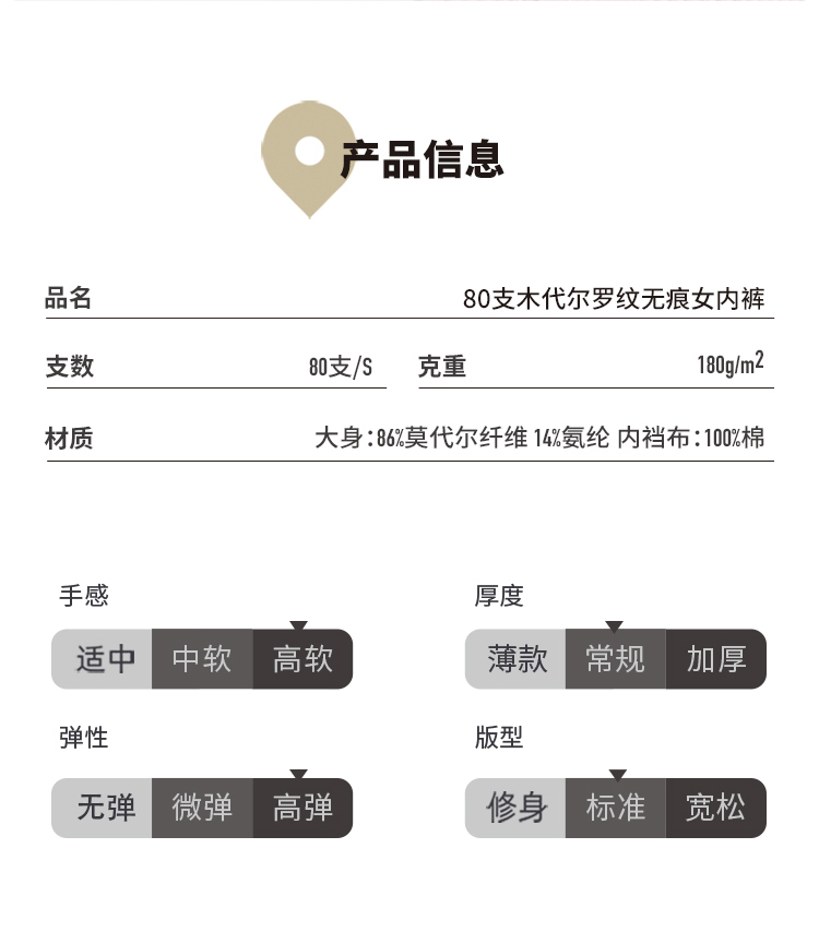 Threegun三枪 80支木代尔罗纹无痕女士内裤-T40005B02