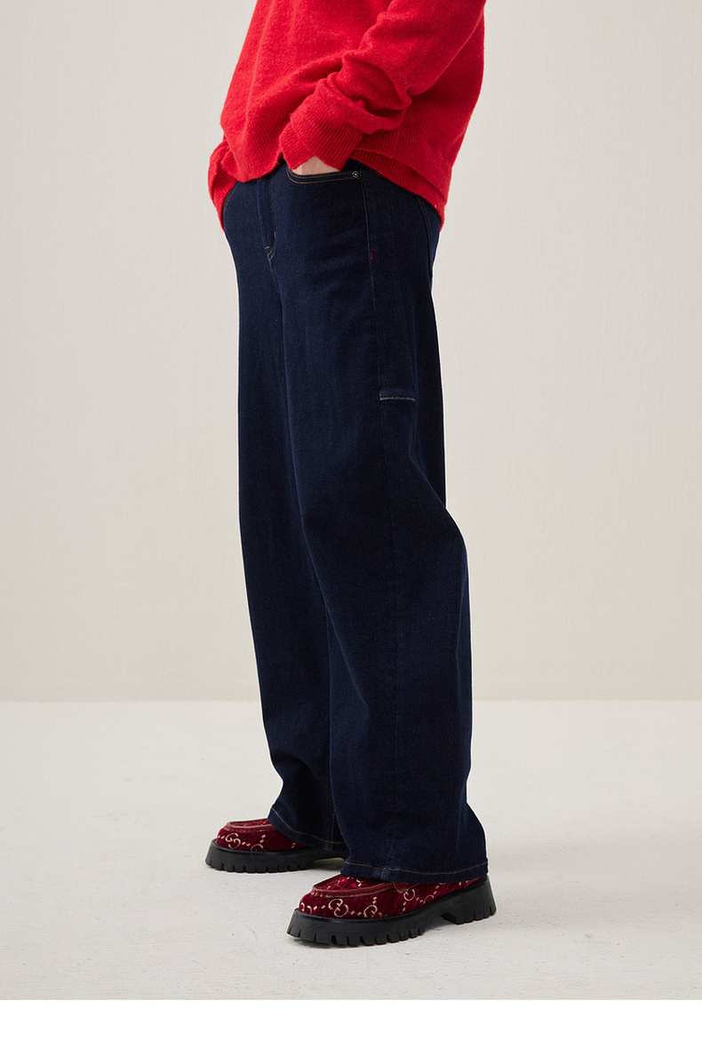谜底牛仔裤长裤2025冬季新品弧线剪裁复古活力直筒裤女254MJ1659