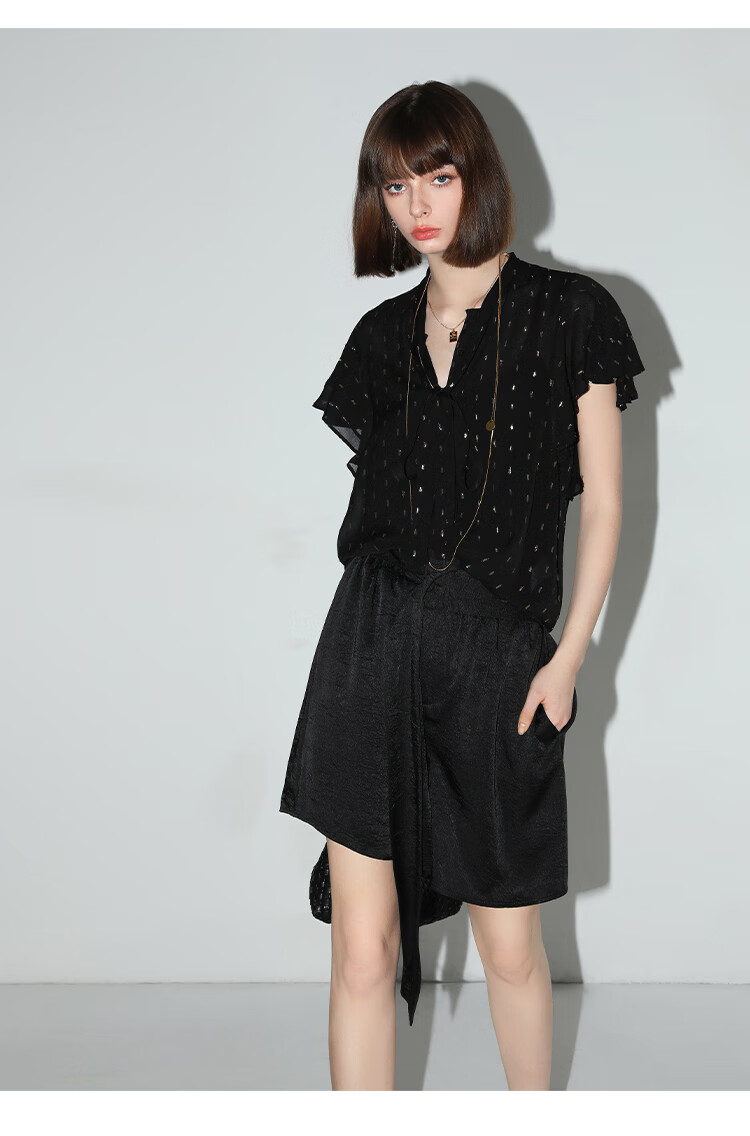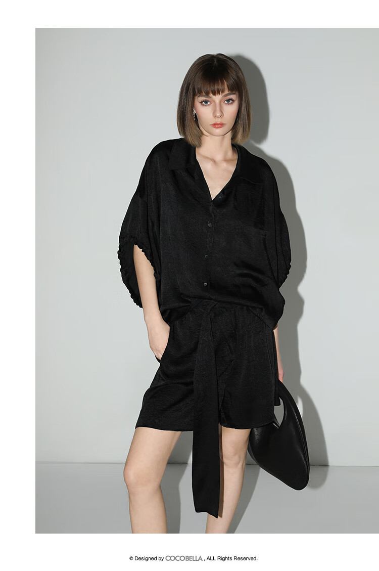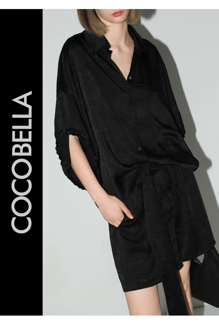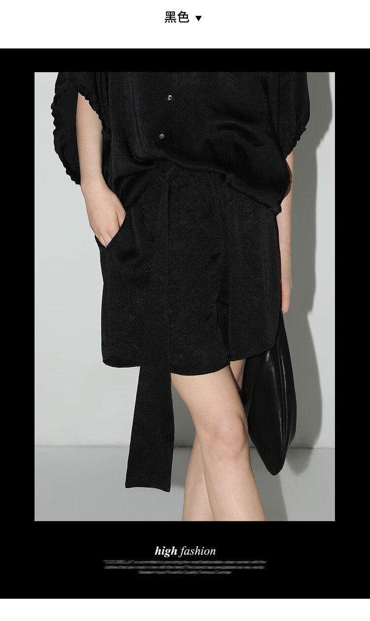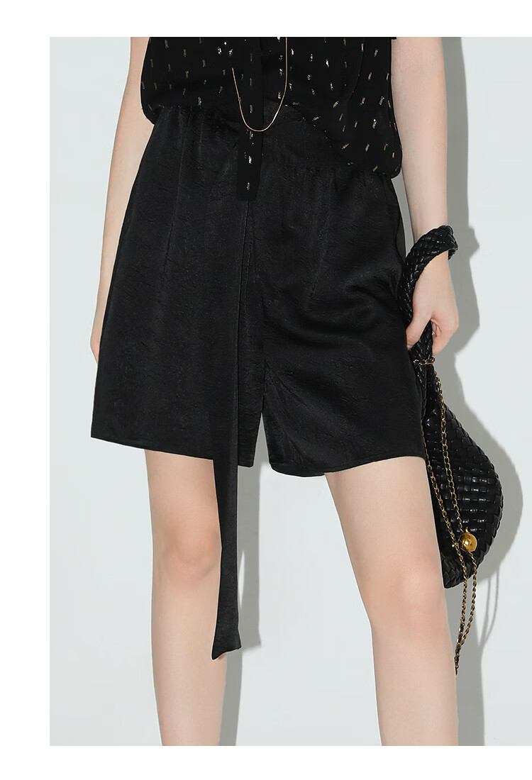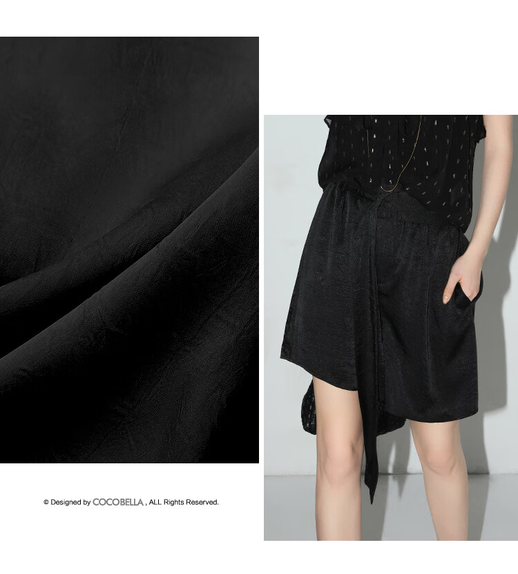 【限时秒杀】COCOBELLA丝光质感褶皱缎面裙裤夏设计感飘带通勤短裤SO3001