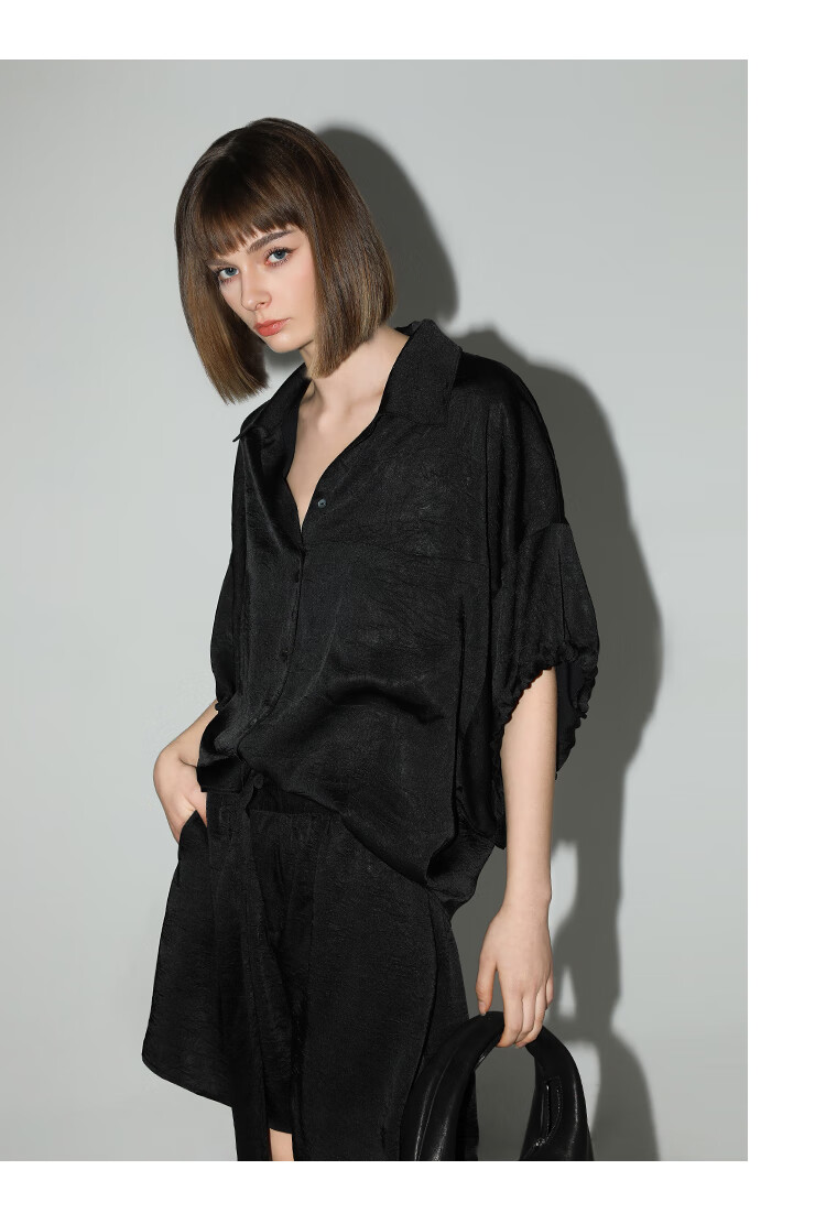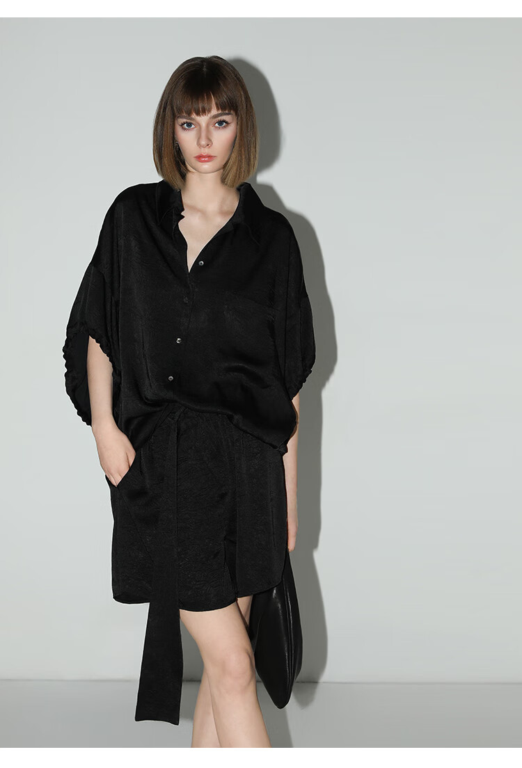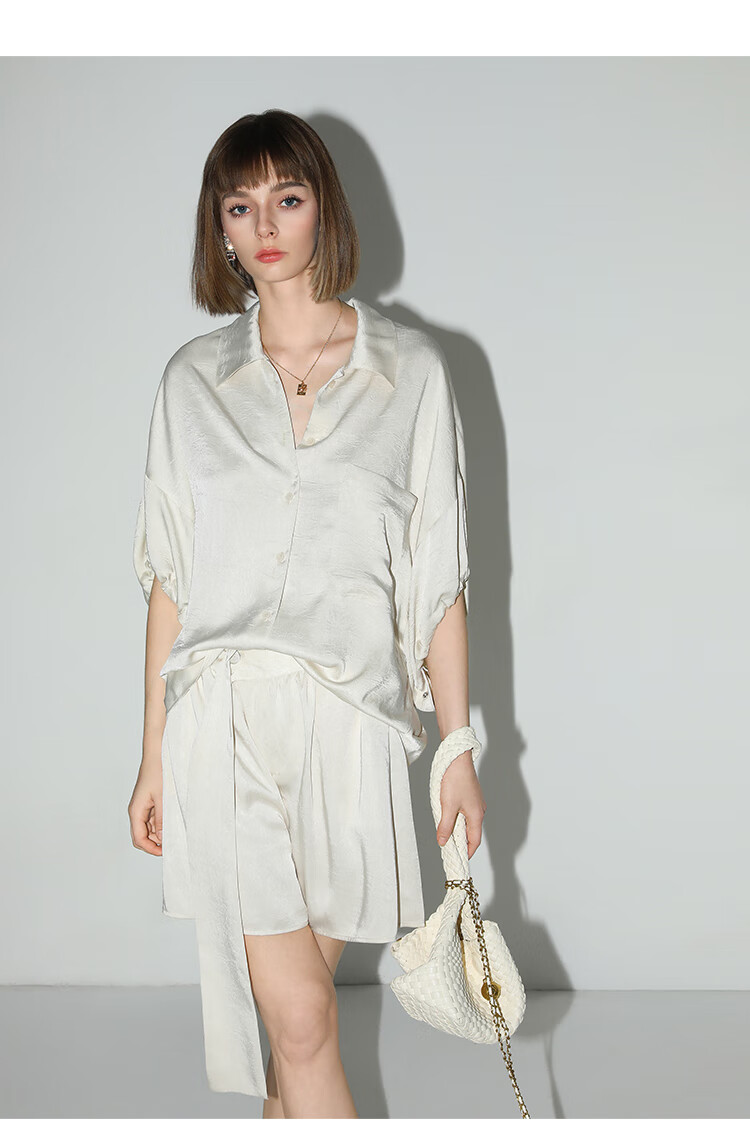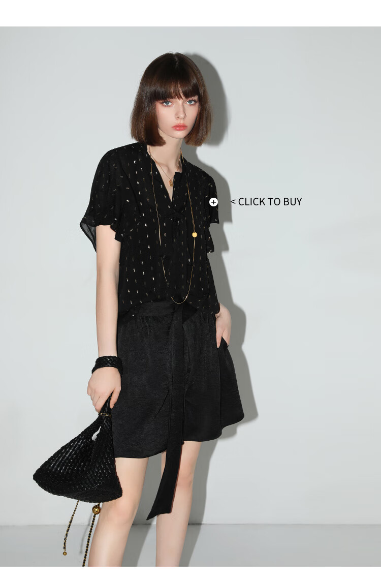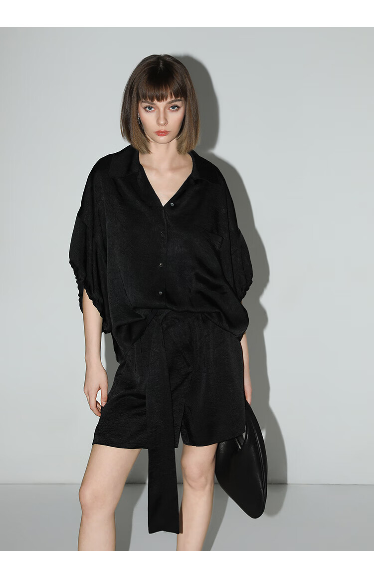 【限时秒杀】COCOBELLA丝光质感褶皱缎面裙裤夏设计感飘带通勤短裤SO3001