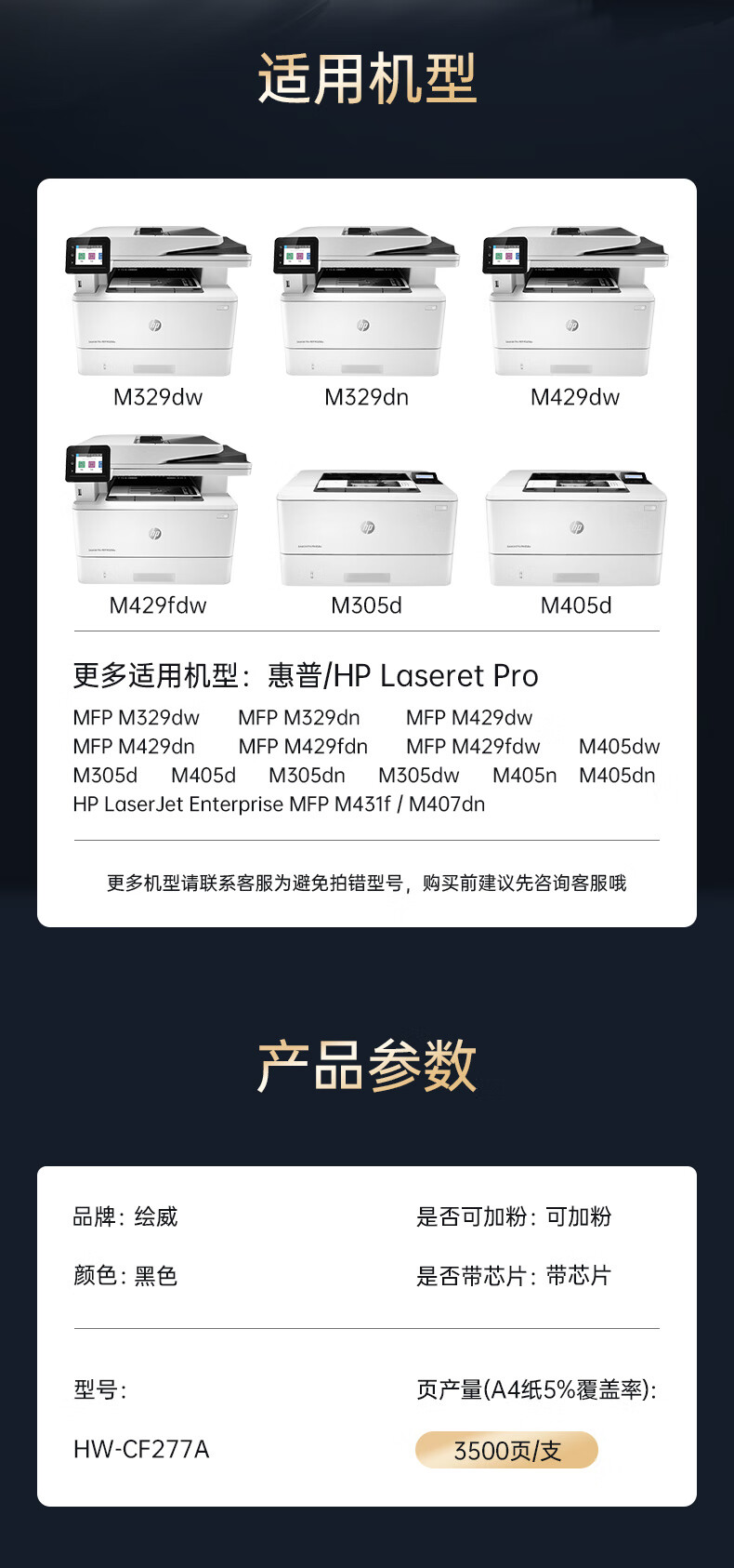 绘威臻享版77a硒鼓 cf277a硒鼓适用惠普m329dw硒鼓m405d m429dw 305dn 329dn 429dn 405dw m429fdw硒鼓墨盒带芯片