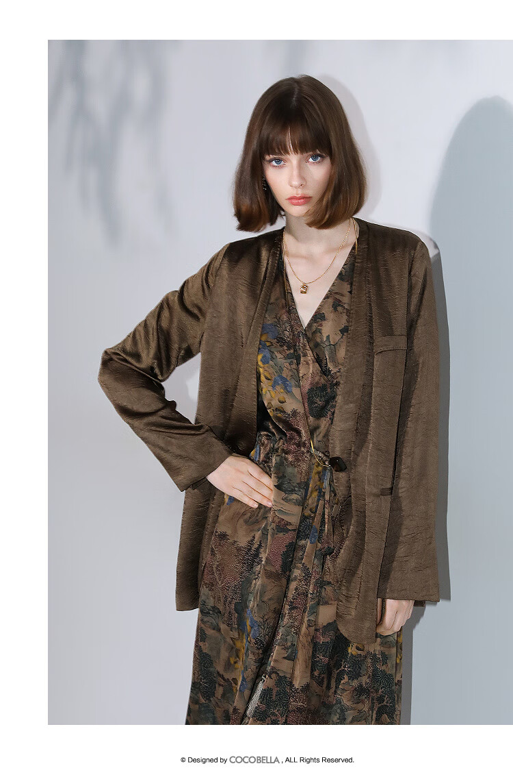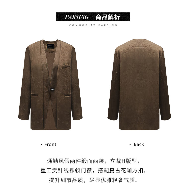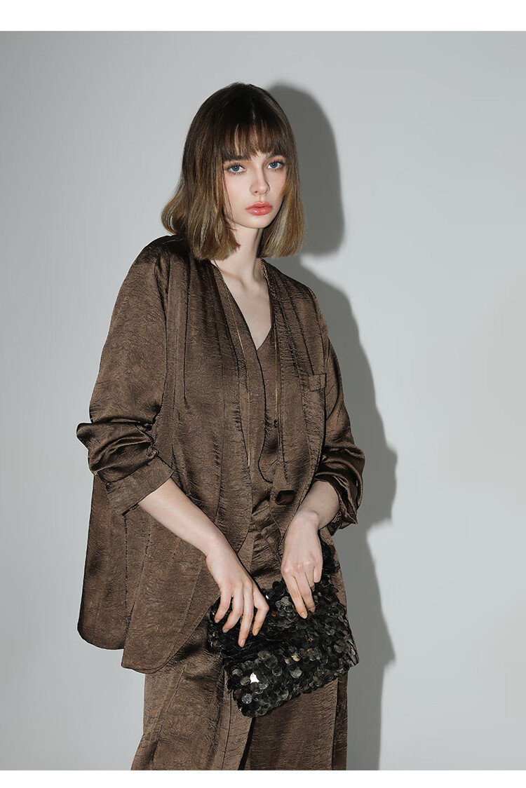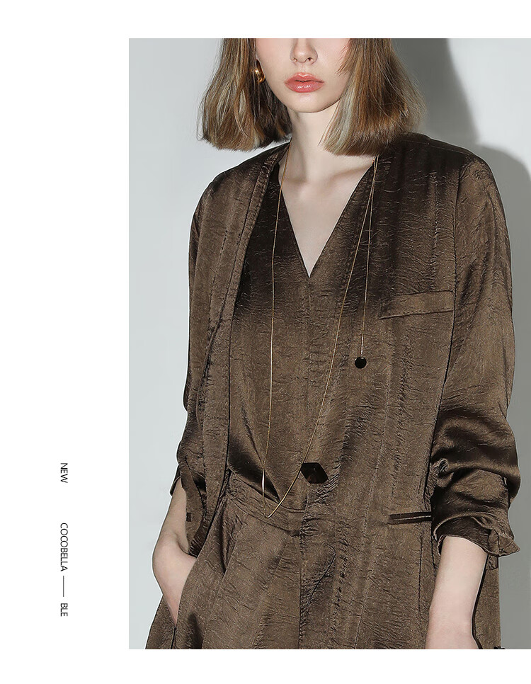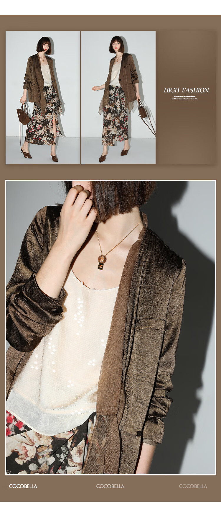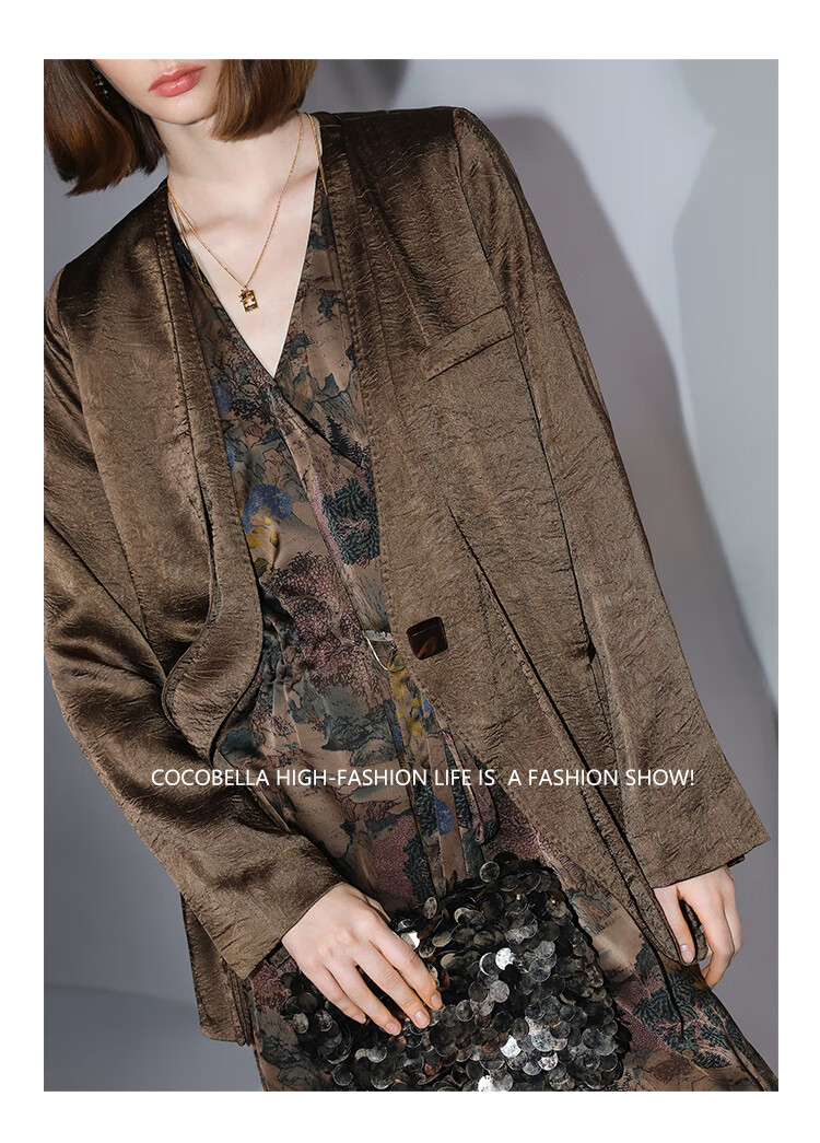 COCOBELLA静奢风贡针假两件肌理缎面西装女质感通勤外套SI0006-4