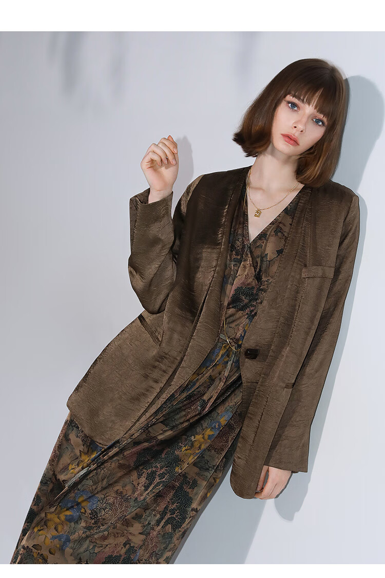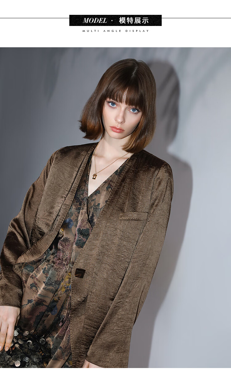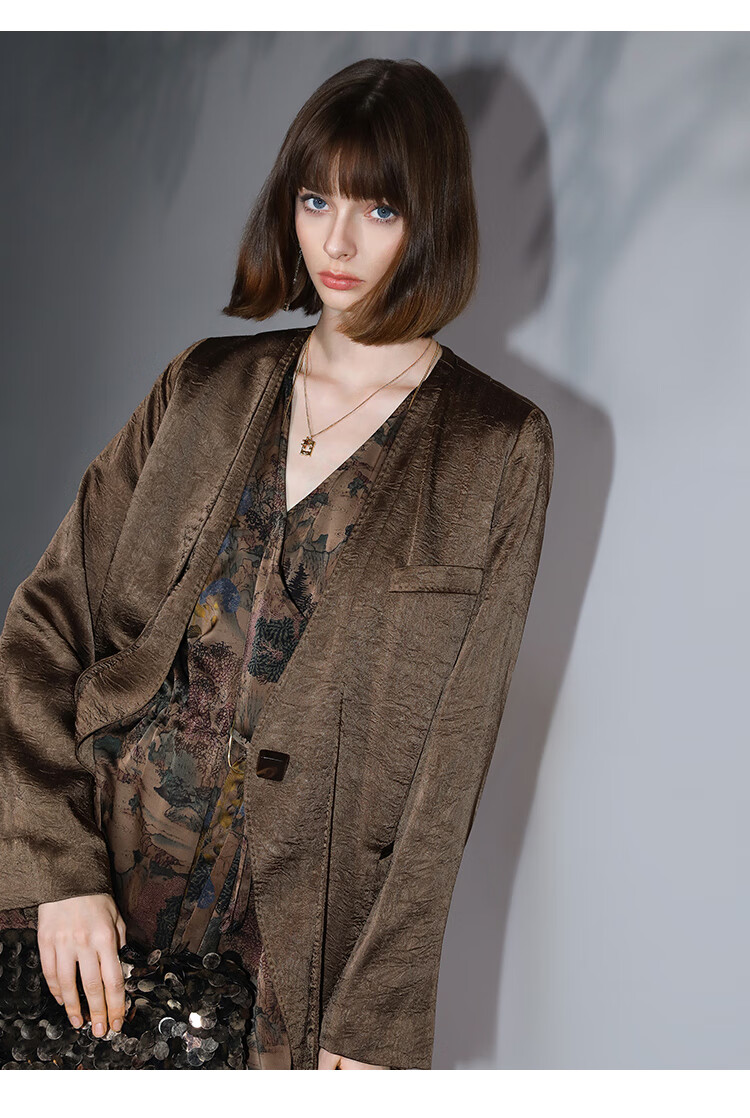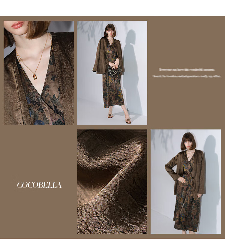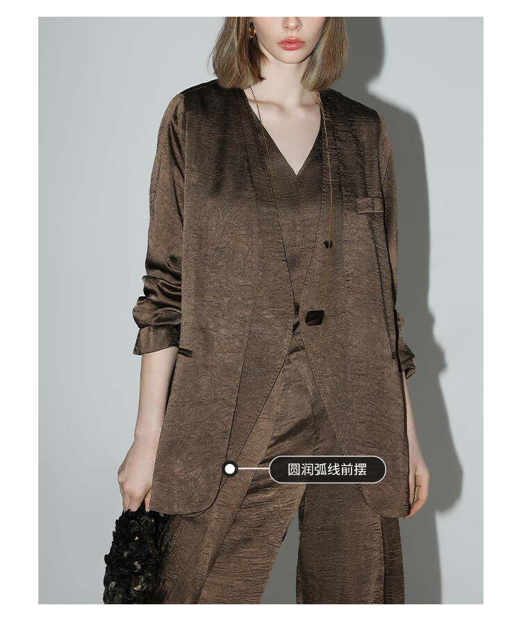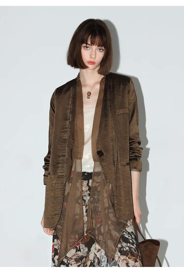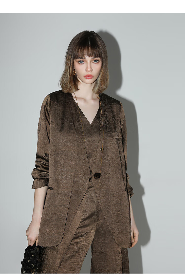 COCOBELLA静奢风贡针假两件肌理缎面西装女质感通勤外套SI0006-4