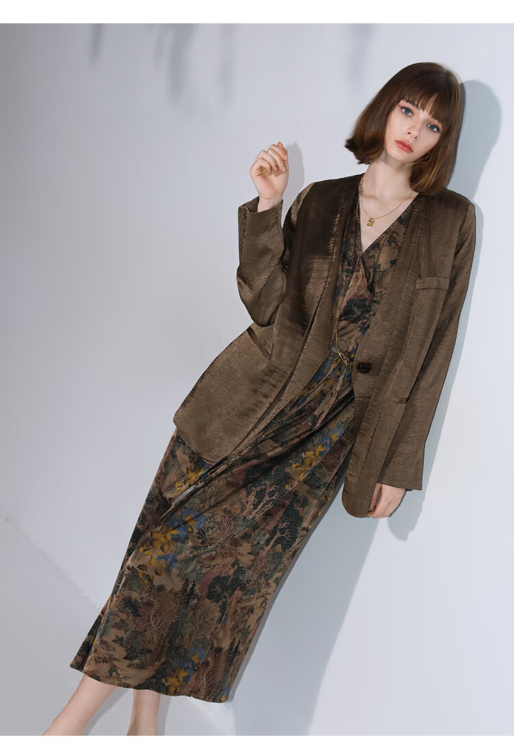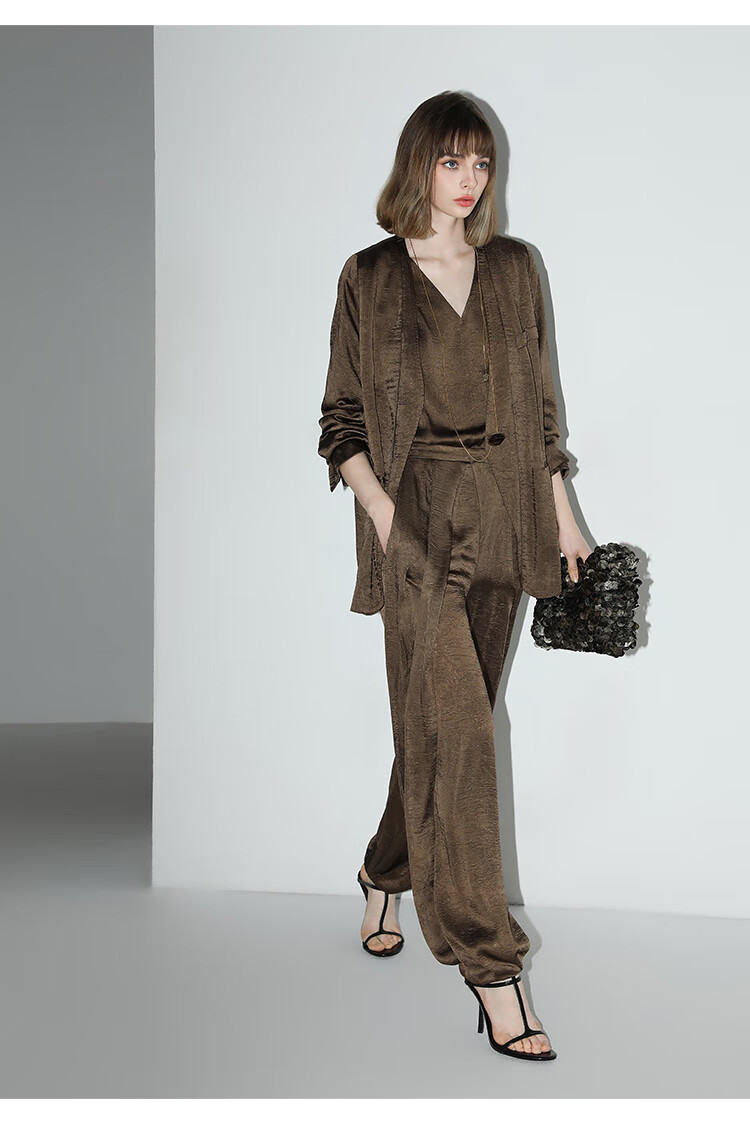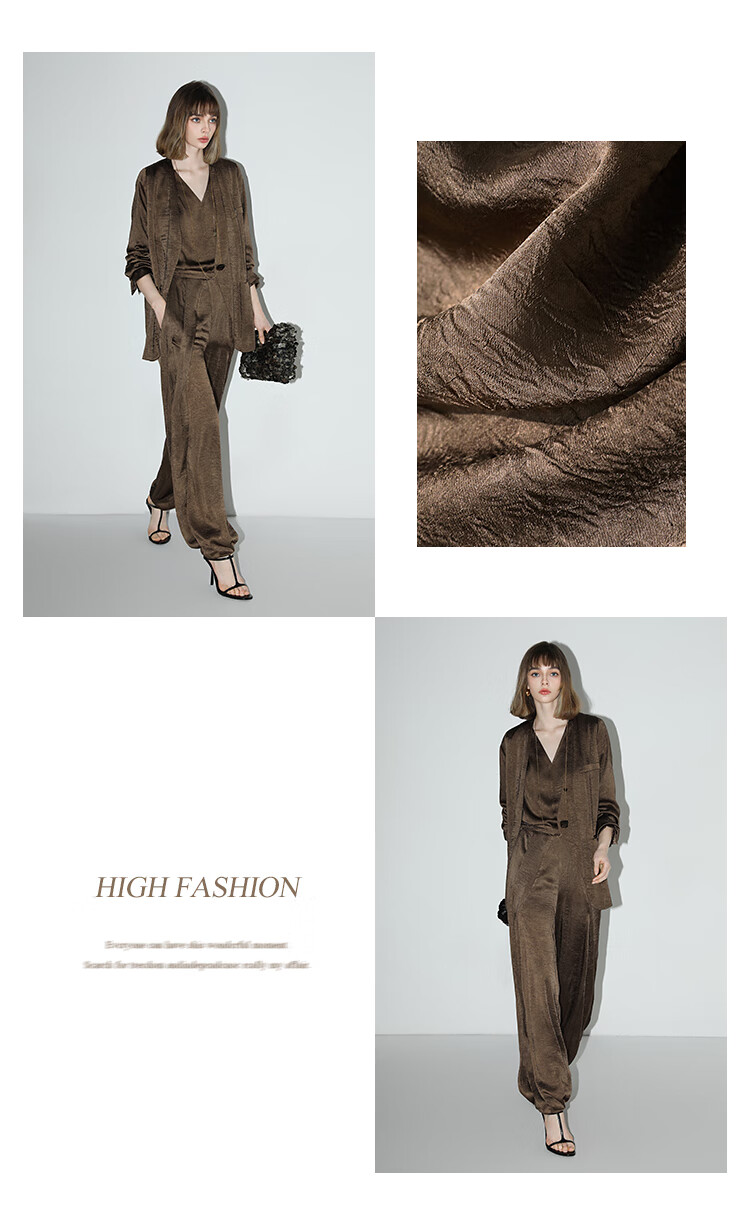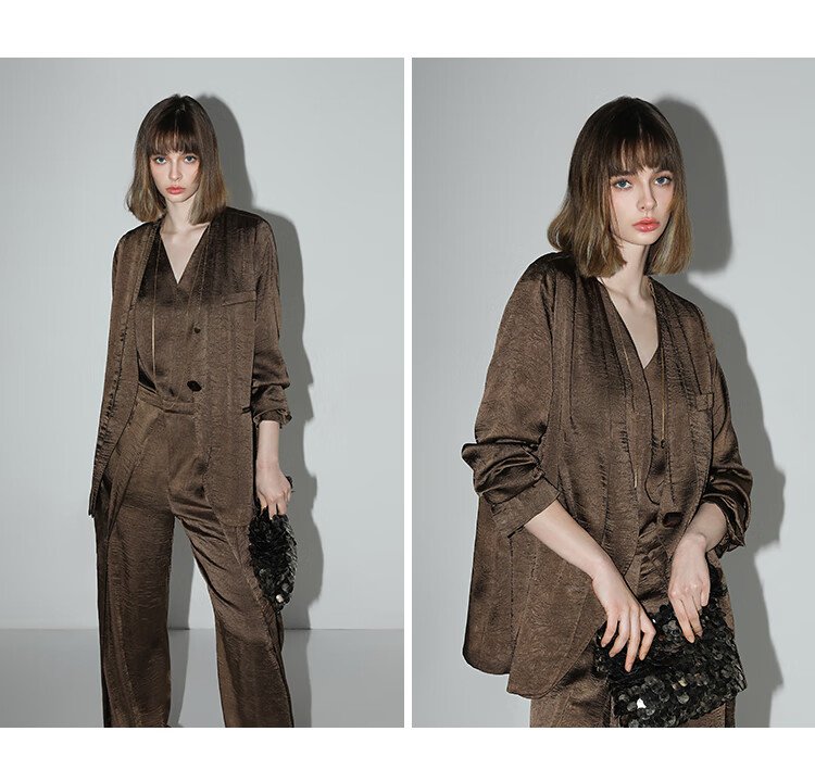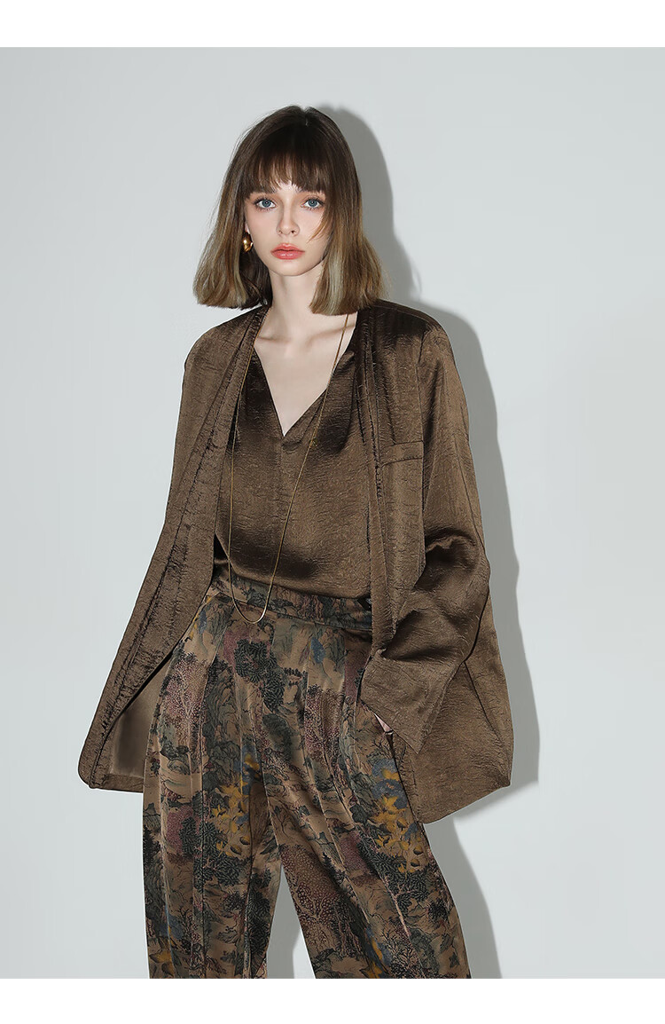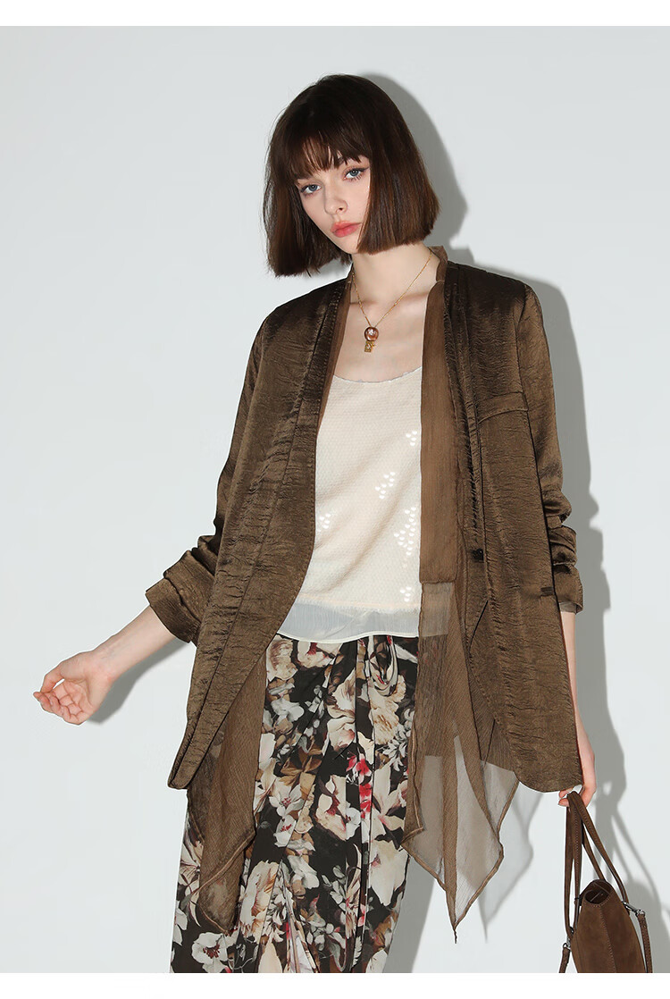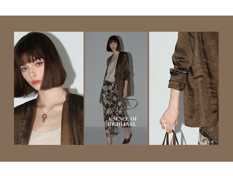 COCOBELLA静奢风贡针假两件肌理缎面西装女质感通勤外套SI0006-4