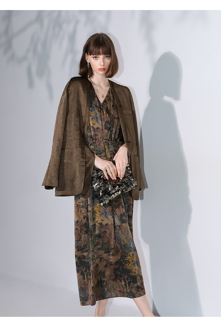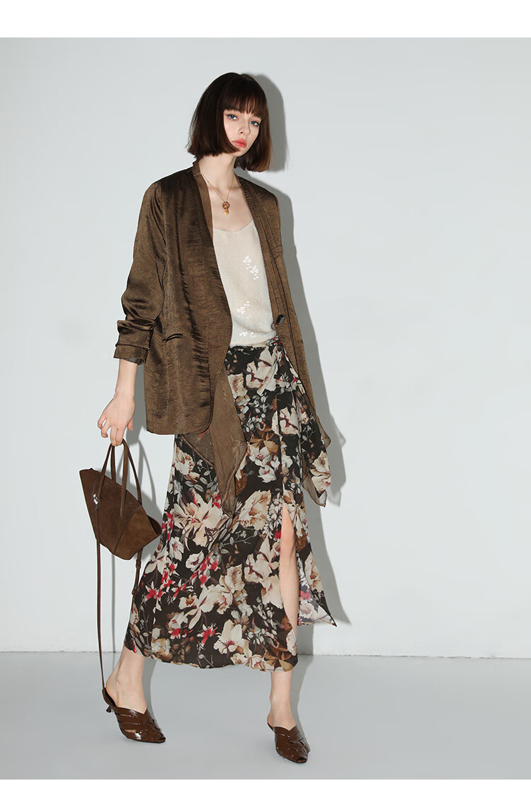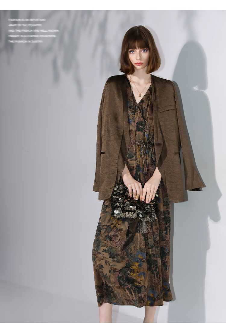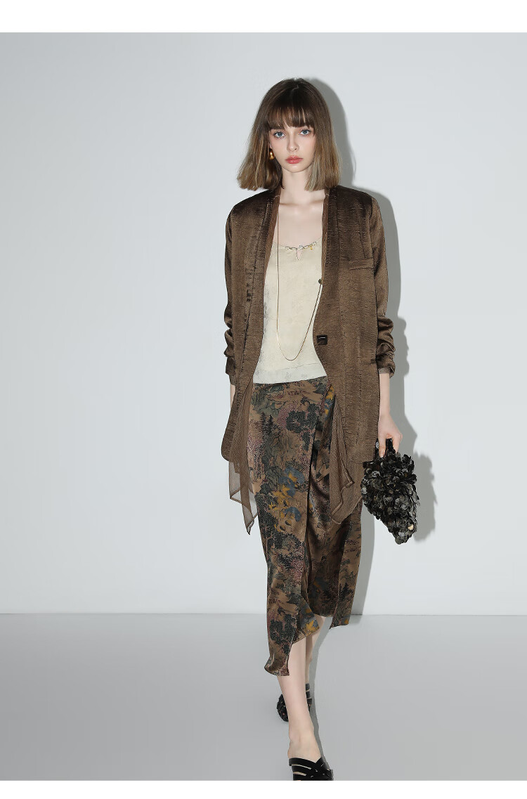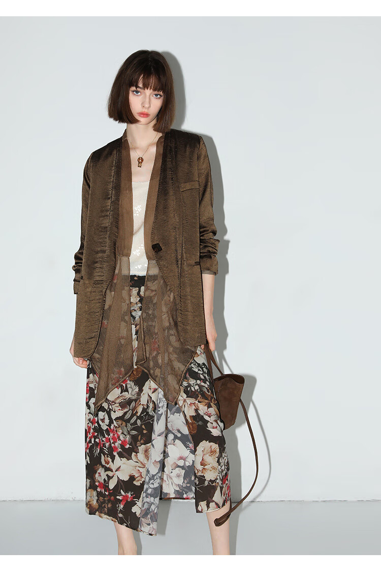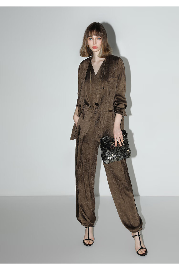 COCOBELLA静奢风贡针假两件肌理缎面西装女质感通勤外套SI0006-4