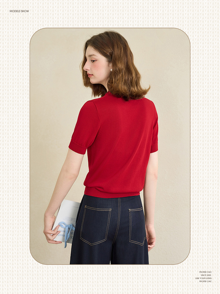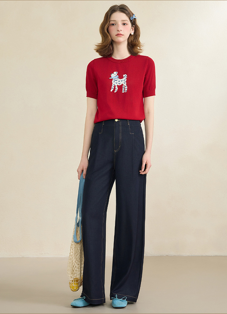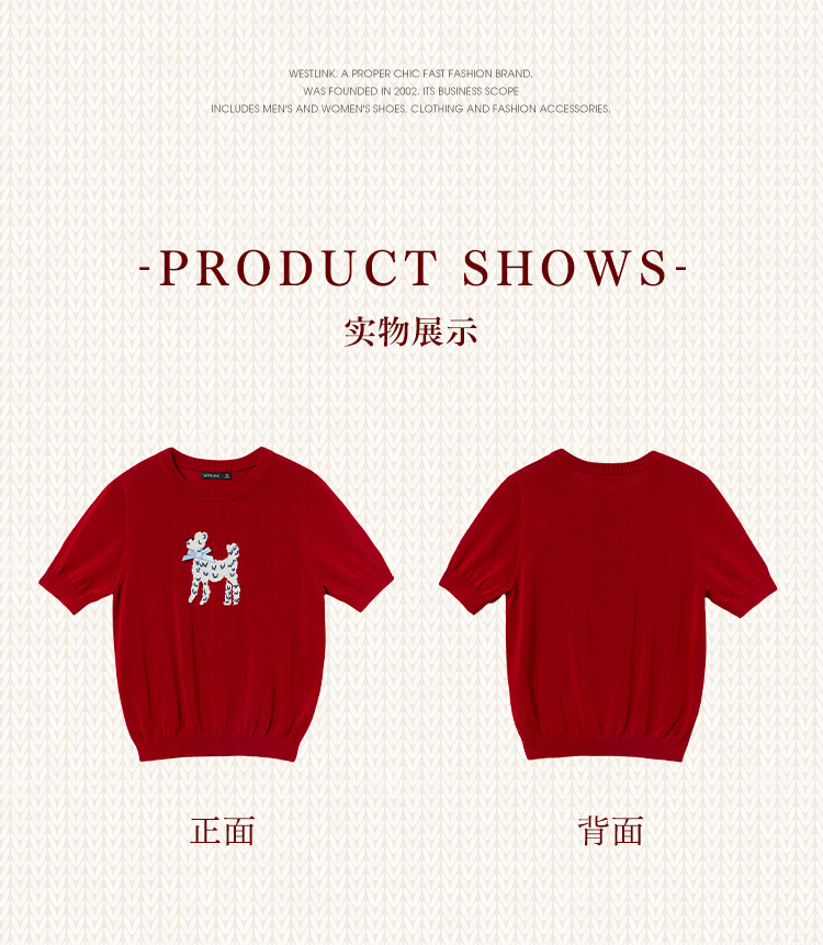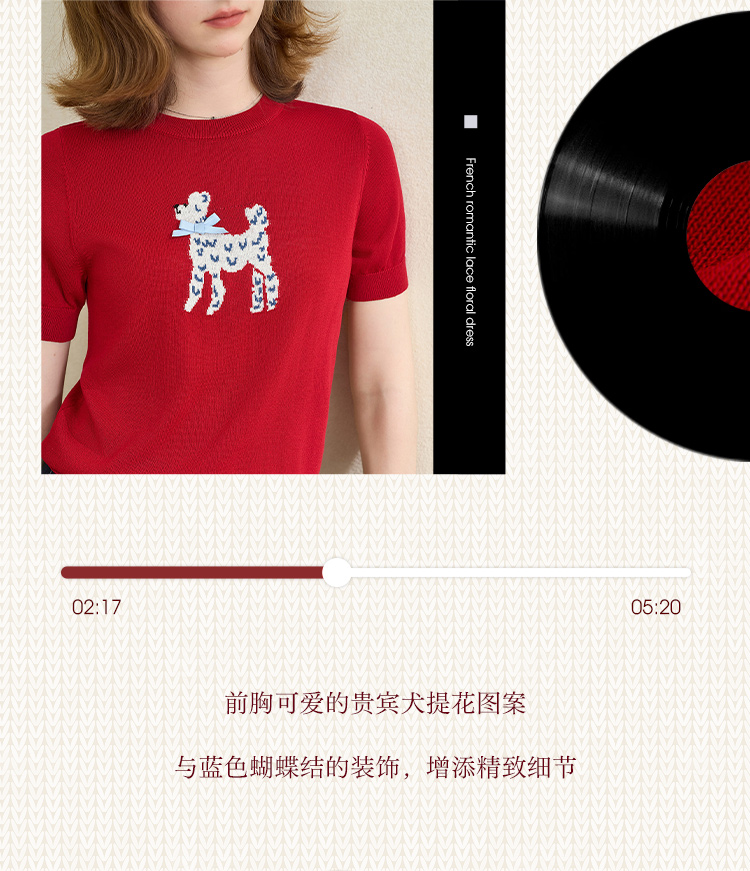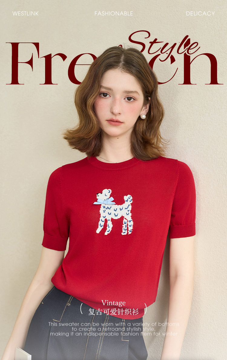 【限时秒杀】甜美可爱小狗图案短款针织衫女夏季简约百搭短袖上衣V0051035