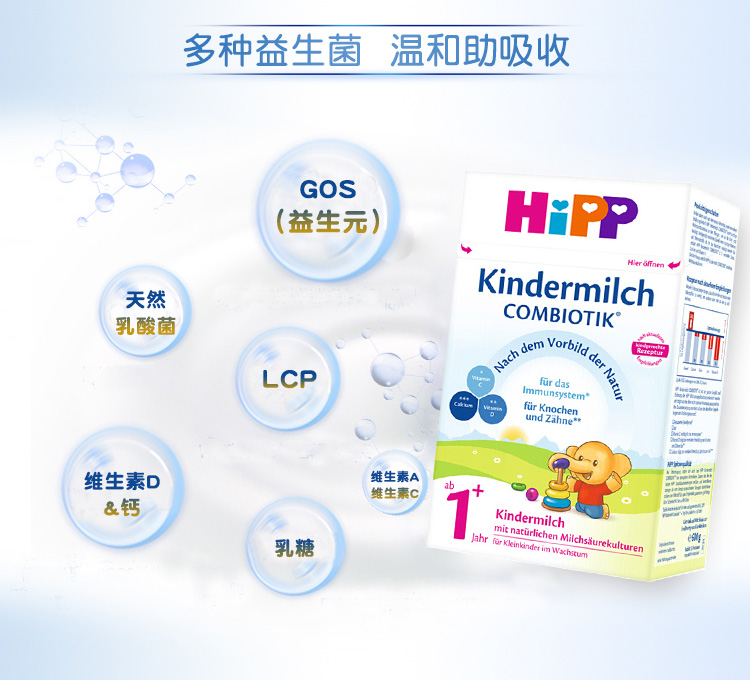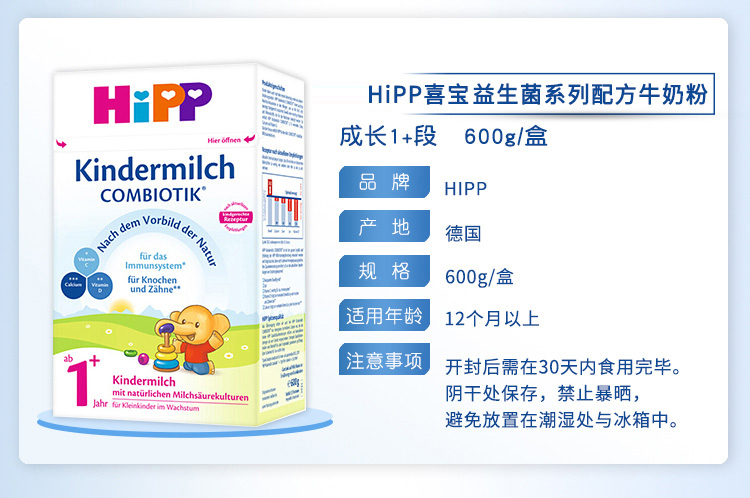 德国Hipp喜宝益生元益生菌婴幼儿奶粉1+段600g1岁以上