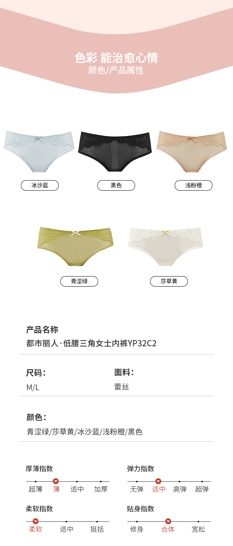 都市丽人薄透丝滑系列蕾丝低腰三角内裤YP32C2