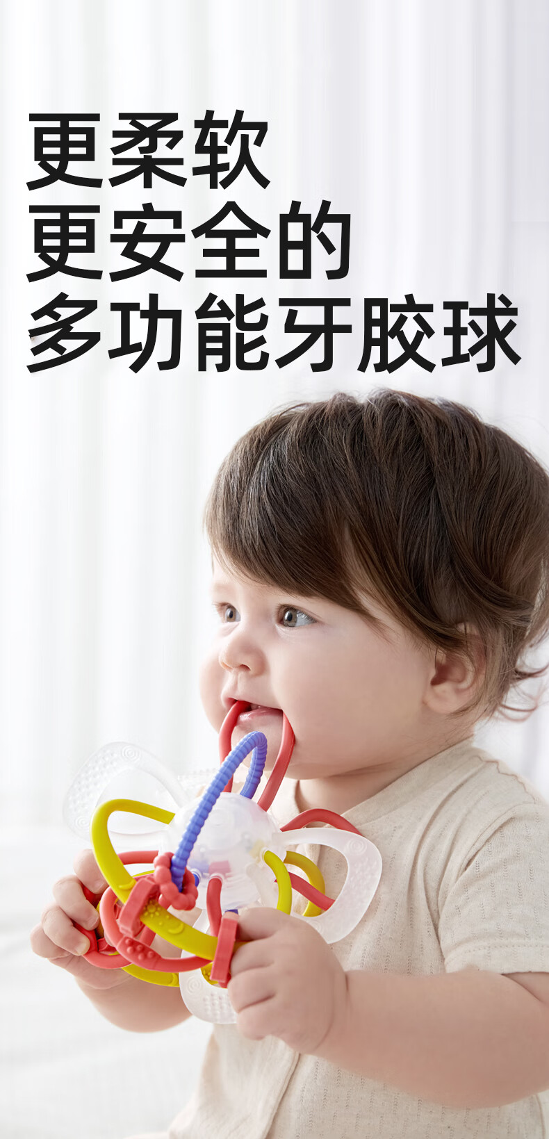 babycare 宝宝牙胶磨牙咬咬胶 婴儿玩具曼哈顿手抓球星空手抓球杜巴利红 100039166025