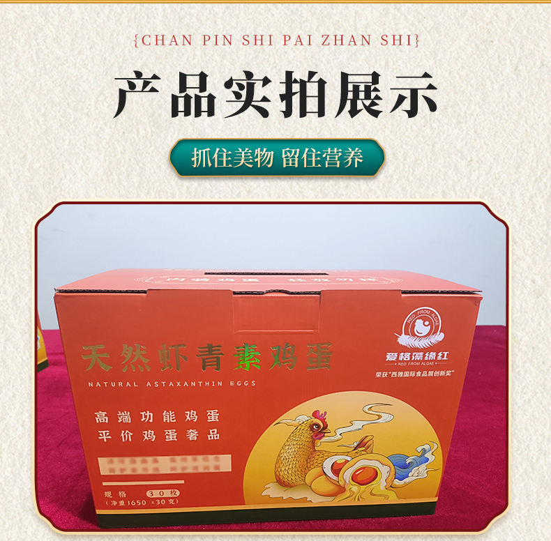 顺丰包邮【自营】爱格藻缘红虾青素鸡蛋 天然虾青素鸡蛋