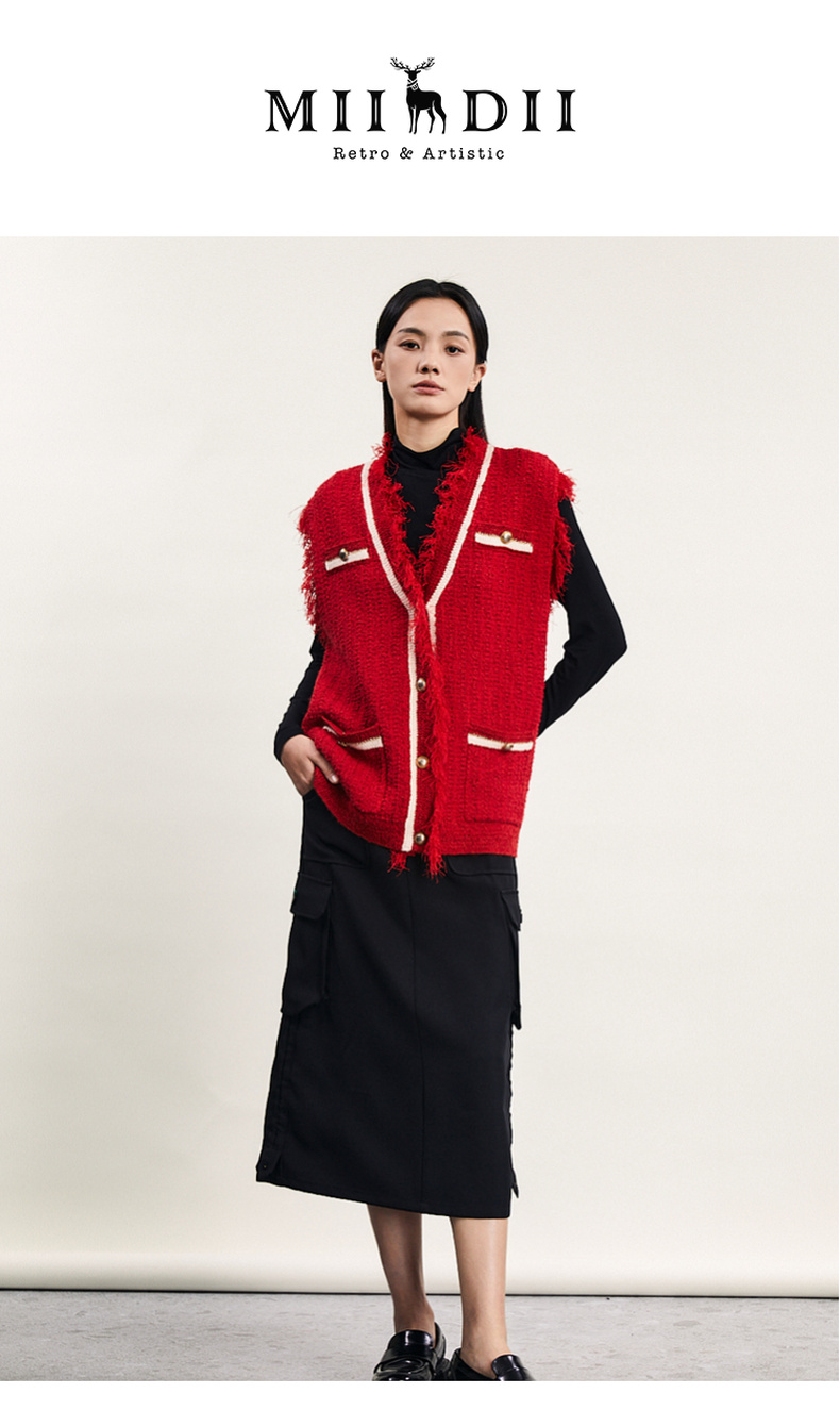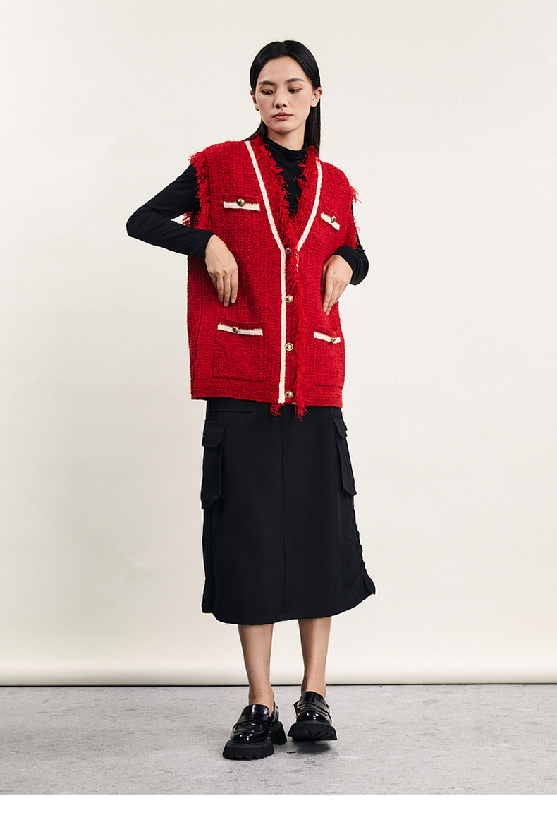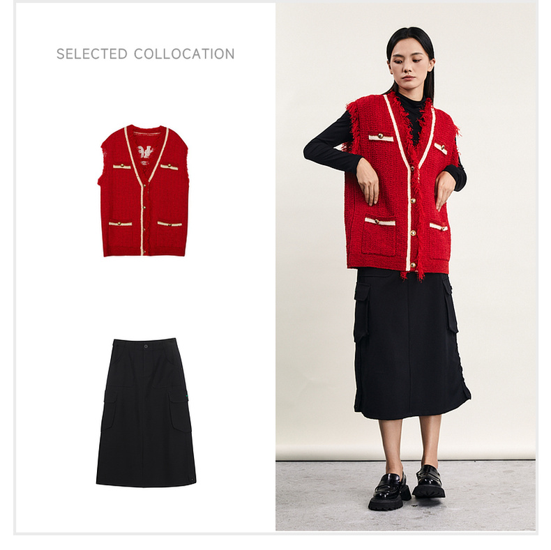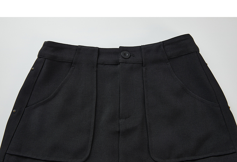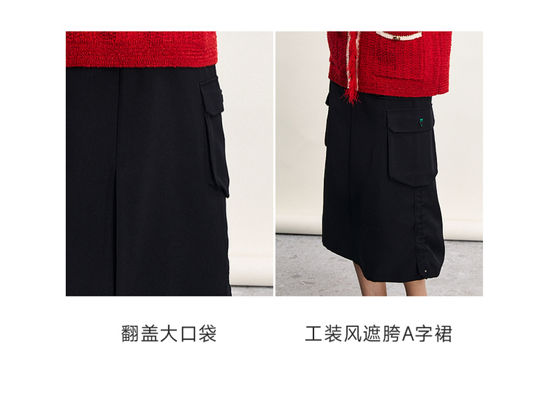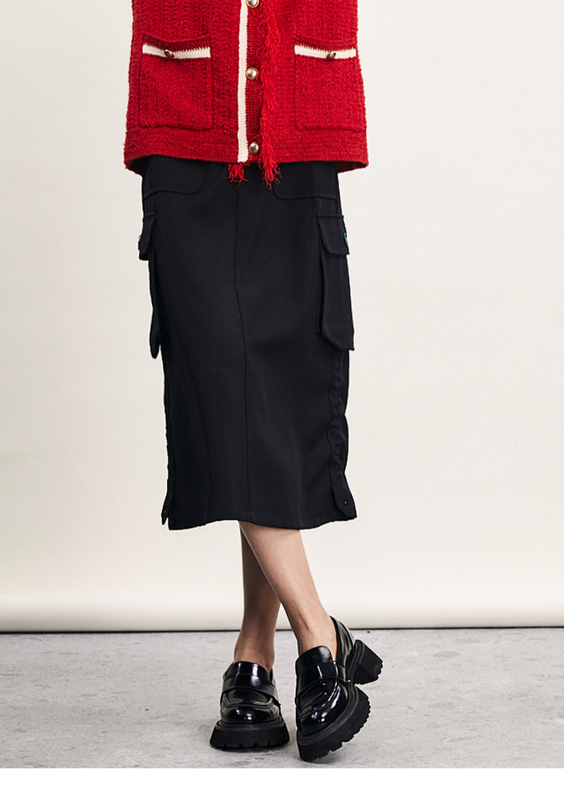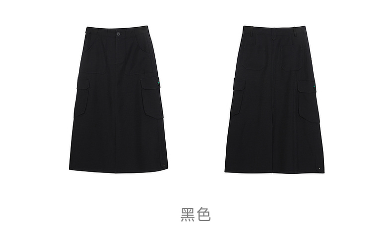 谜底黑色半身裙2024春新款工装风大口袋高腰百搭中长裙241MB0118