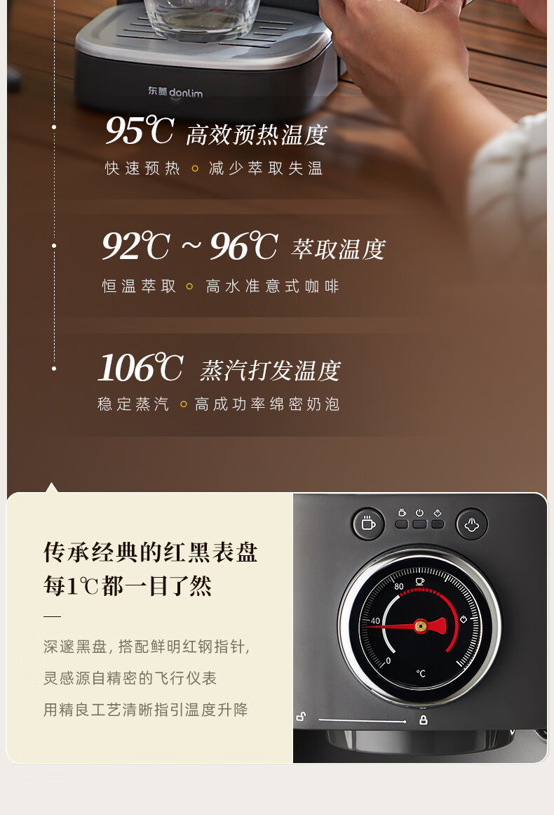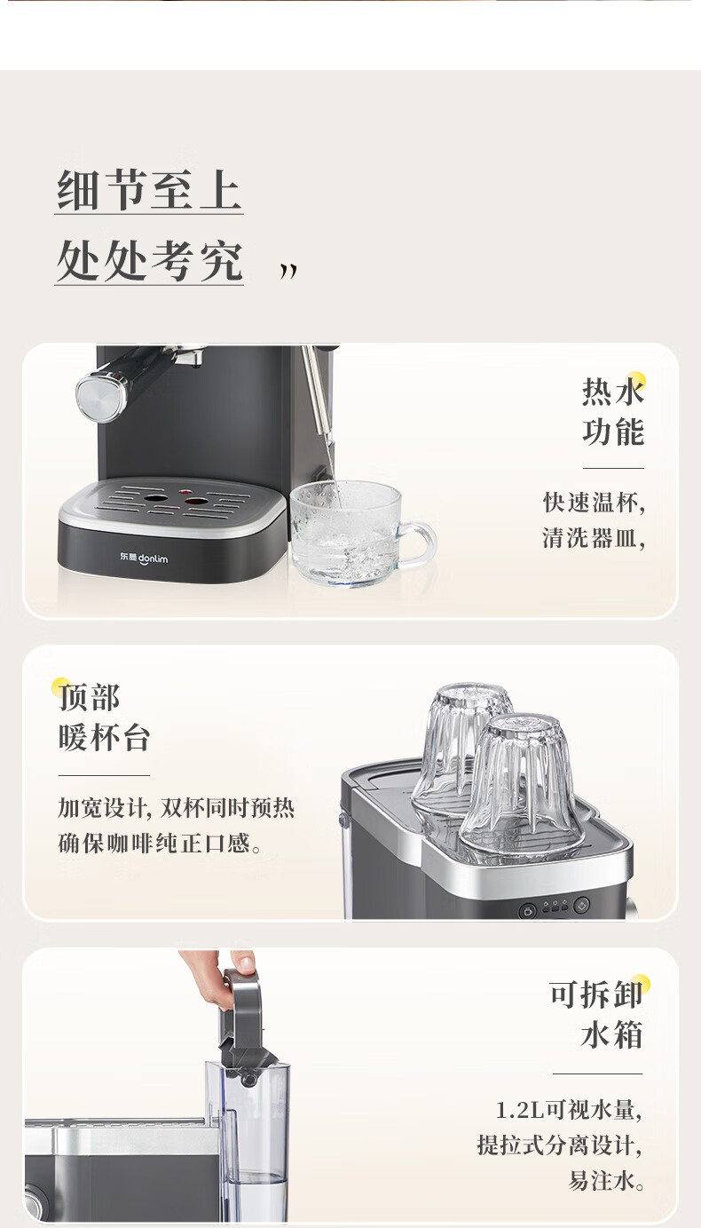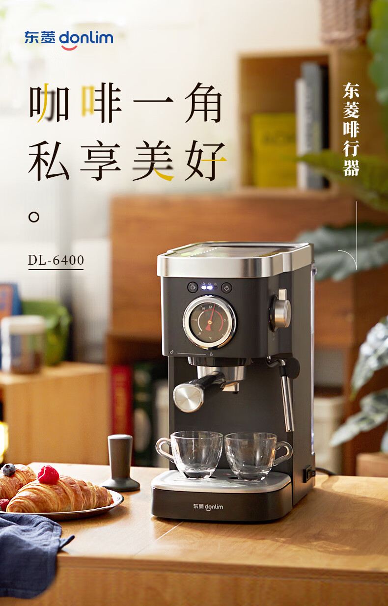 【非质量问题不支持7天无理由售后,介意慎拍!】东菱(Donlim)咖啡机 家用 意式半自动 20bar高压萃取 蒸汽打奶泡 操作简单 DL-6400