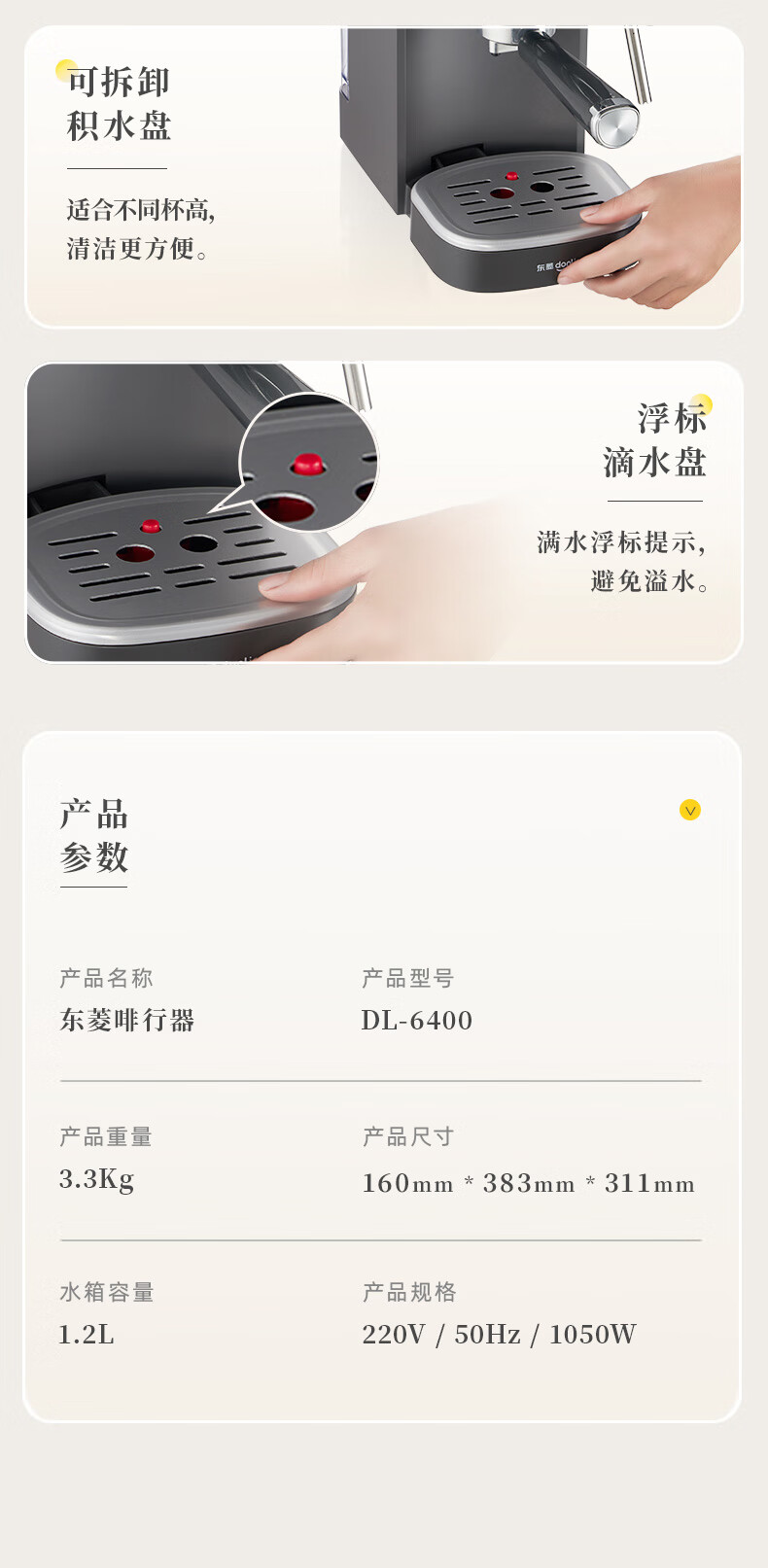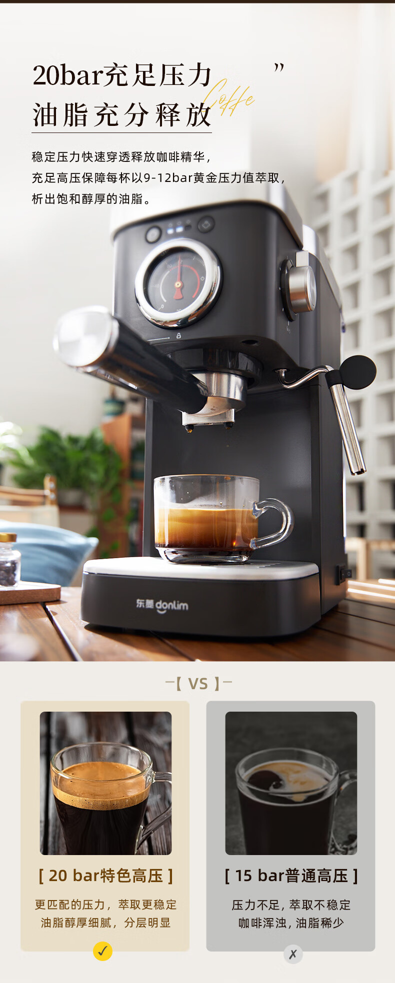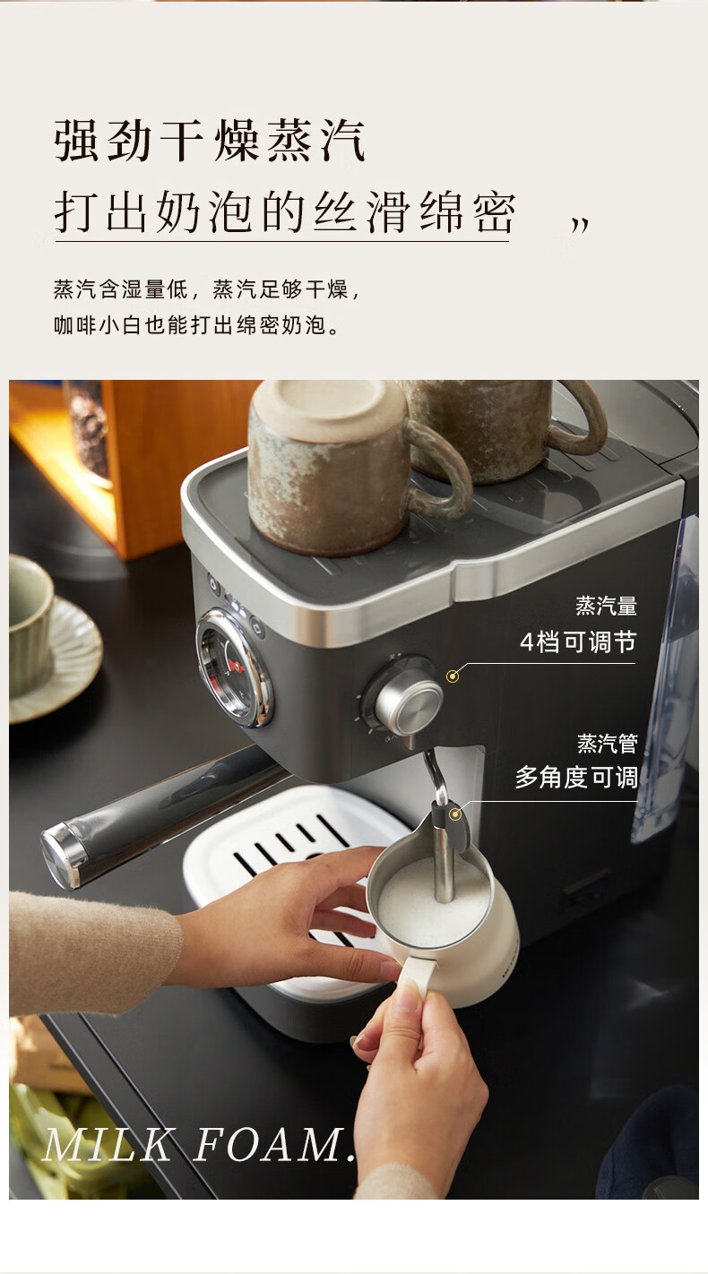 【非质量问题不支持7天无理由售后,介意慎拍!】东菱(Donlim)咖啡机 家用 意式半自动 20bar高压萃取 蒸汽打奶泡 操作简单 DL-6400