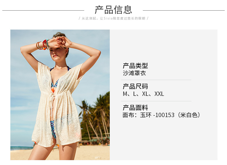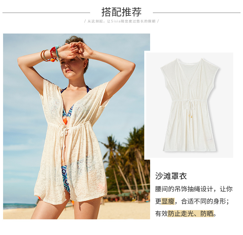 sisia比基尼罩衫海滩度假防晒沙滩外套腰部抽绳设计显瘦82W06S26