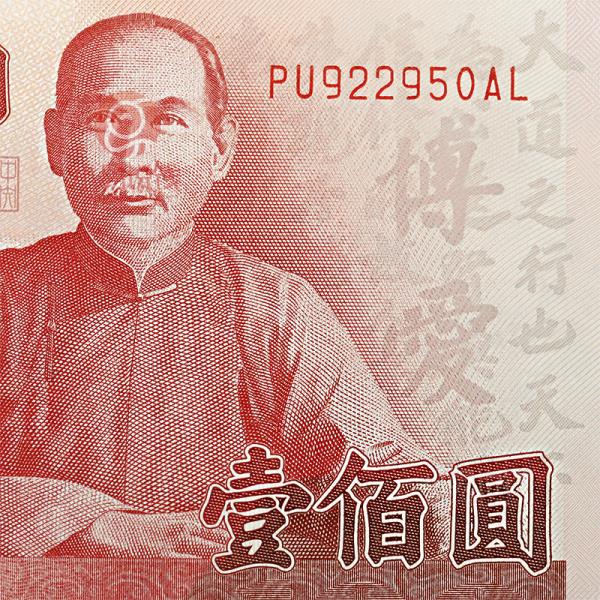 辛亥百年纪念钞,台湾于2011年发行,发行量4亿张,正面主图为孙中山像、早年行医雕像、《礼运大同篇》节选,背面主图为中山楼。