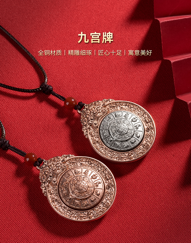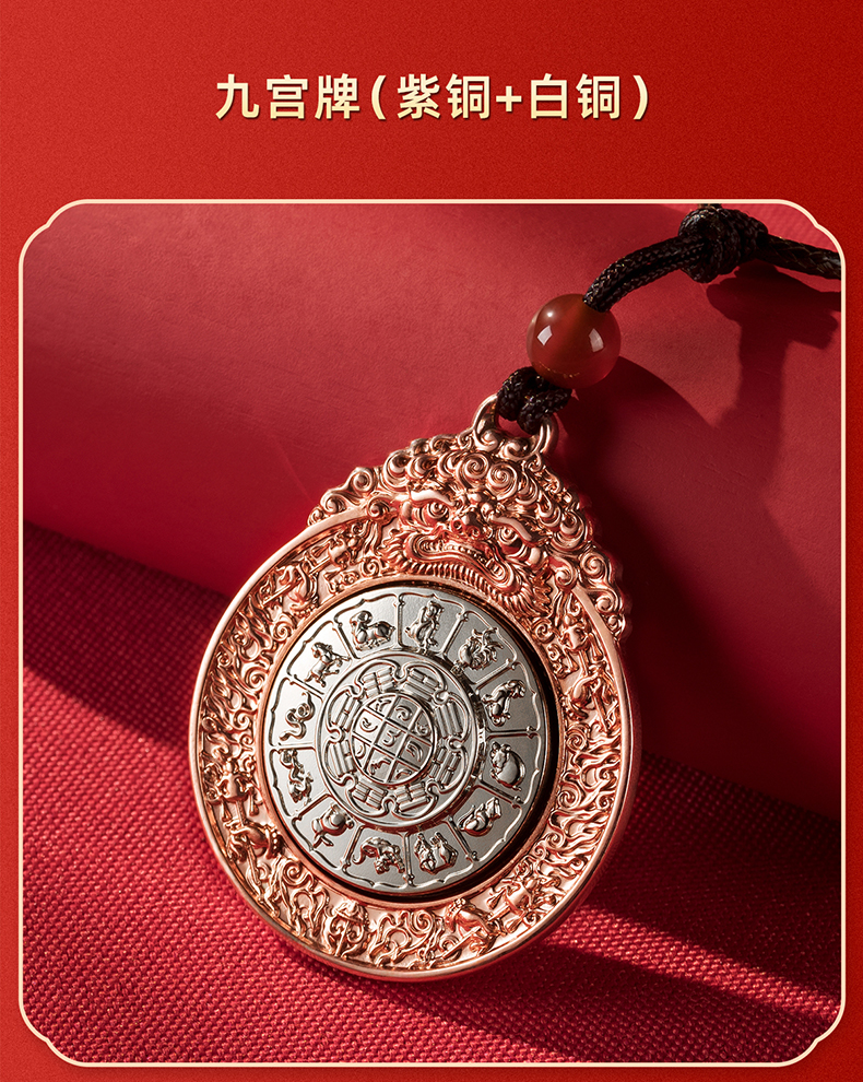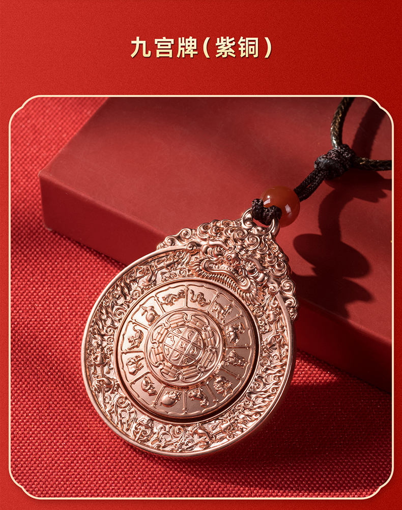 ((紫铜+白铜)10-28下架)铜师傅《九宫牌》白铜紫铜铜挂件 家居装饰工艺品吊坠 汽车挂饰