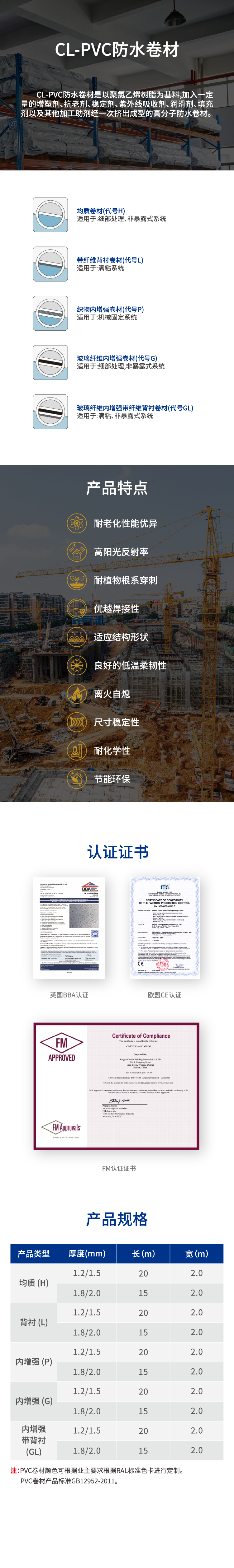 CL-PVC聚氯乙烯防水卷材