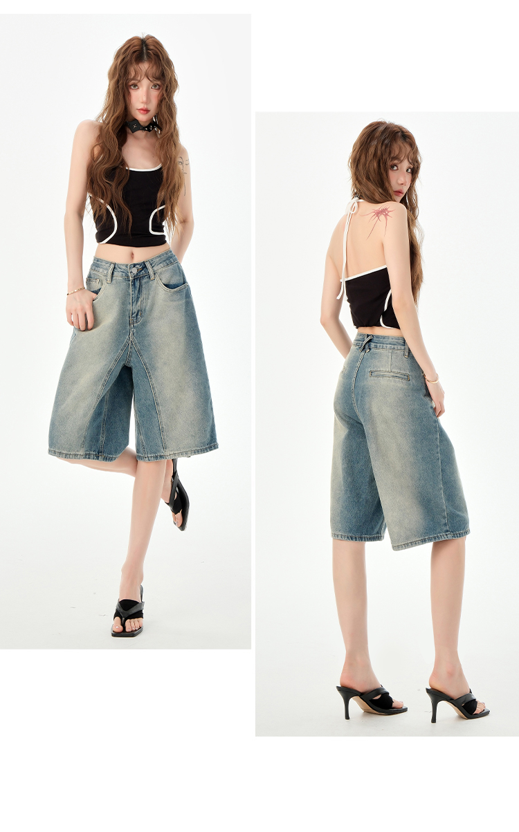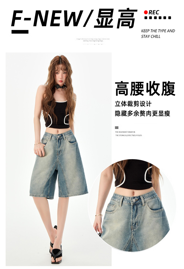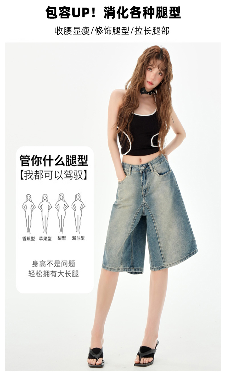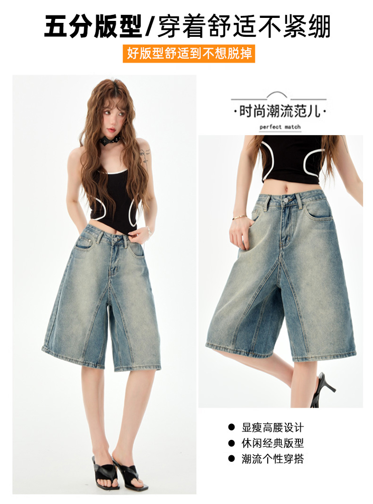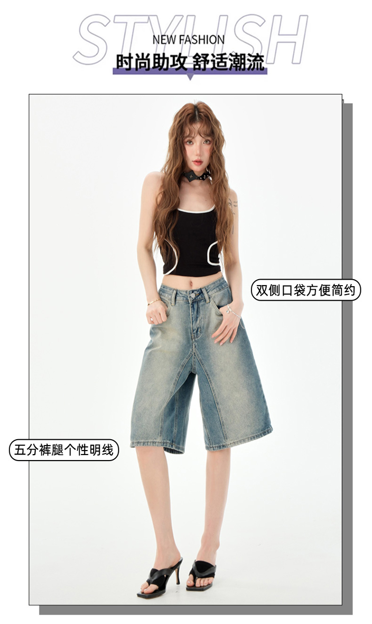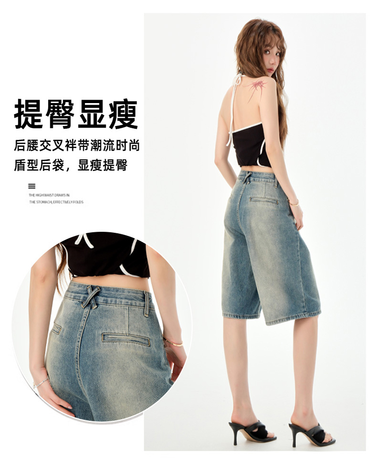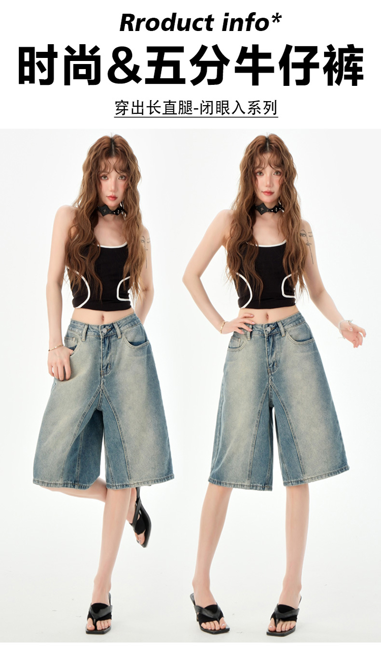罗蒙夏季女士牛仔裤短款五分裤时尚百搭休闲裤子直筒阔腿裤子