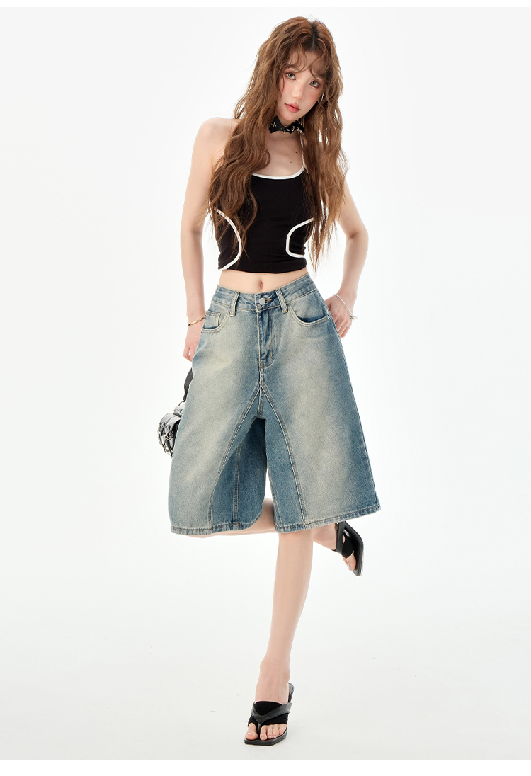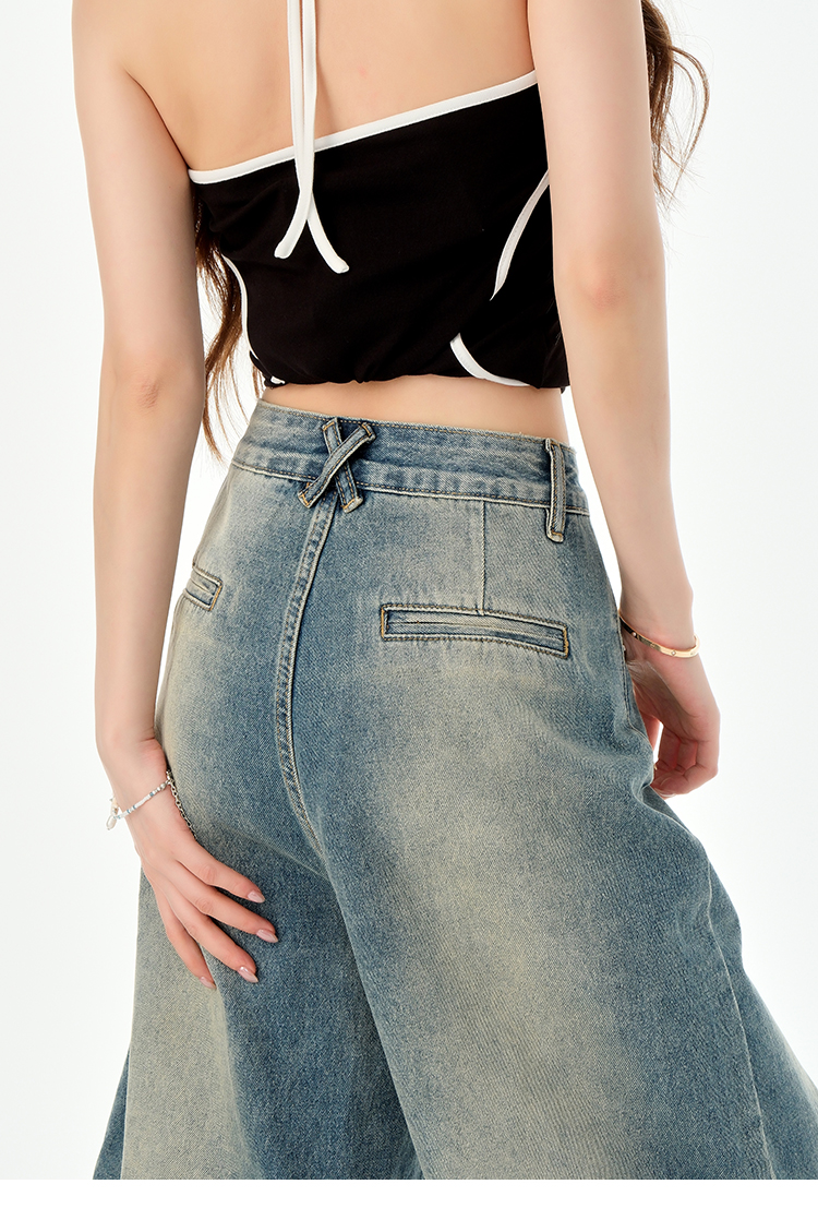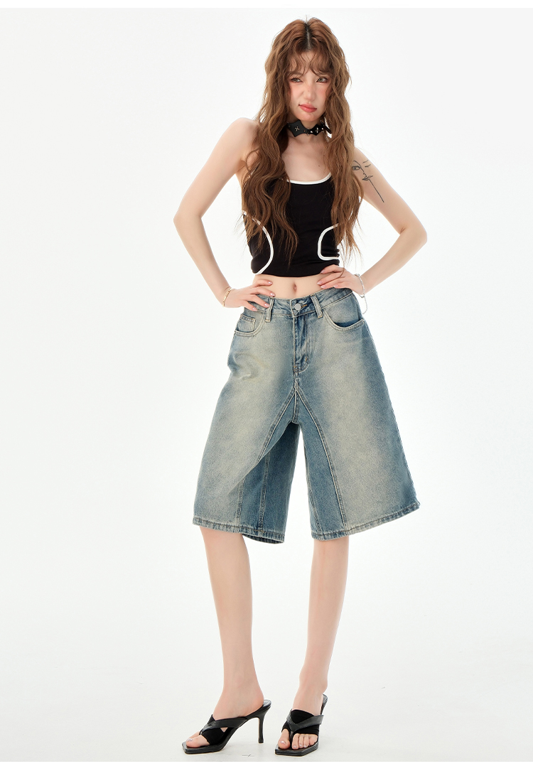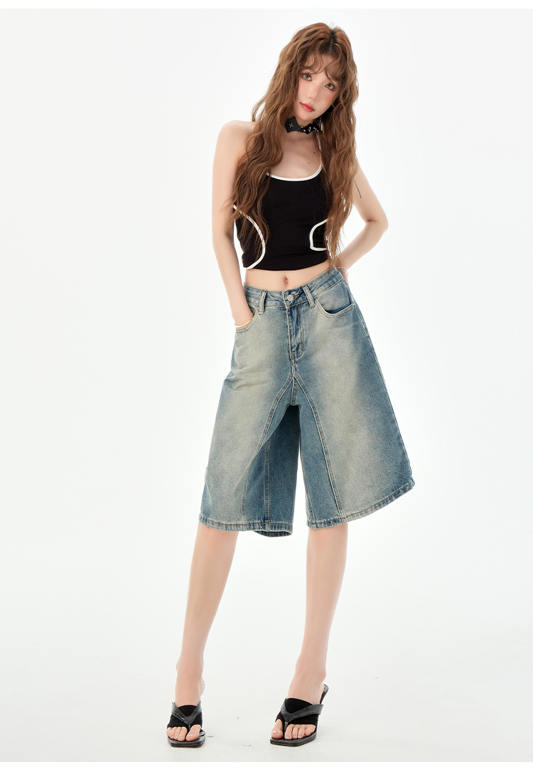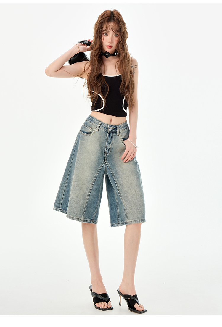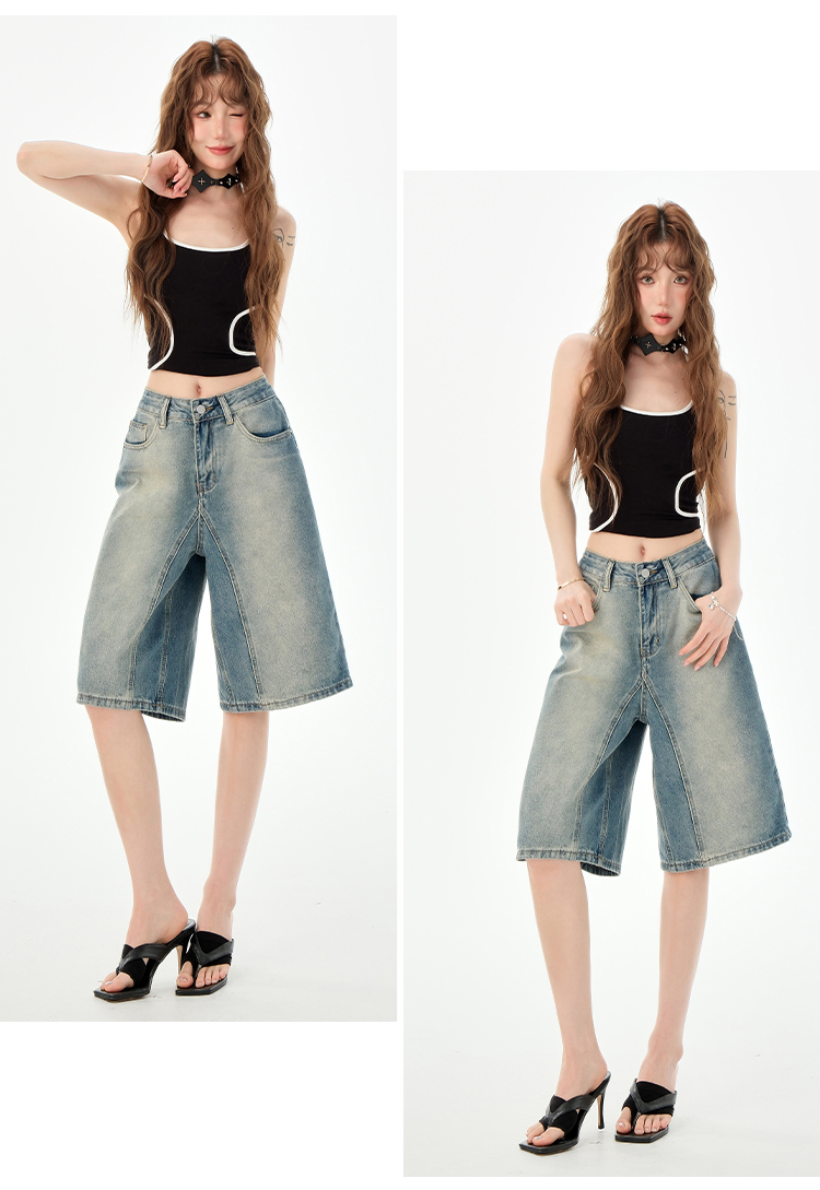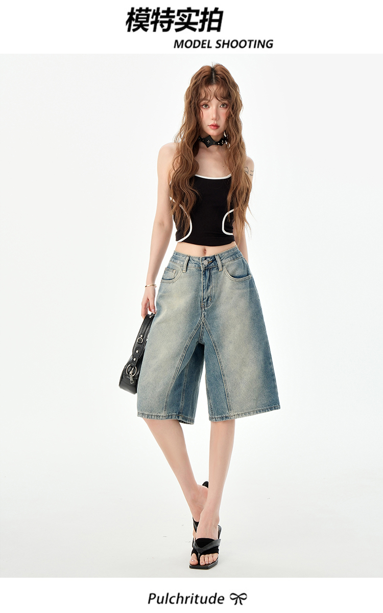 罗蒙夏季女士牛仔裤短款五分裤时尚百搭休闲裤子直筒阔腿裤子
