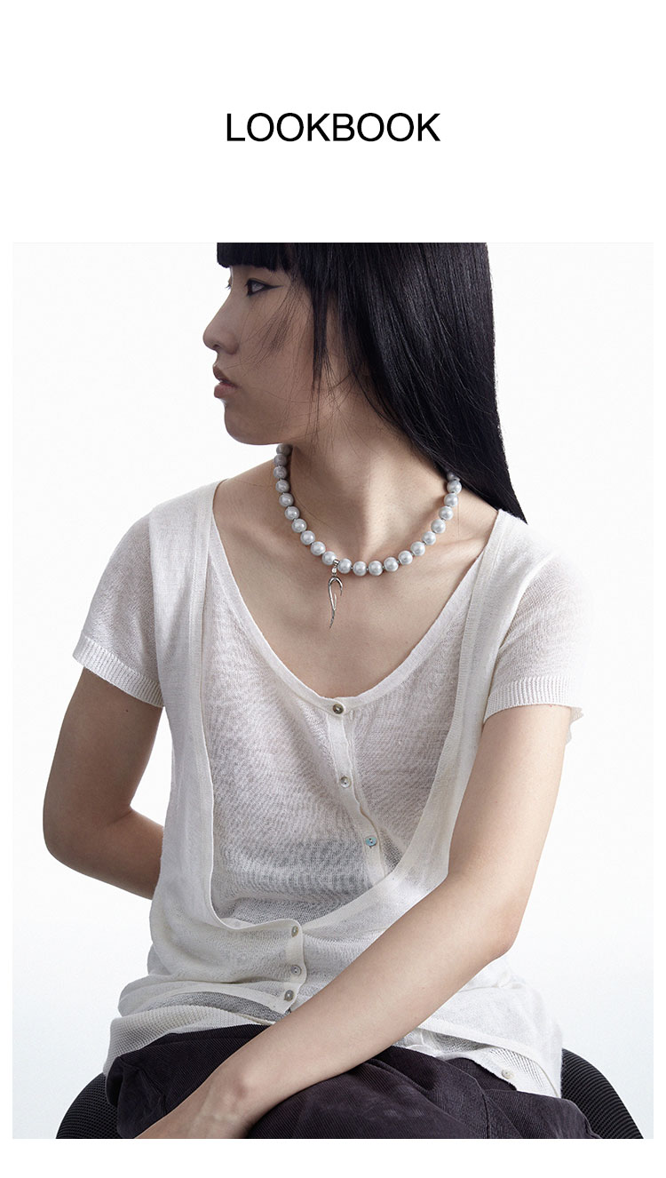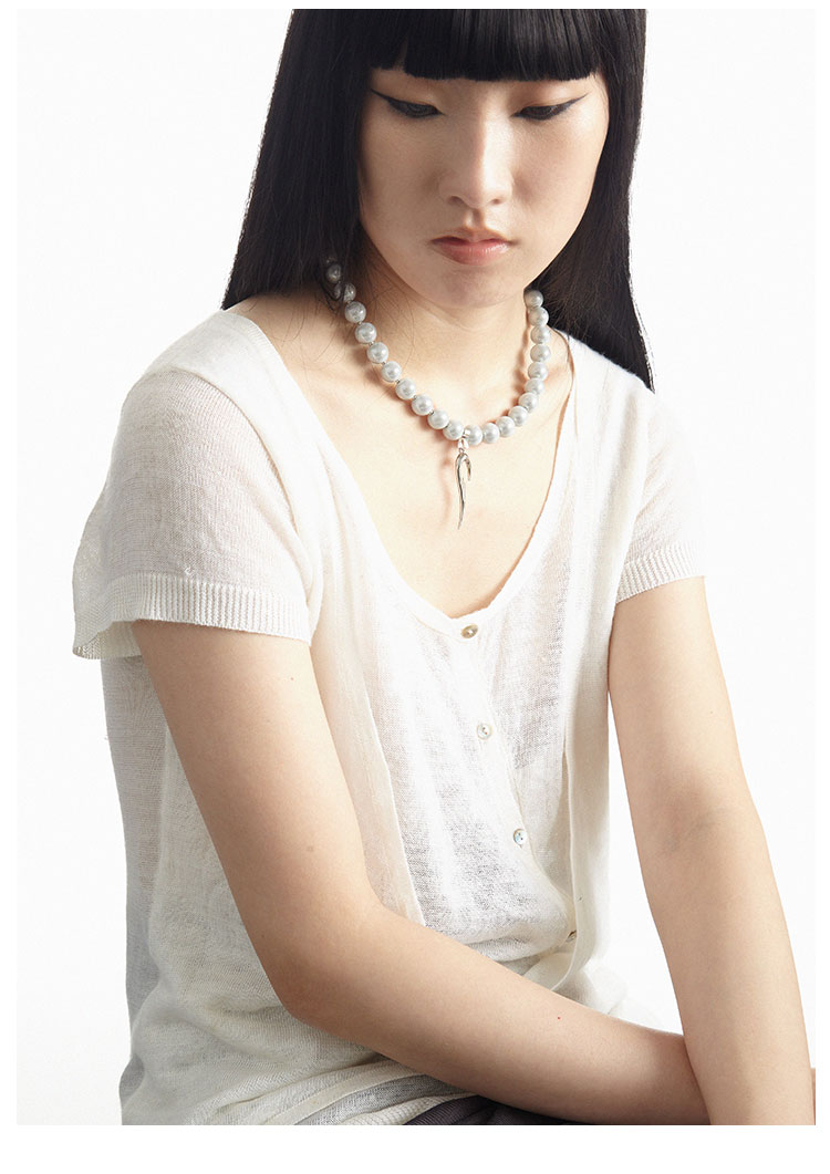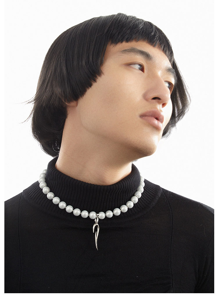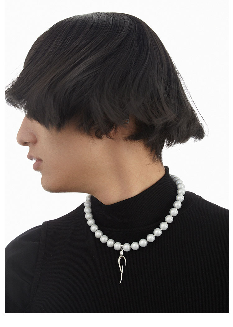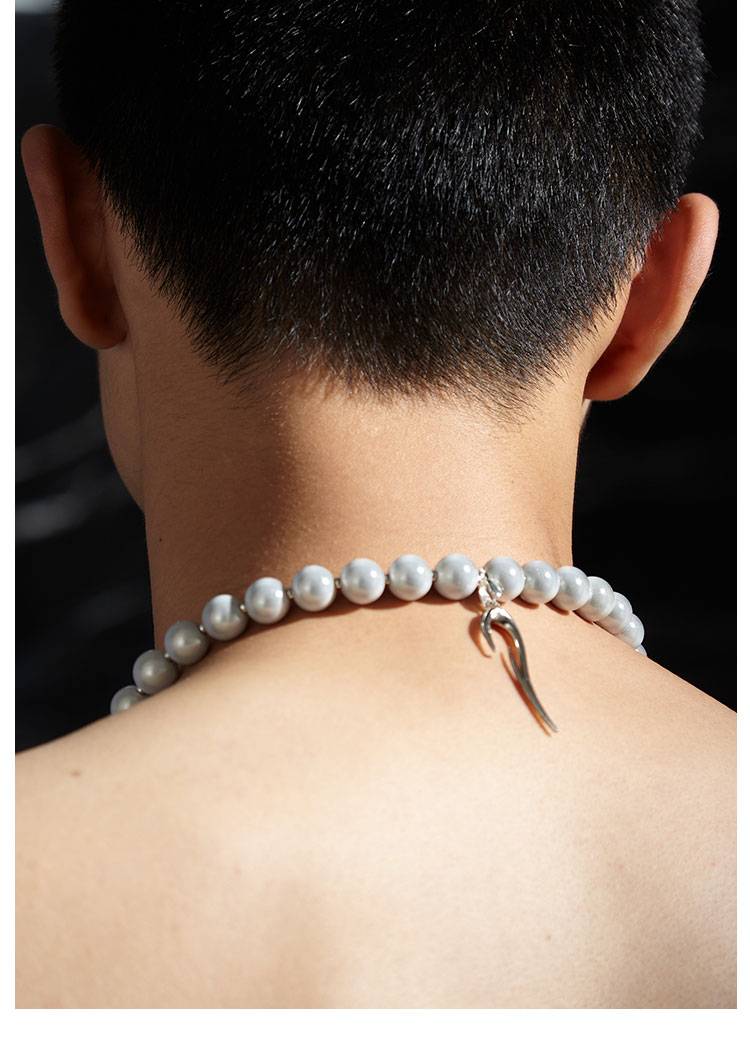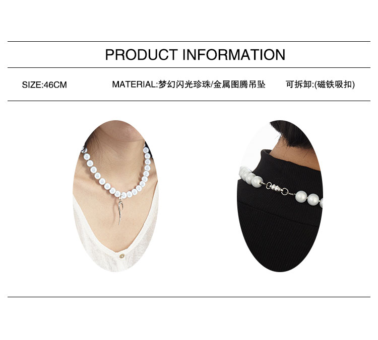 QZC2000 LOGO图腾吊坠梦幻反光珍珠串珠磁铁吸扣项链造型男女饰品