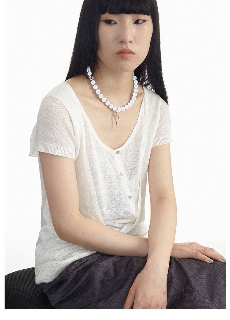 R-WHISTLEHUNTER 双层假两件折叠短袖